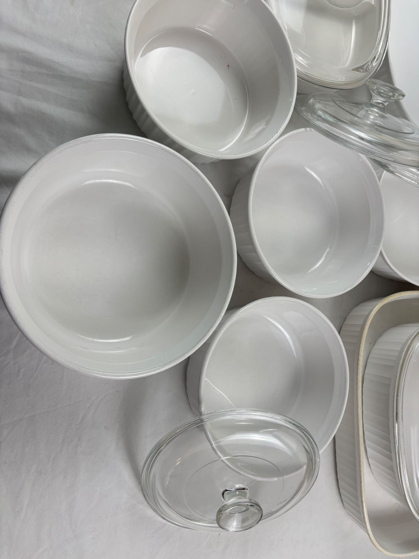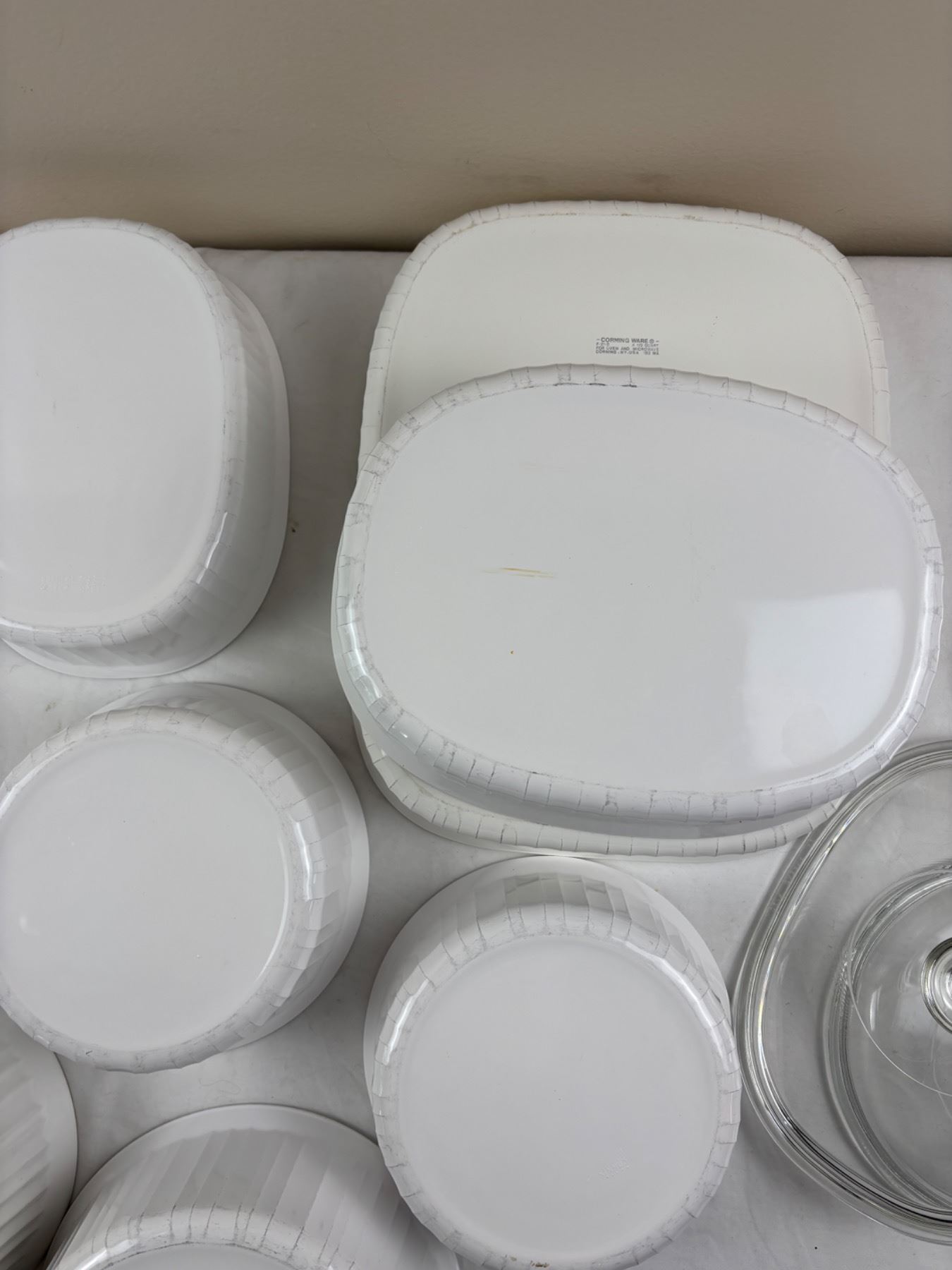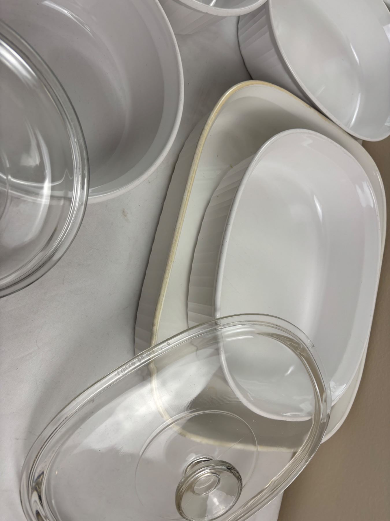 Largest dish is a 4 1/2qt, five dishes come with a lid