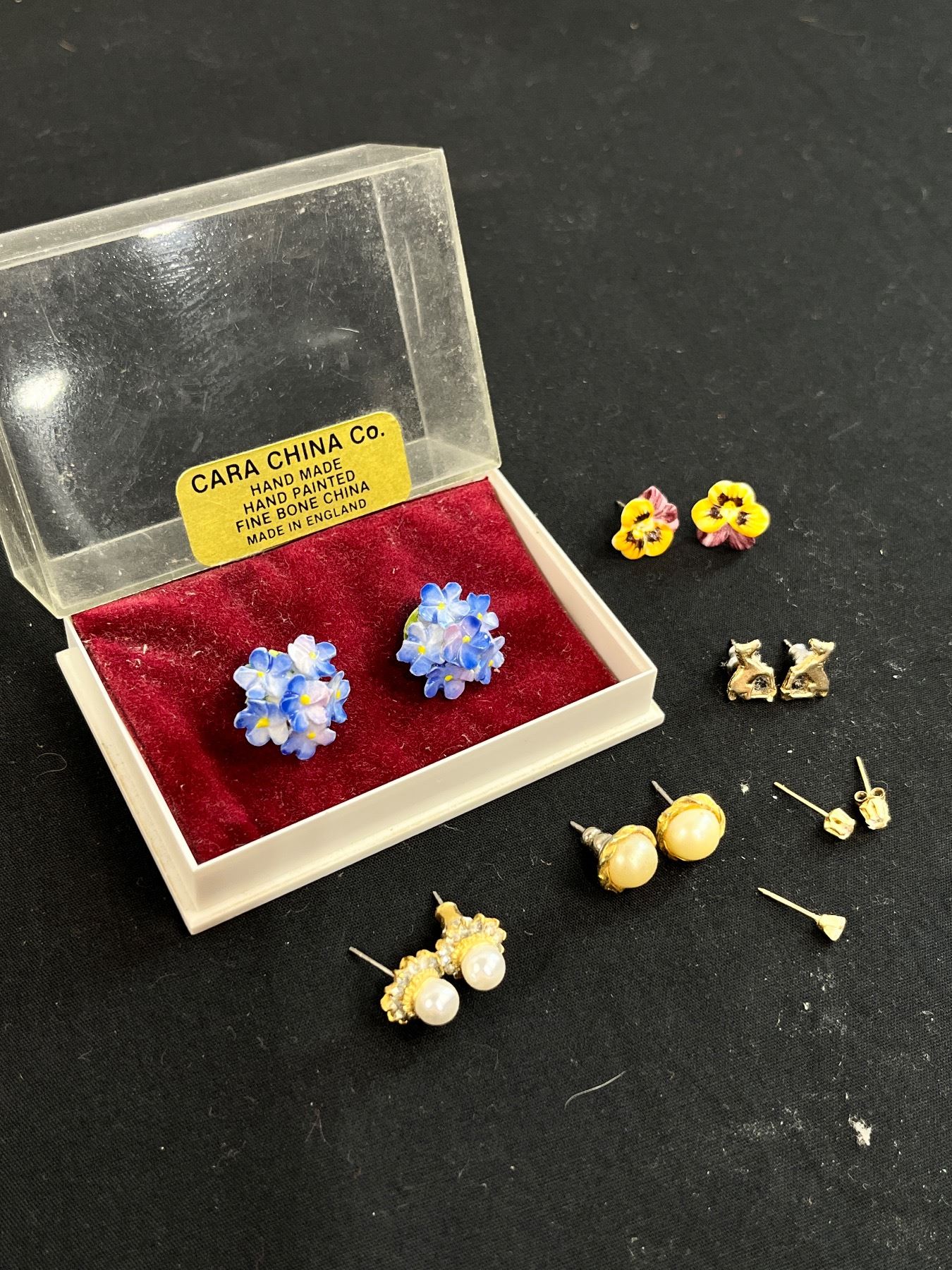 All are pairs except for one, Includes Cara China Hand Painted Earings