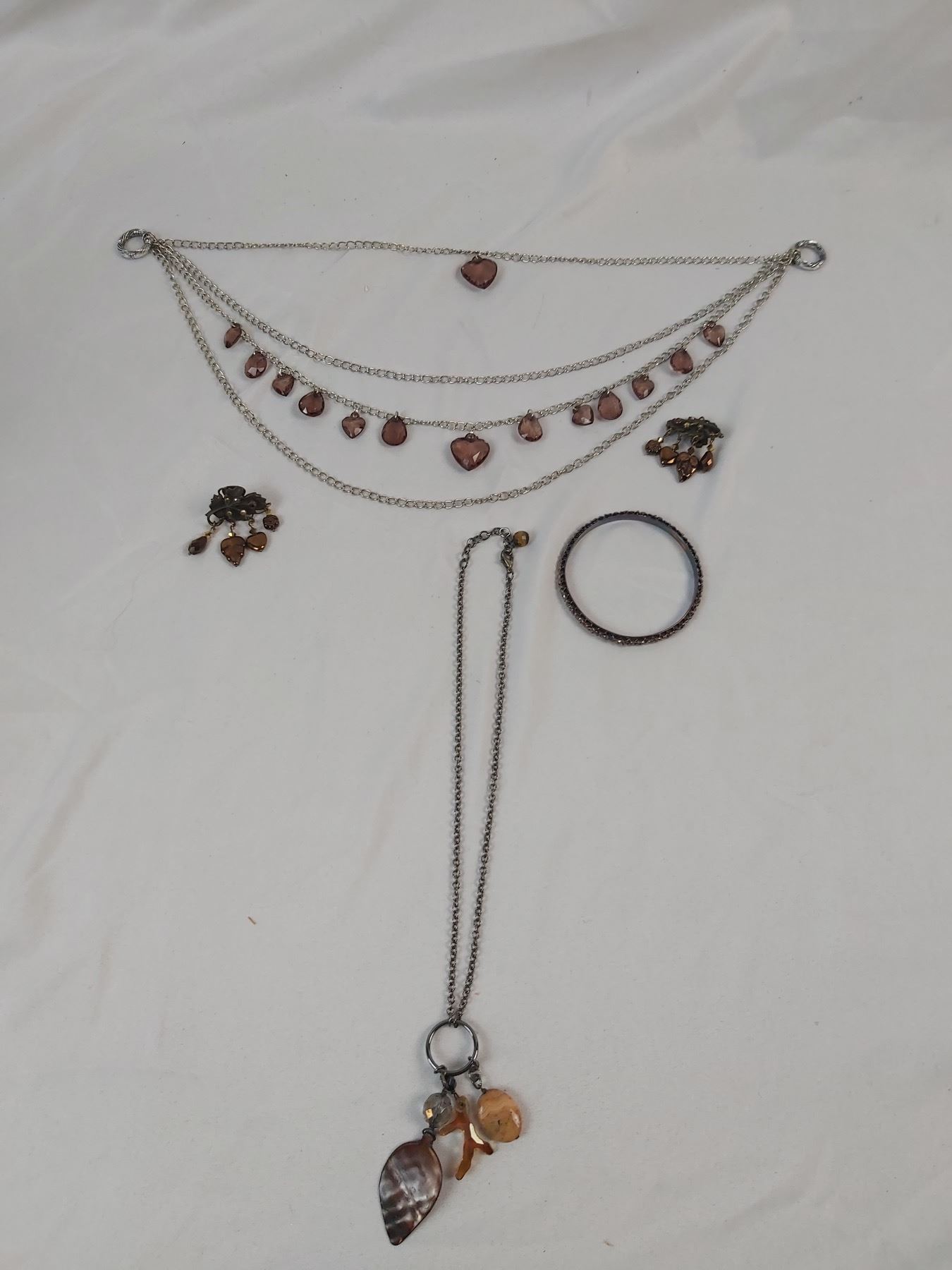 Includes 2 necklaces, one pair of earrings, and one bracelet