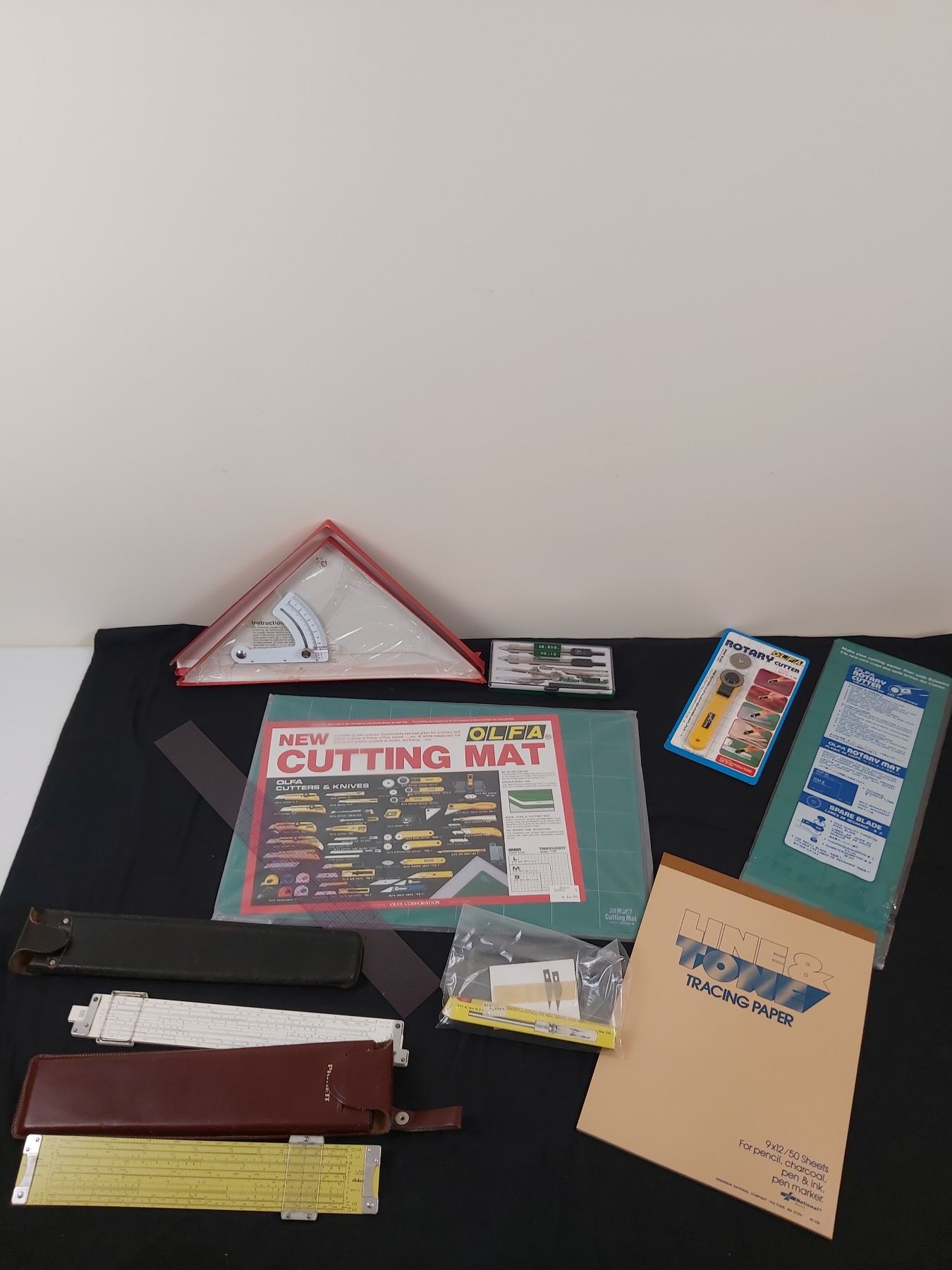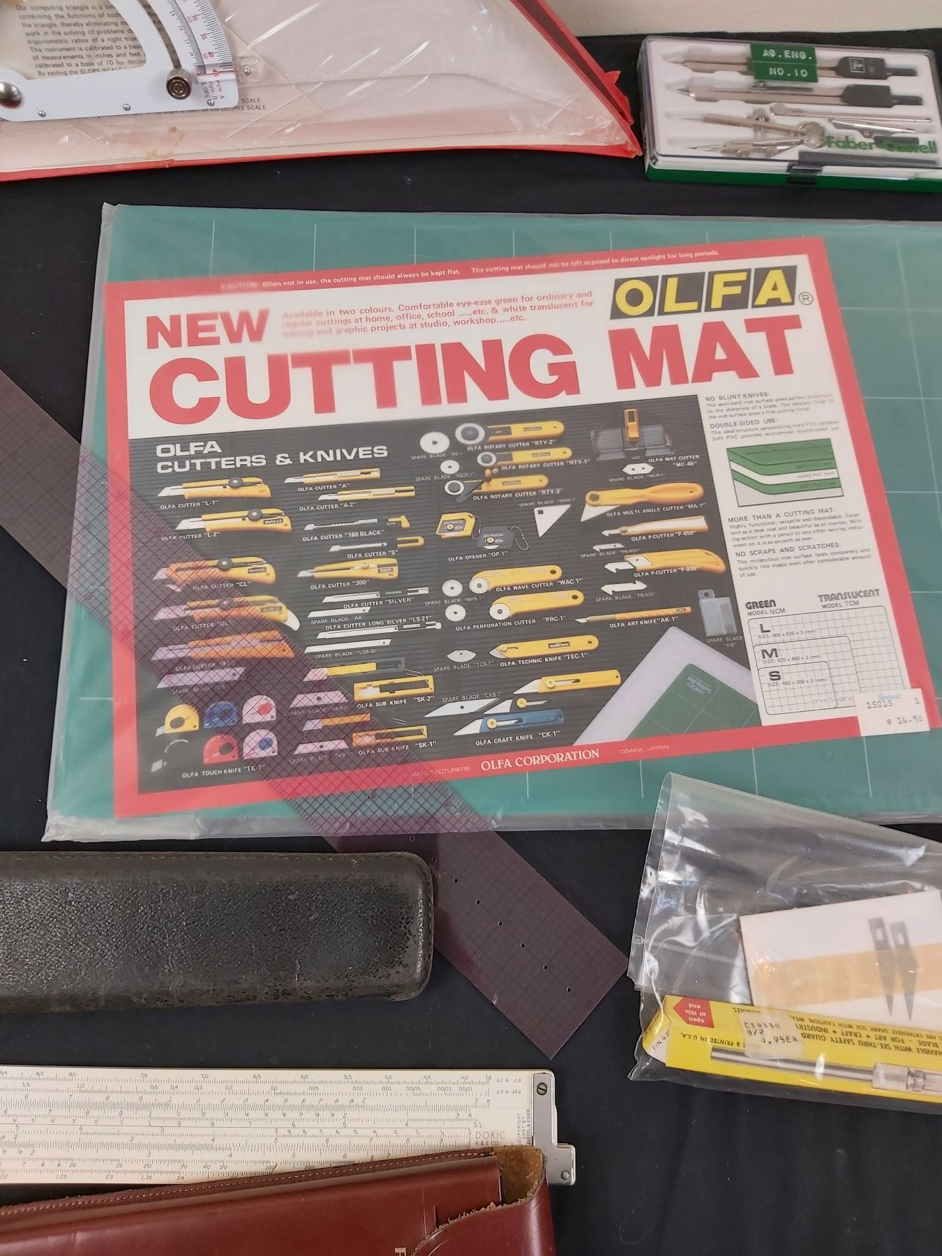 Includes, Rotary cutter, Slide Rules, Cutting mats, etc.