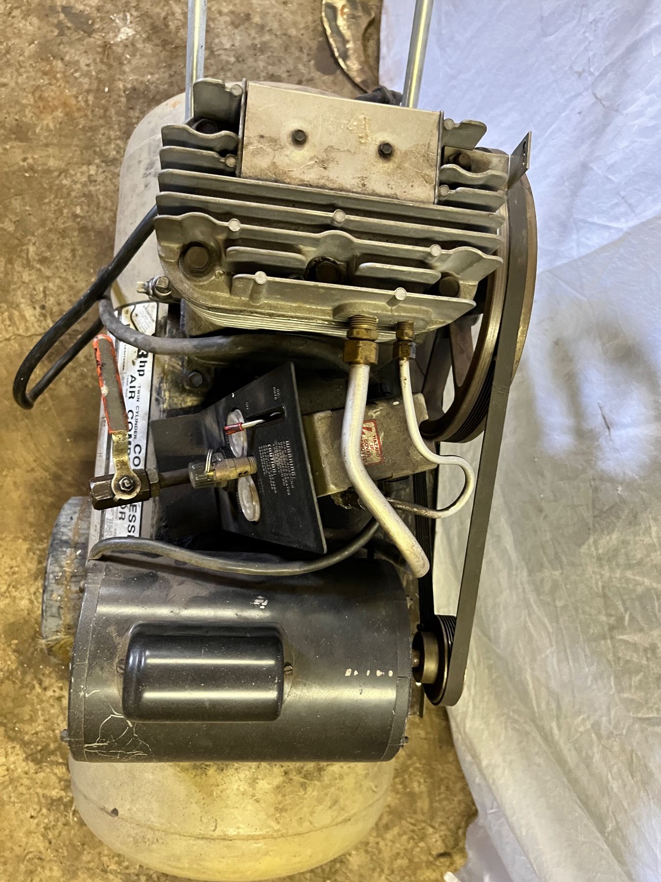 3Hp twin cylinder, Model No. 919. 721730, 25Gal, turns on, belt is loose