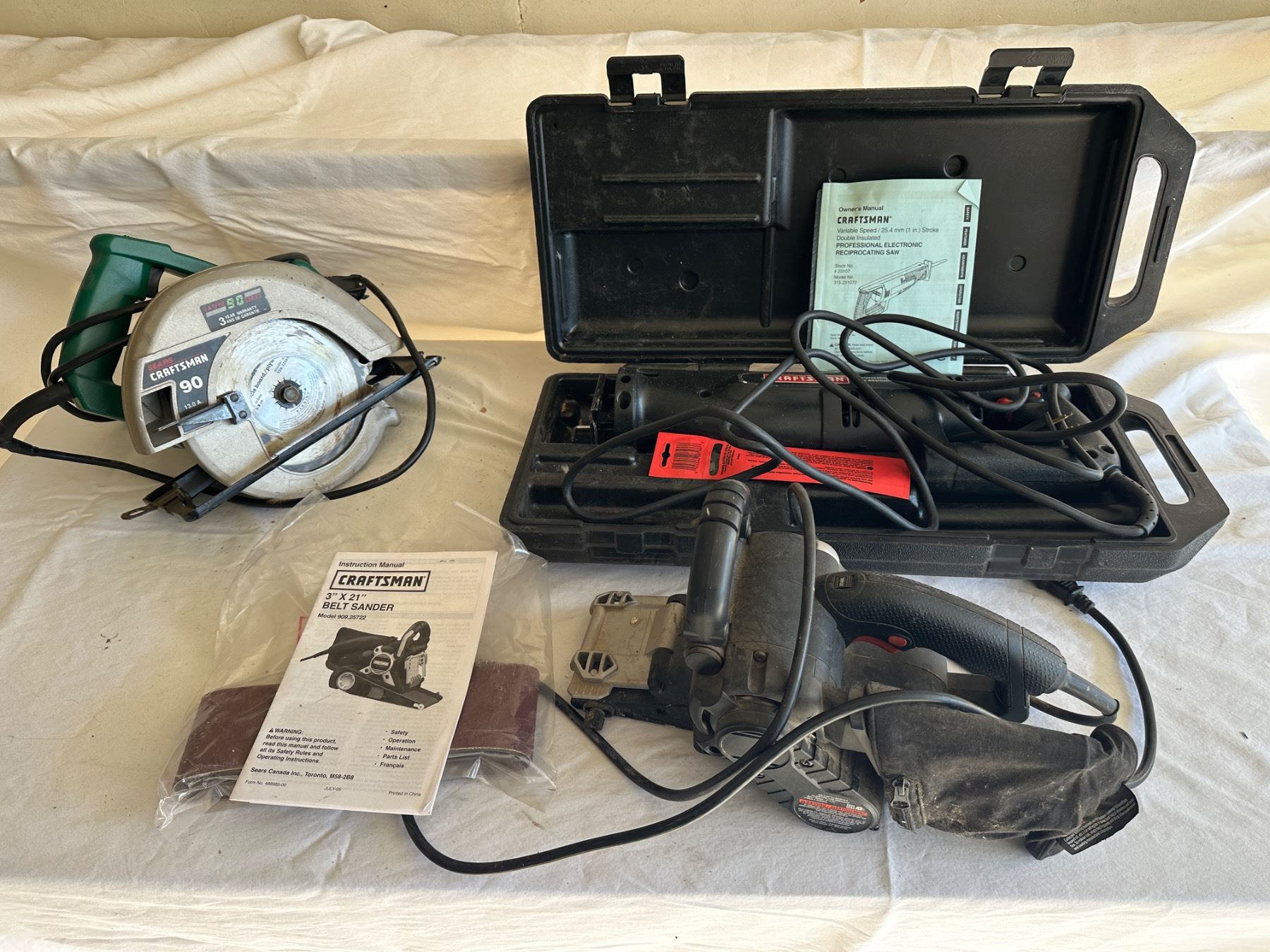 All work - includes 3" x 21" Belt Sander, Reciprocating Saw and Skill Saw