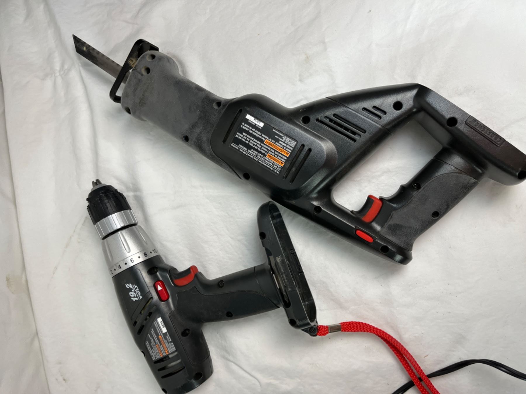 Includes 9.2 volt battery and charger. Fluorescent light, 5.5" trim saw, cordless drill and reciprocating saw. All work.