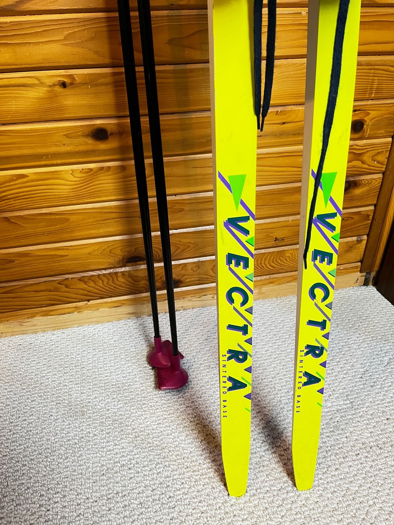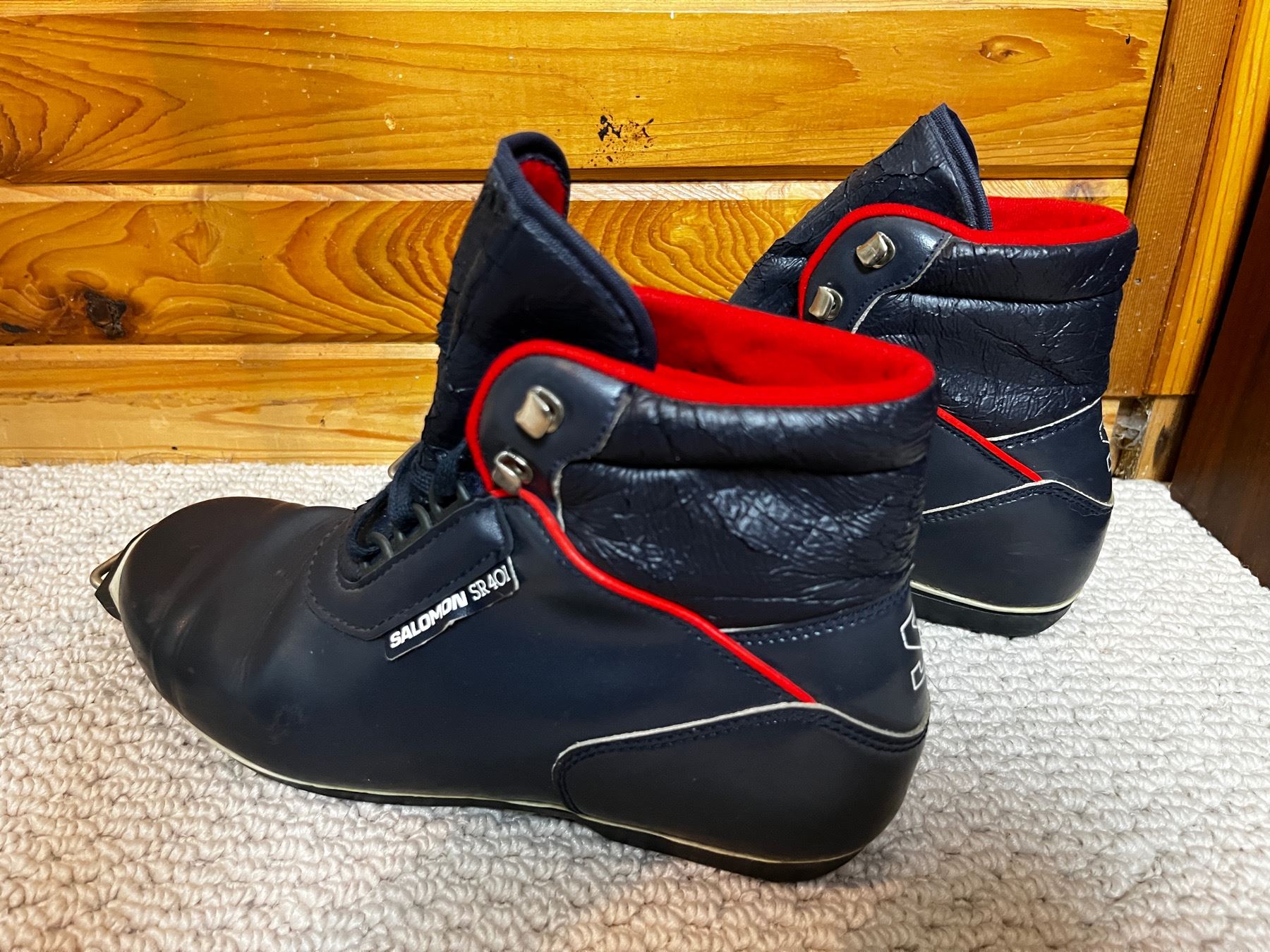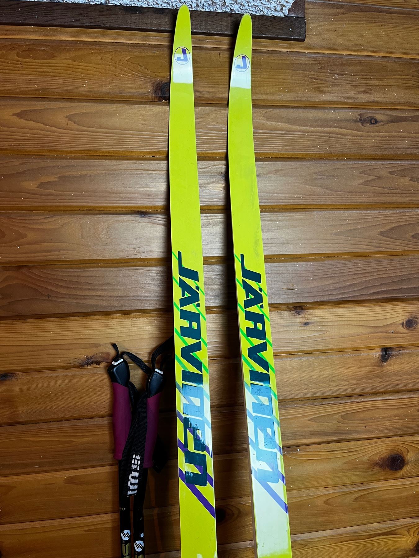 Skis with Saloman bindings 80cm long - Saloman boots size 43 - Swix Classic Poles 58" long