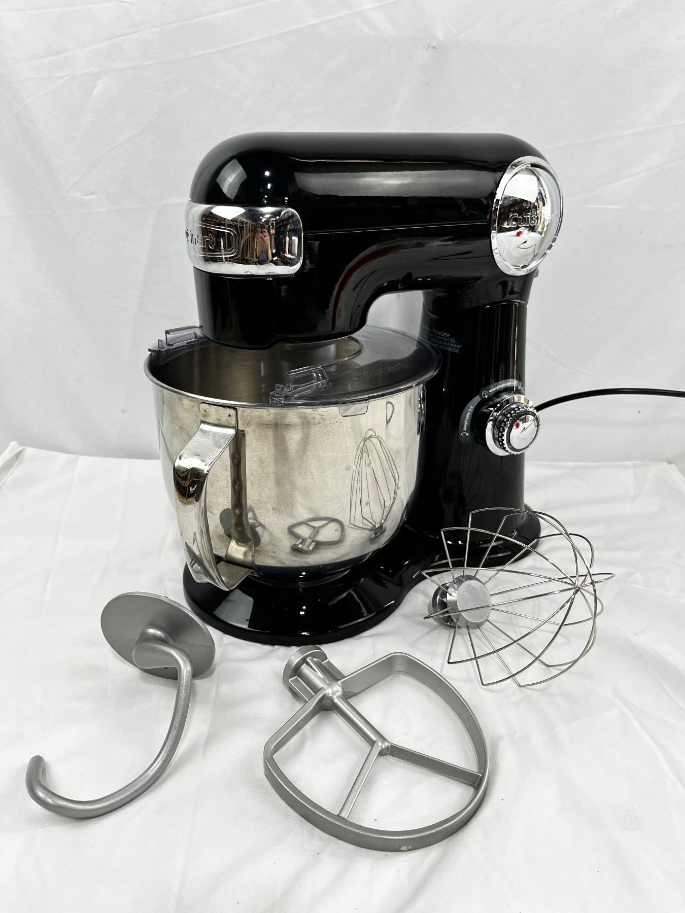 In good used condition, includes paddle, whisk and dough hook, works