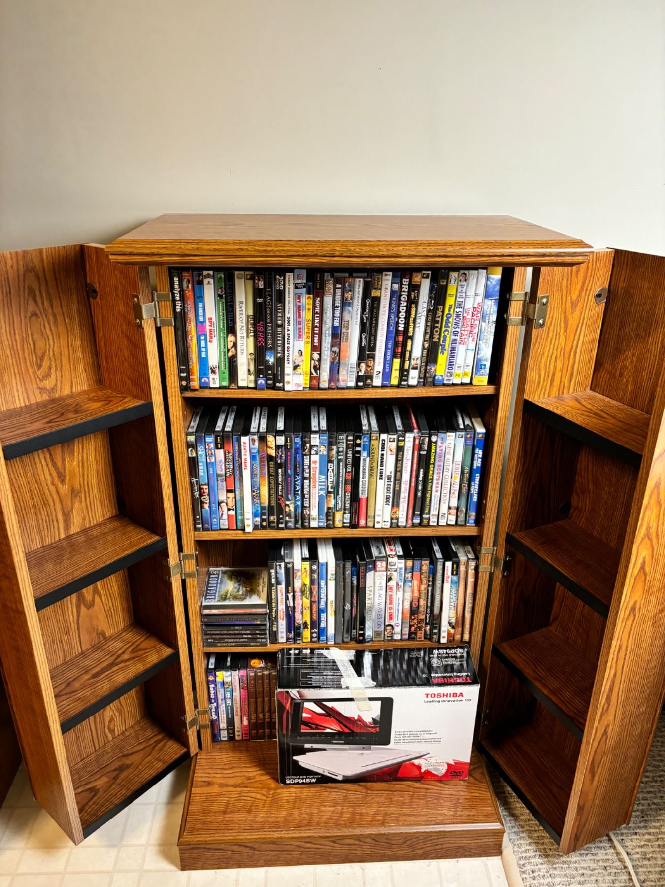 Includes, Toshiba Portable DVD Player (works), various DVD's and Blue Ray