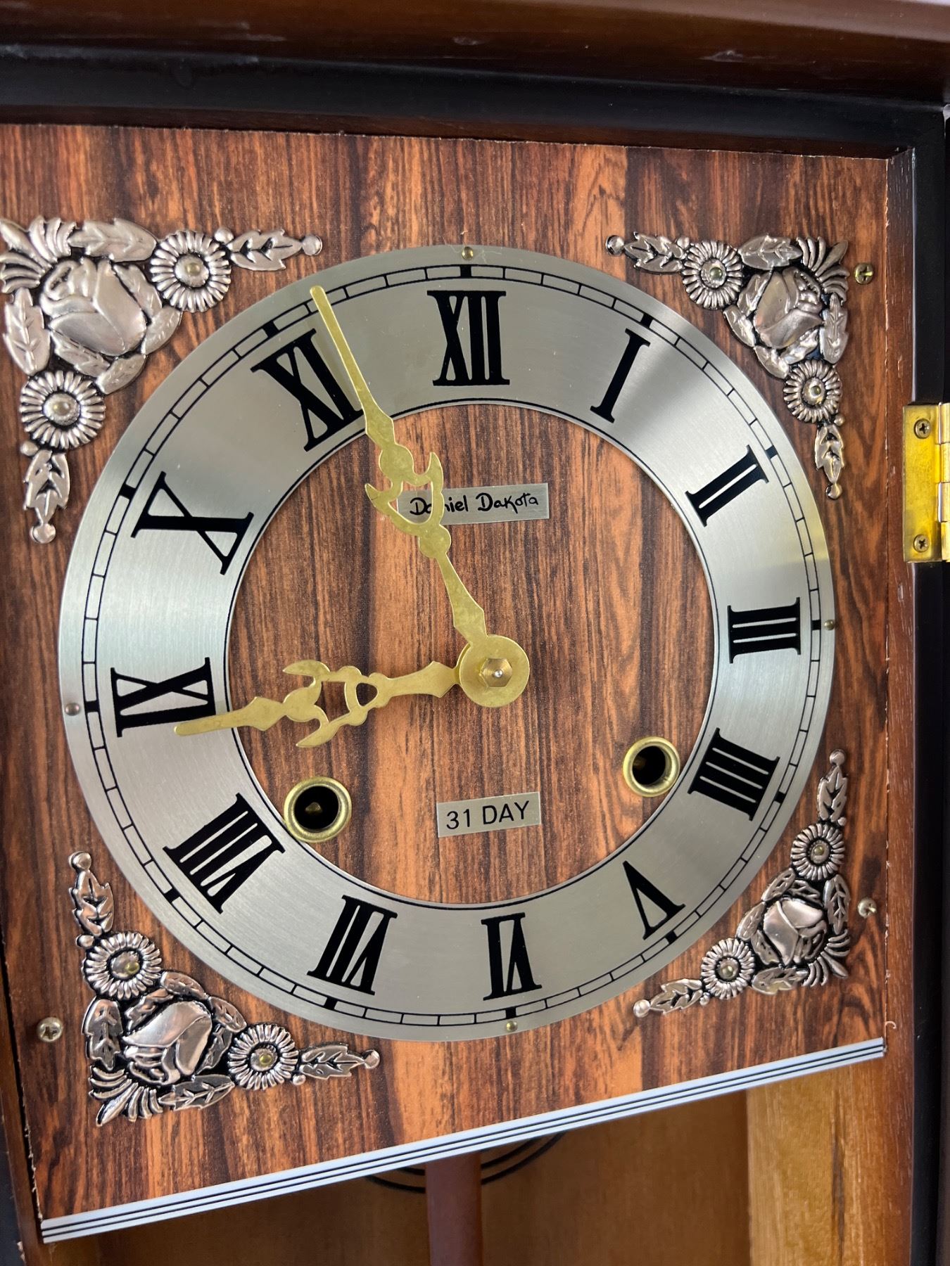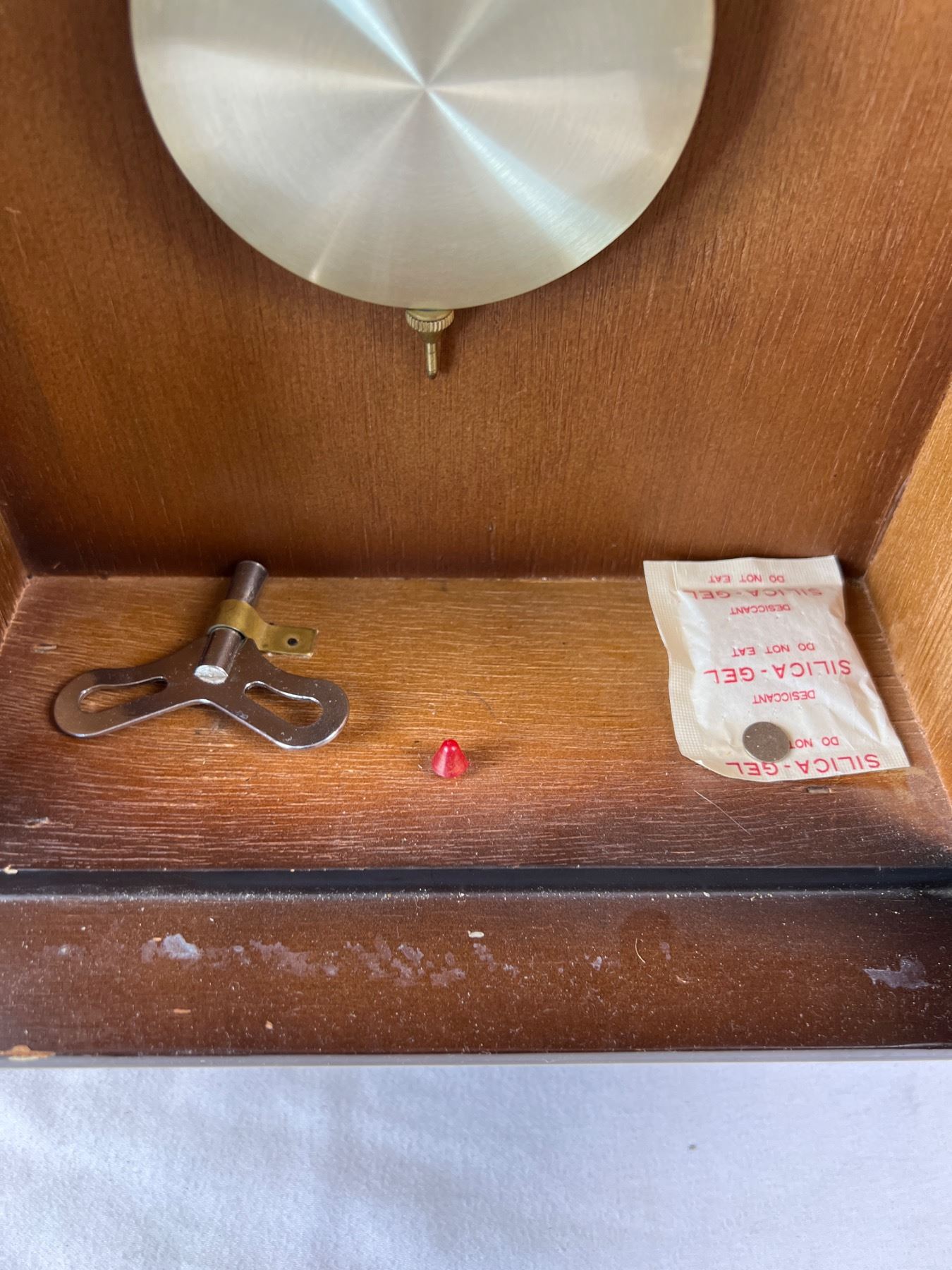 29"H x 11"L x 5"W, includes the winding key, some scuffing