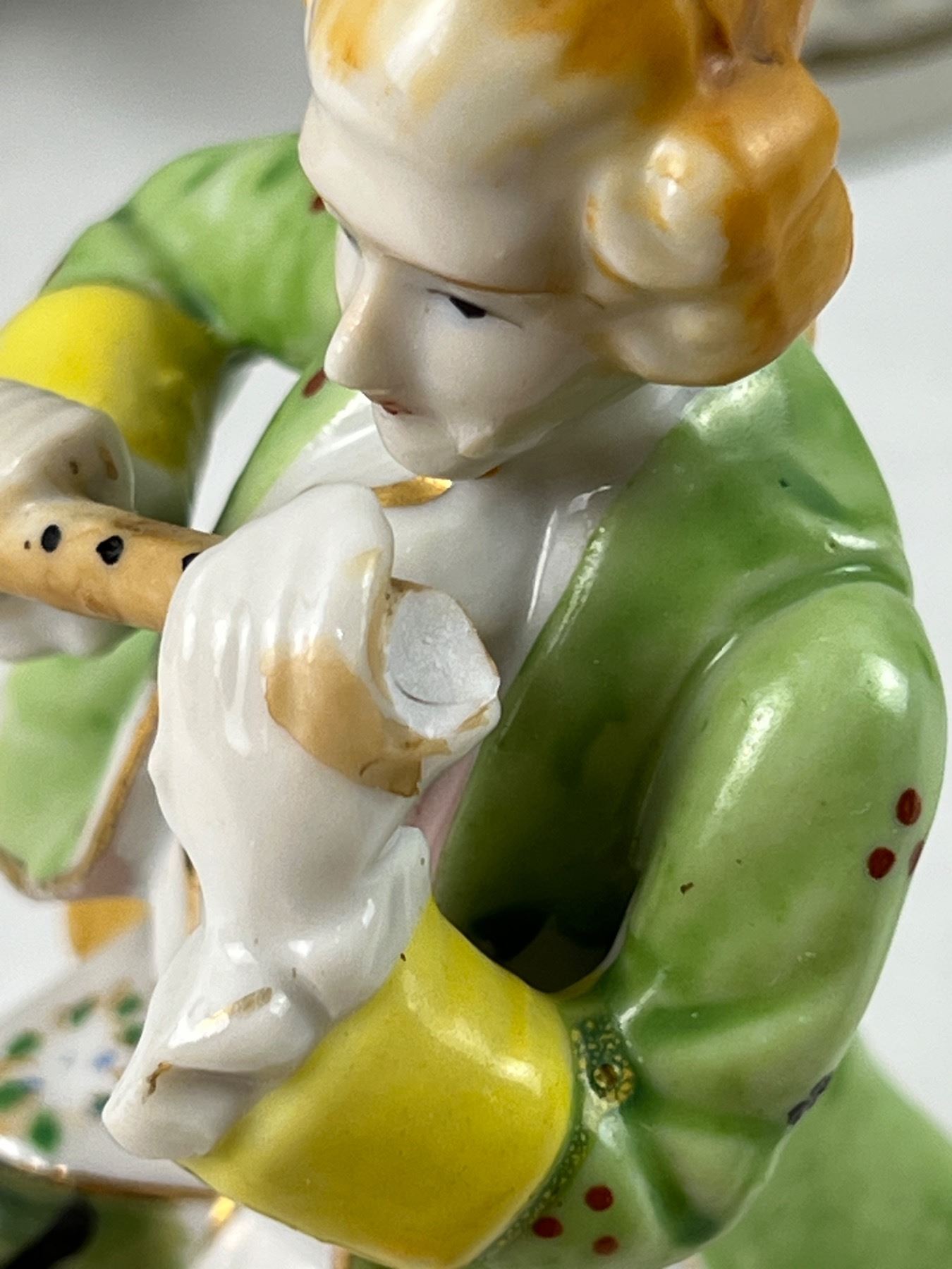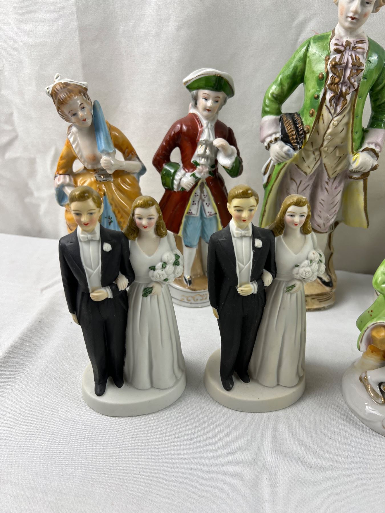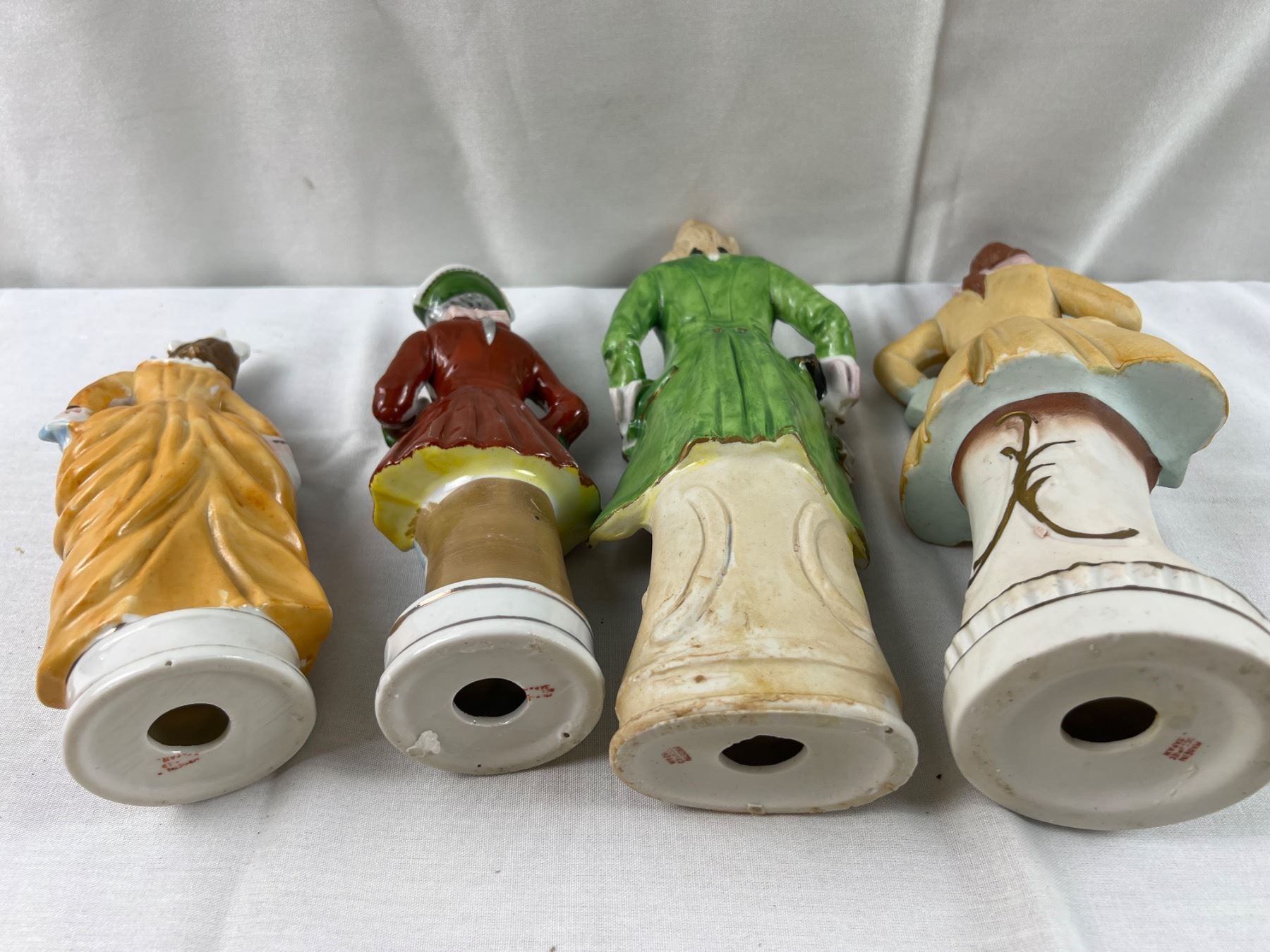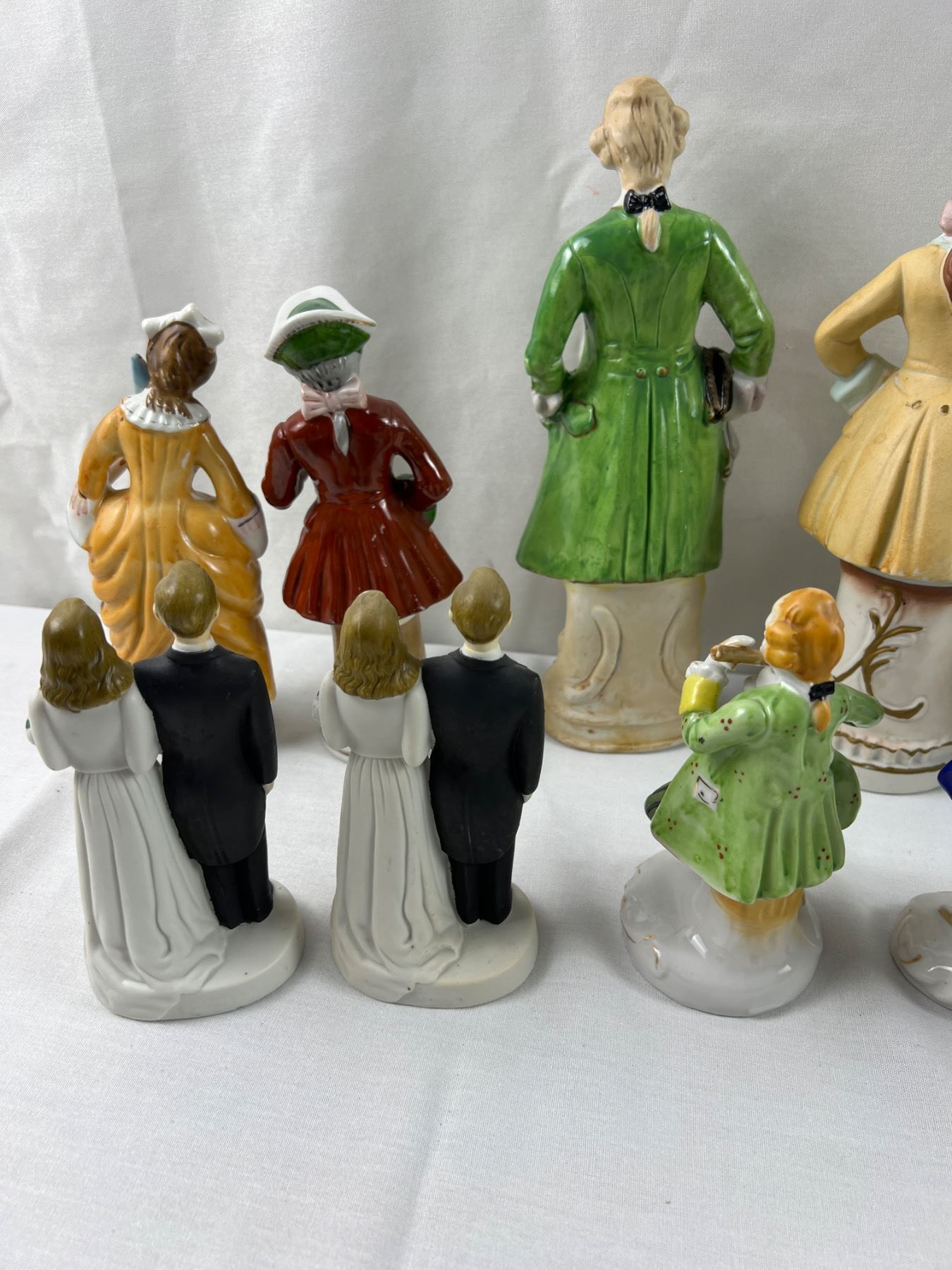 The flute on one of the figures is chipped off, The tallest piece is 10.5"H, some pieces made in Occupied Japan