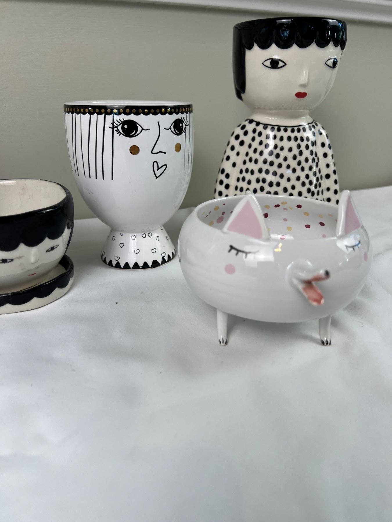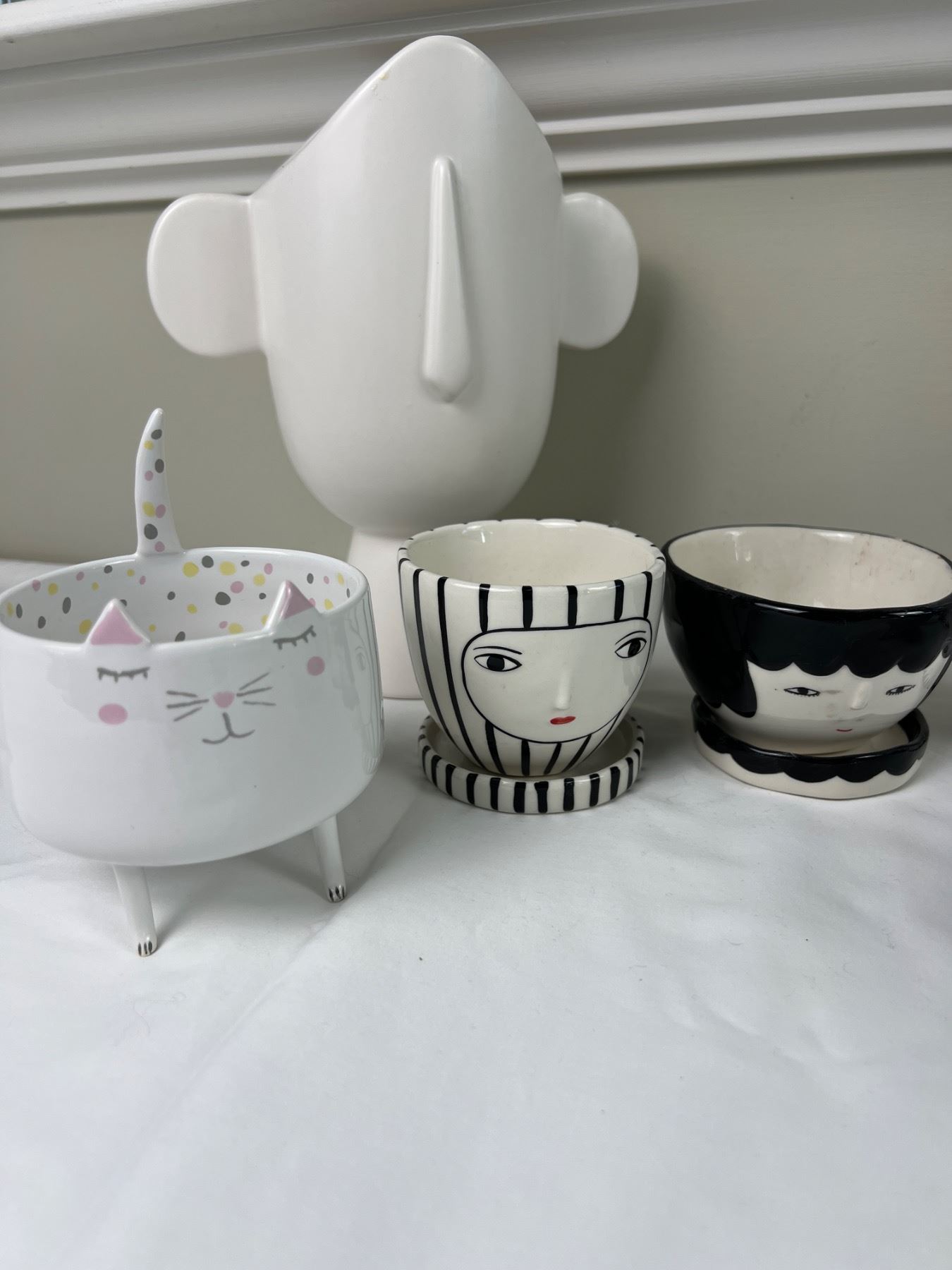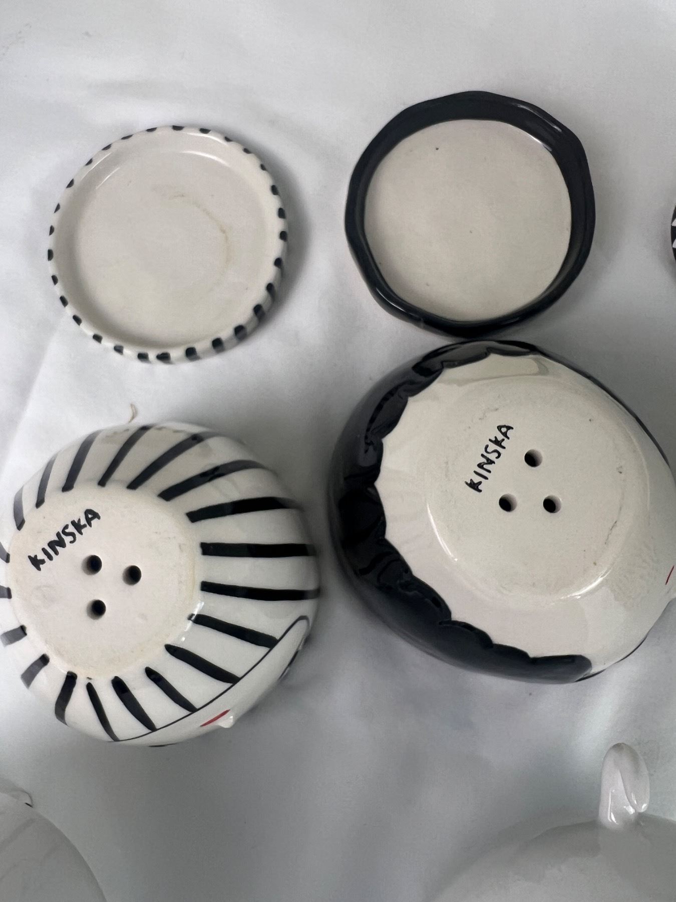 Includes three pots signed by "Kinska", Largest pot is 10"H