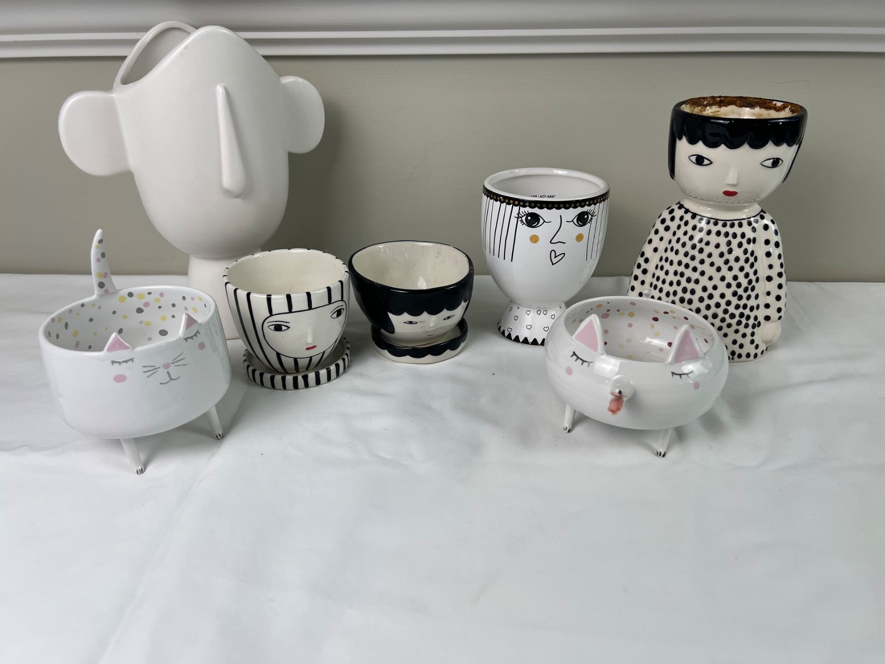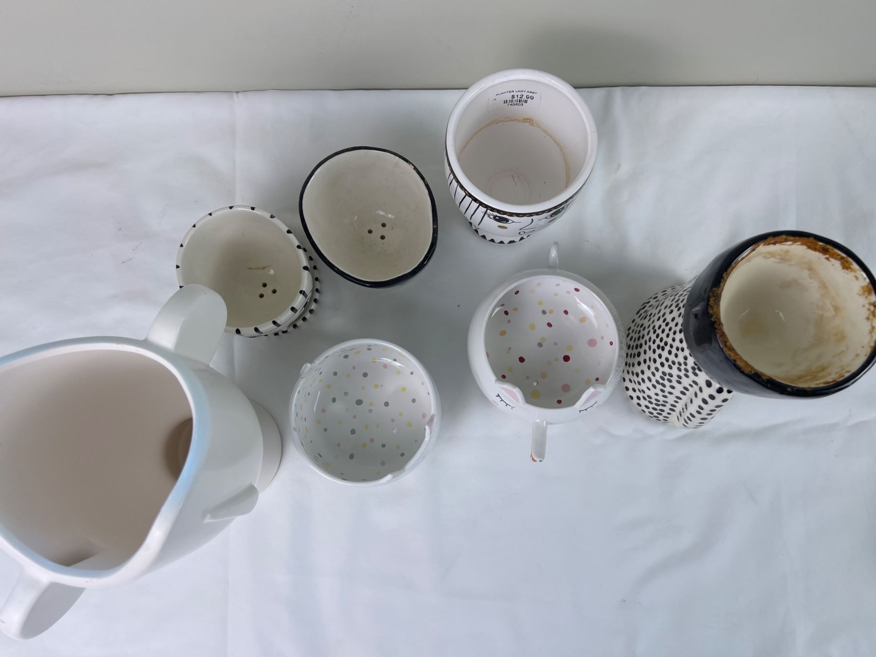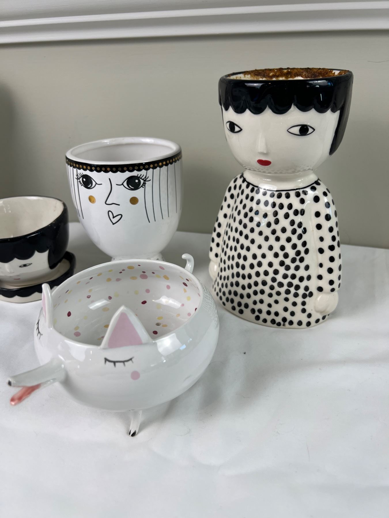 Includes three pots signed by "Kinska", Largest pot is 10"H