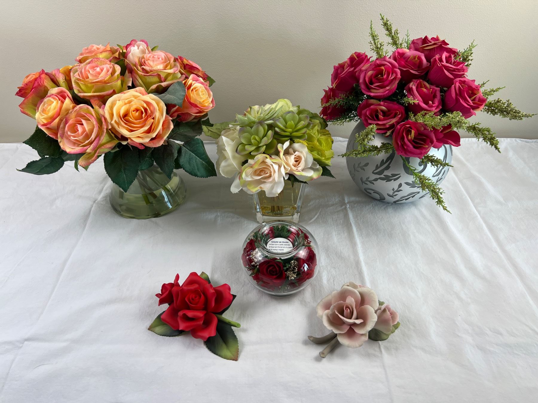 Includes Andrea by Sadok and Napoleon Porcelain flowers, faux floral arrangements with vases, and more,