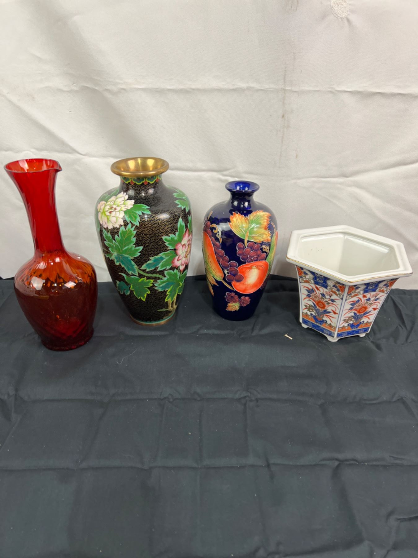 tallest 9.75" red crown art ceramics, blue fruit Natures Palette