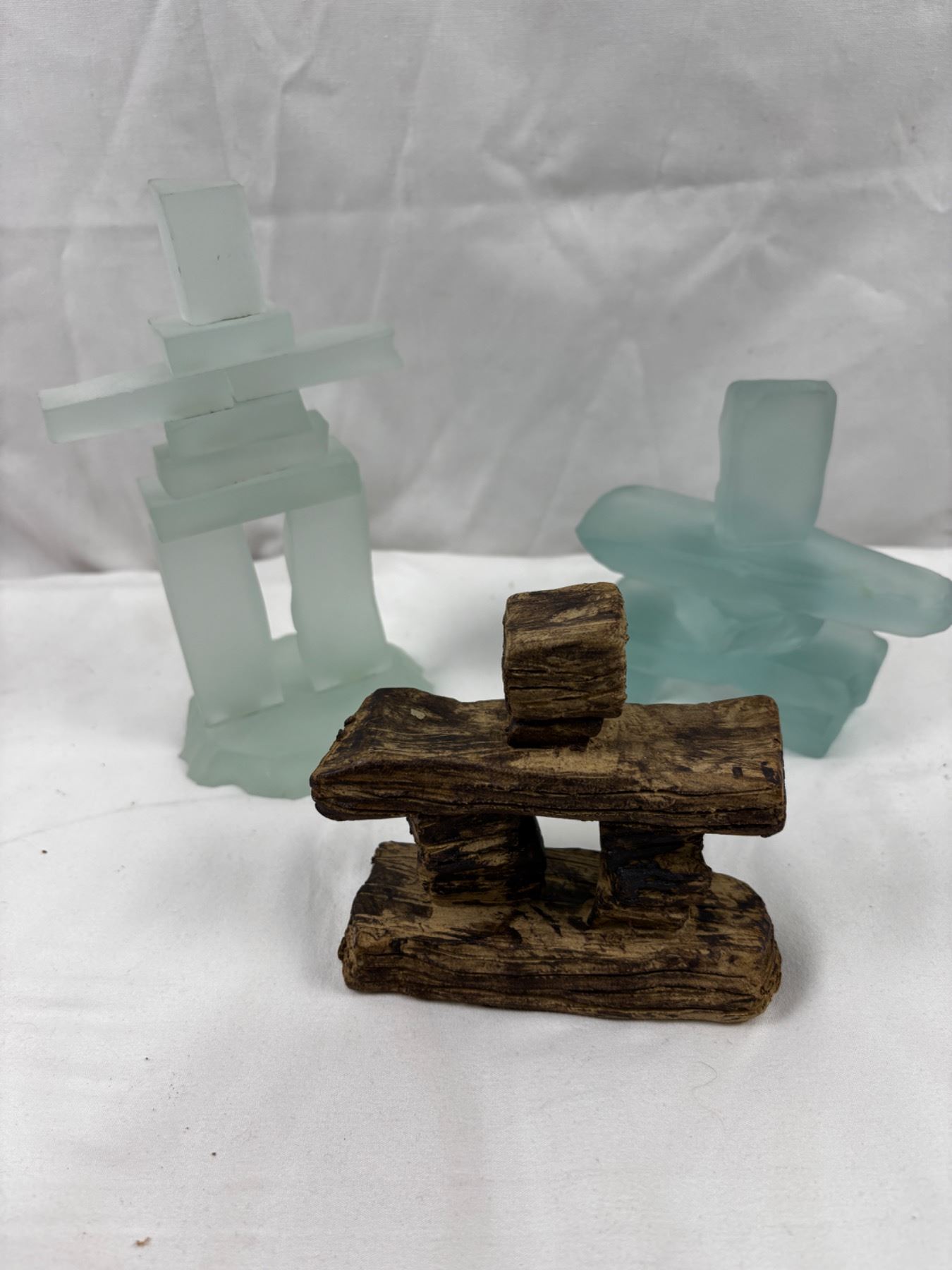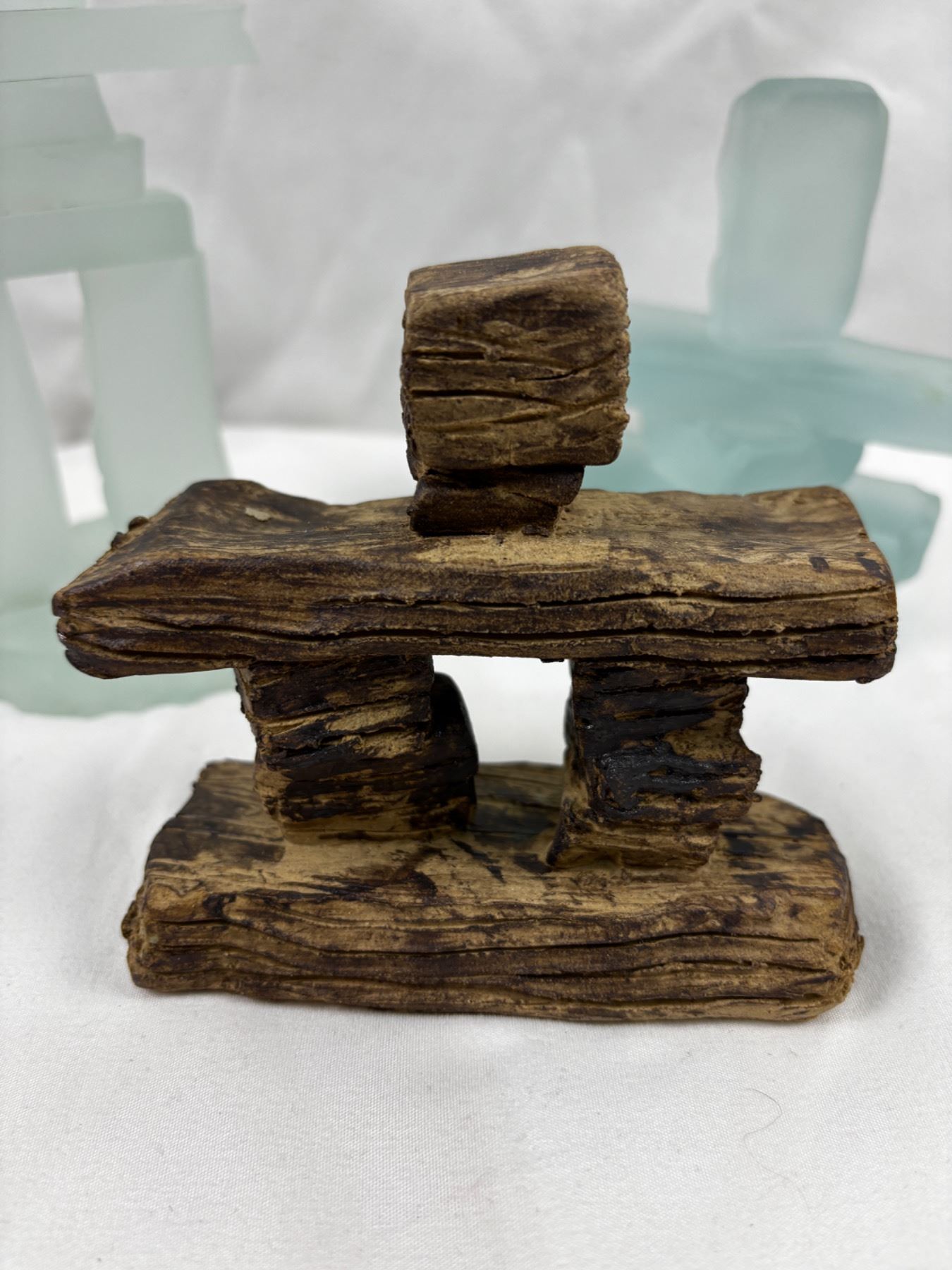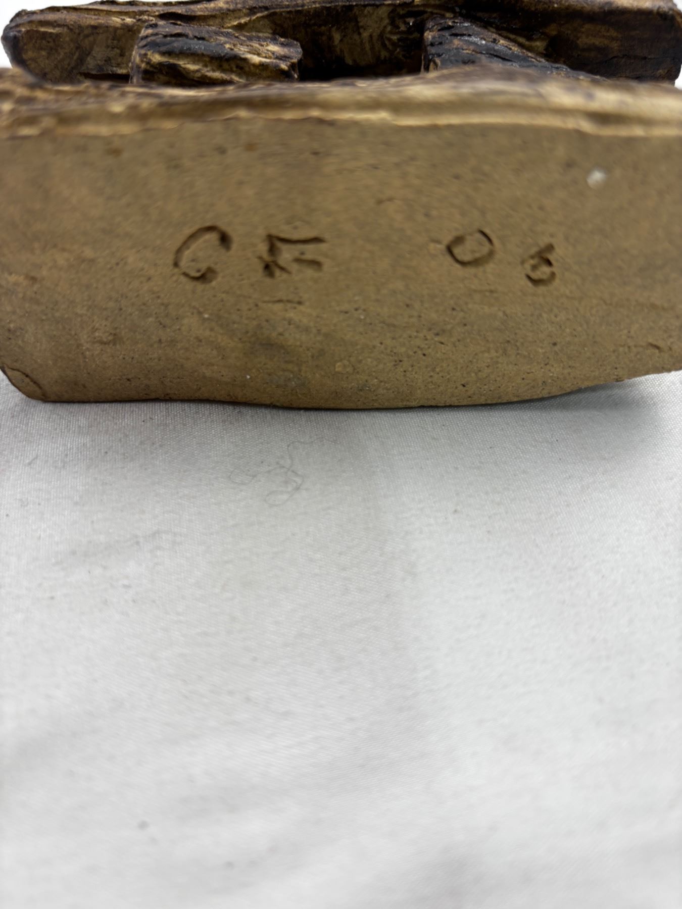 Tallest piece is 7.5"H, the clay sculpture has a stamp on the bottom