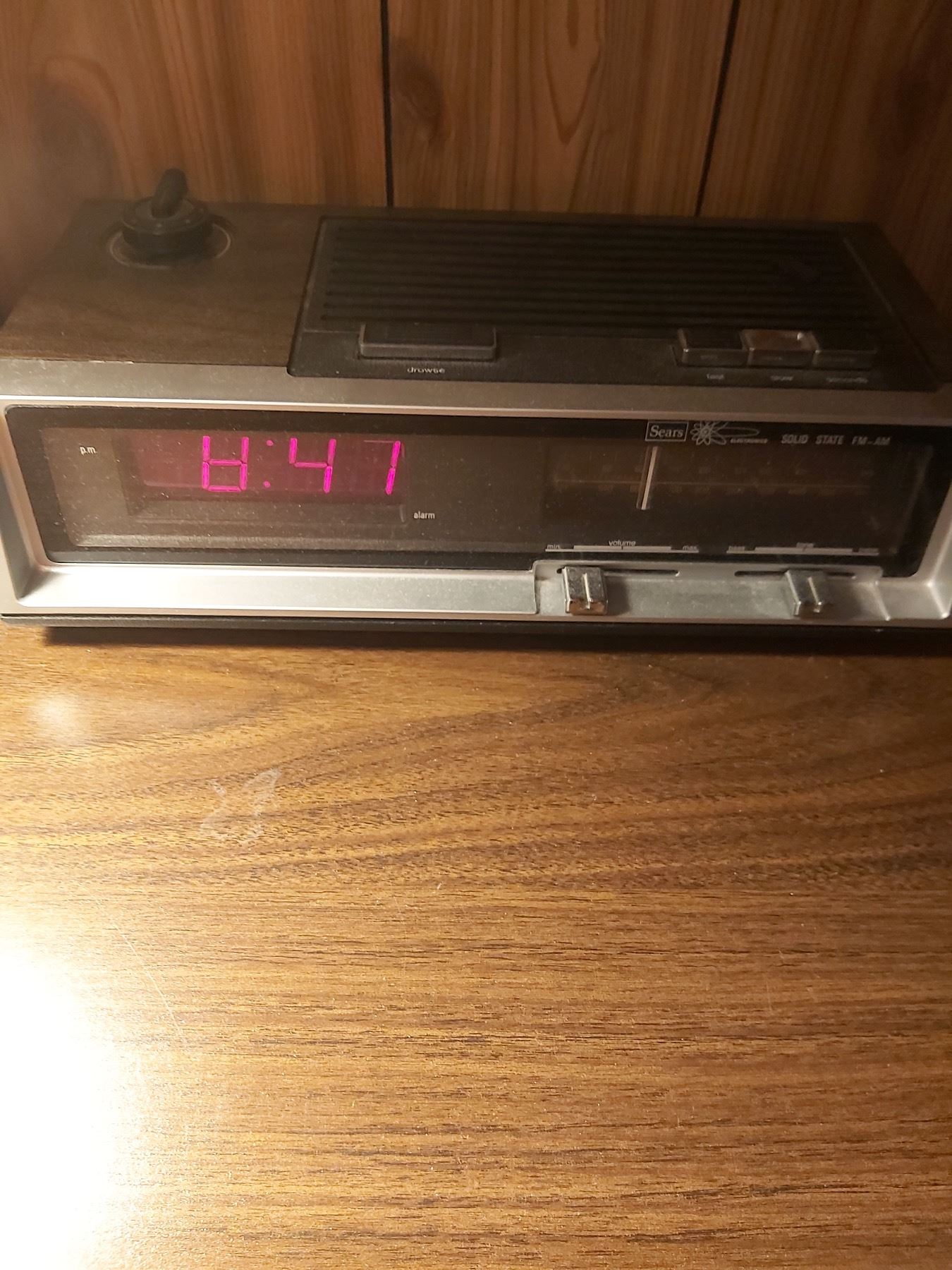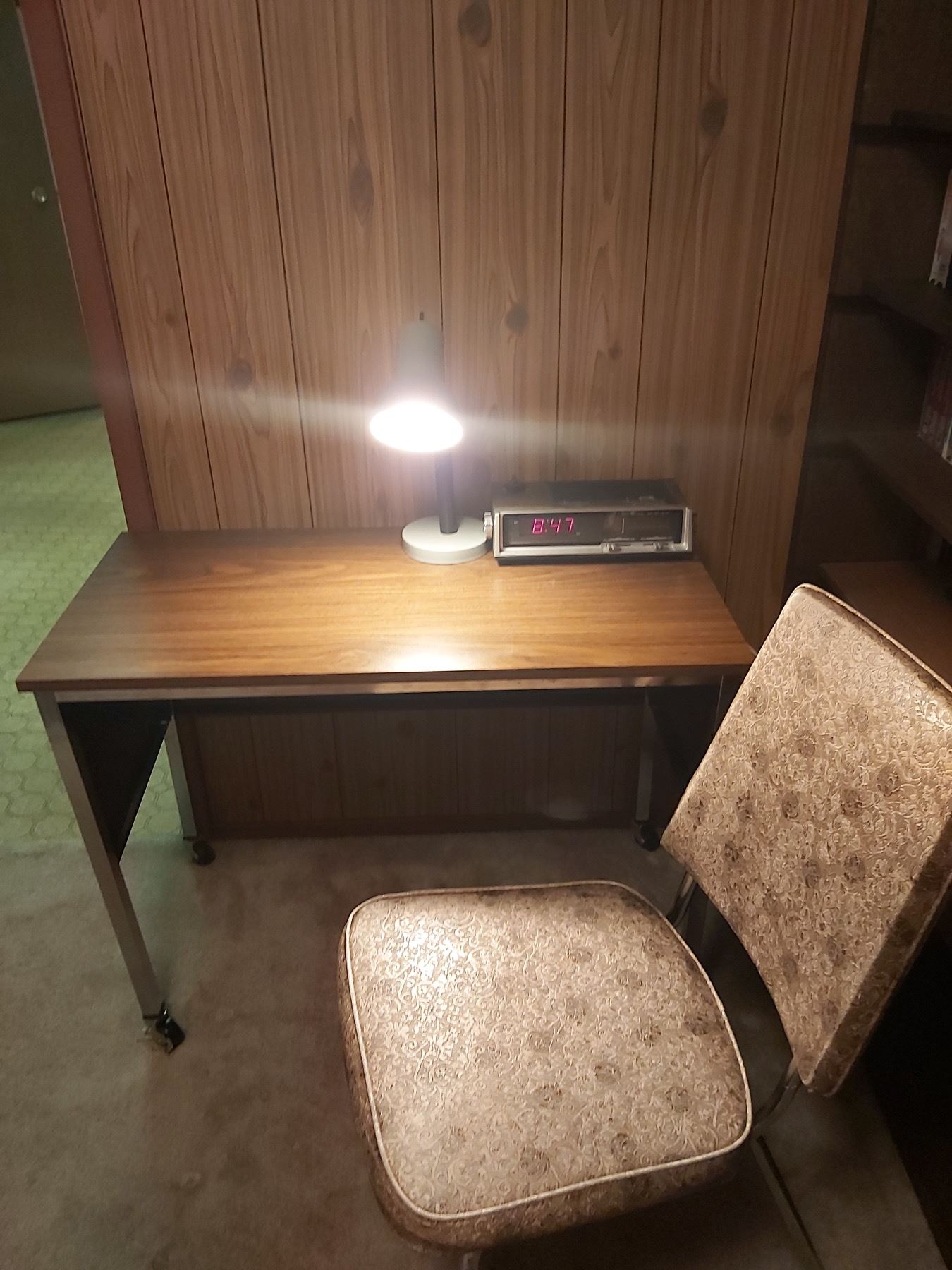 36"L x 18"W x 26"H, desk is on wheels, Lamp and Sears Solid State FM/AM radio work