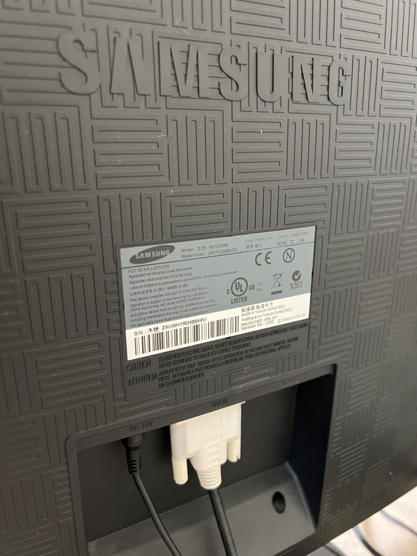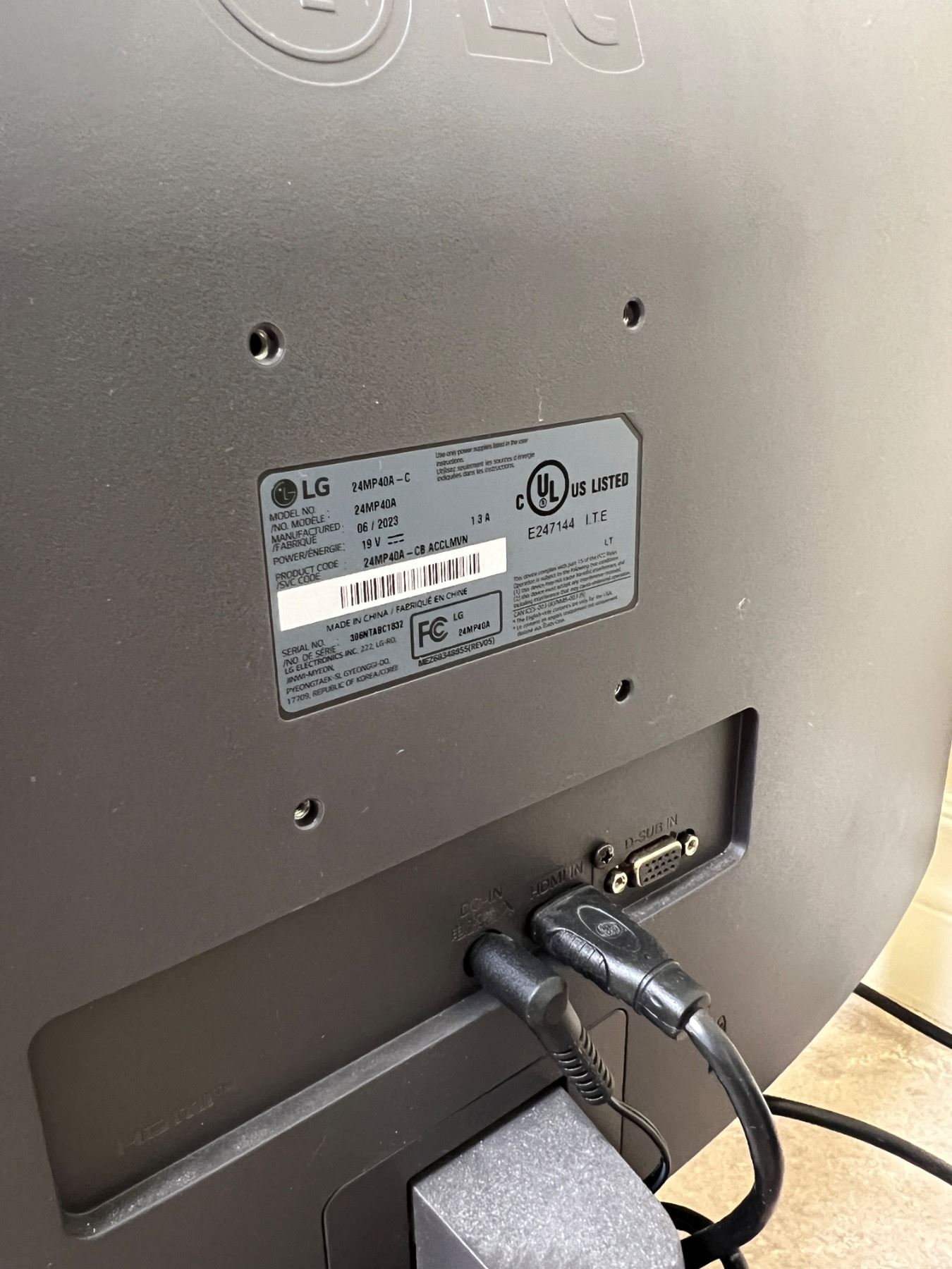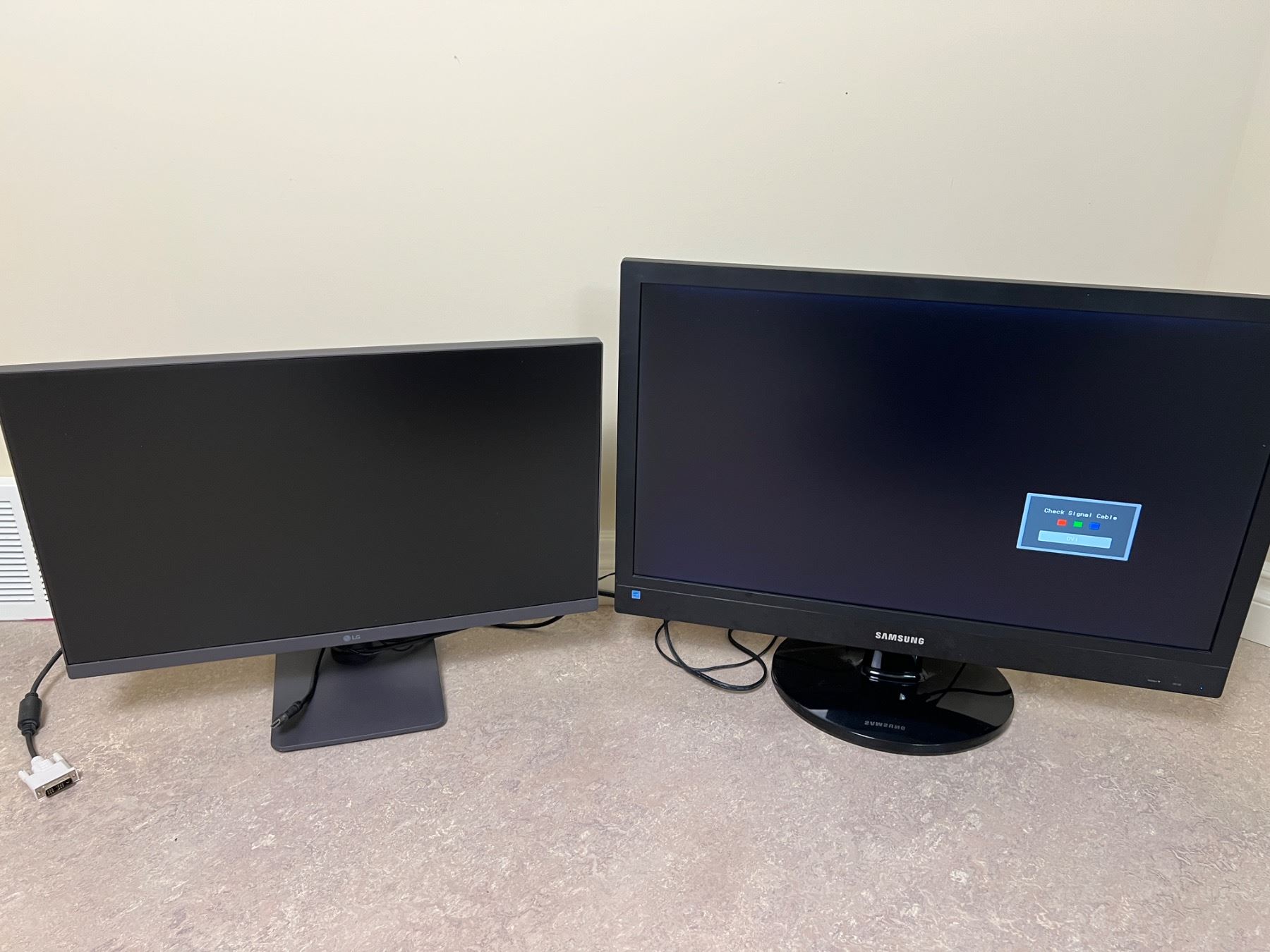 Both power on, includes a LG 24MP40A 24"monitor and a Samsung S27C230B 27" monitor
