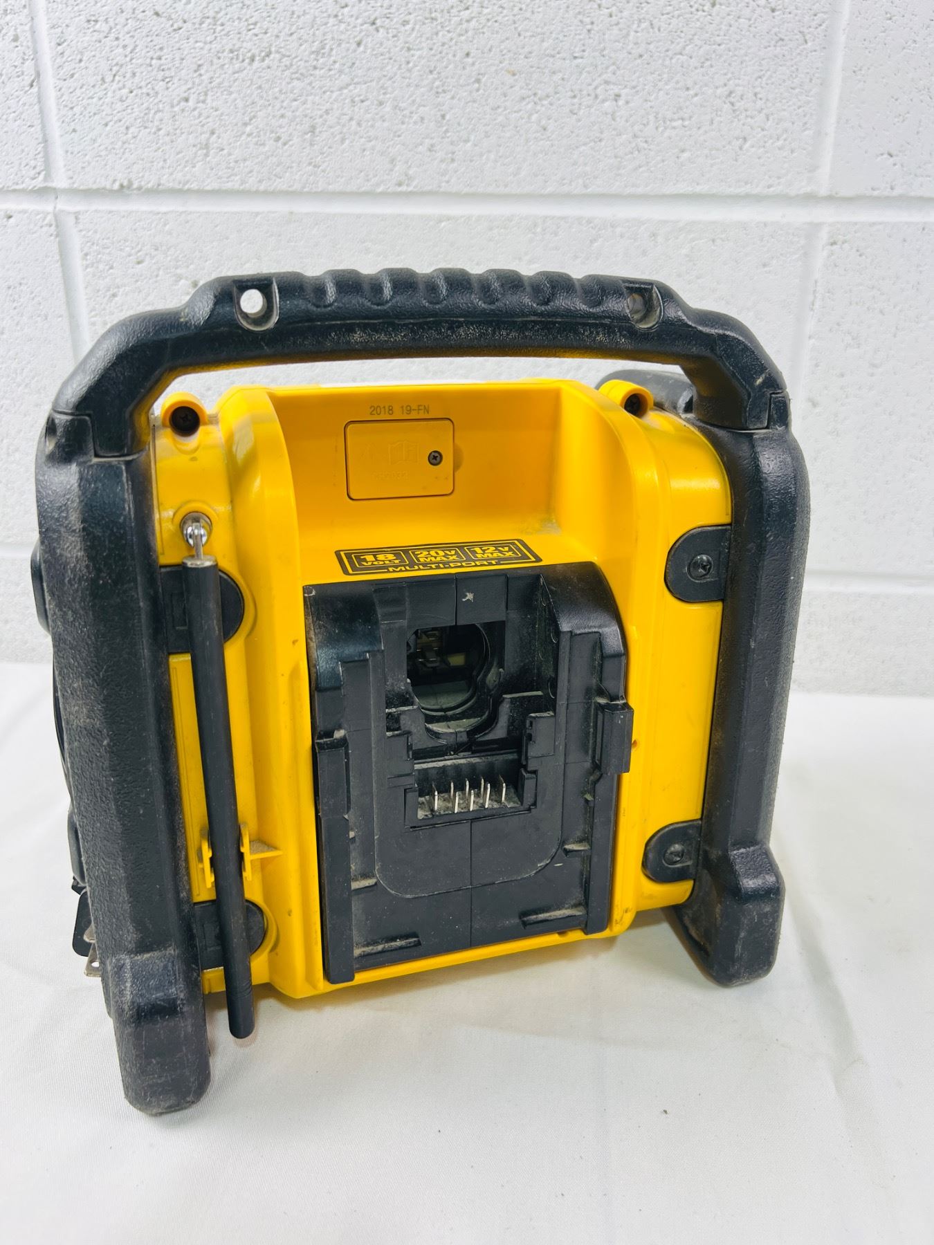 Model No. DCR018, does not include battery, turns on and plays - has some surface wear