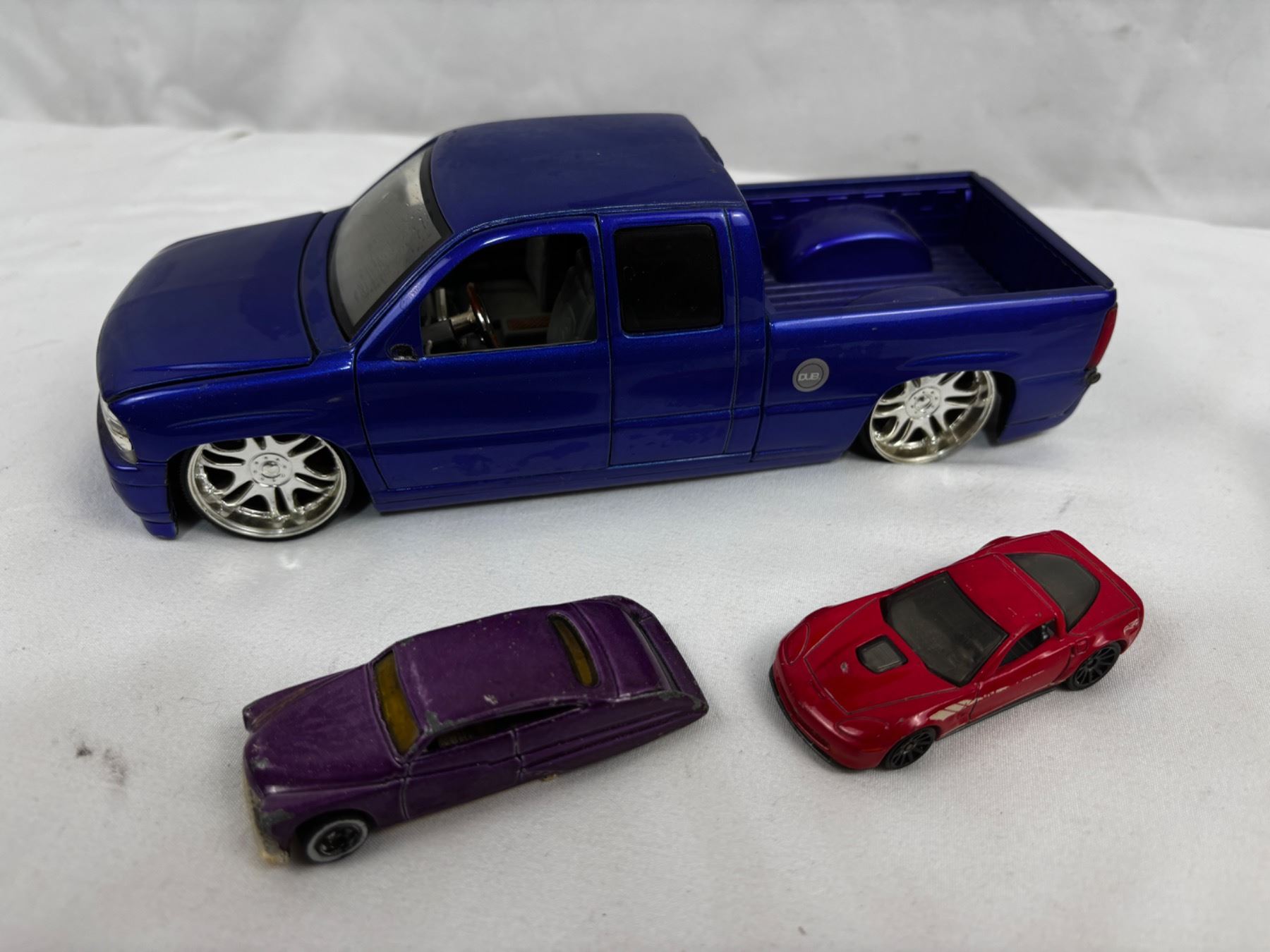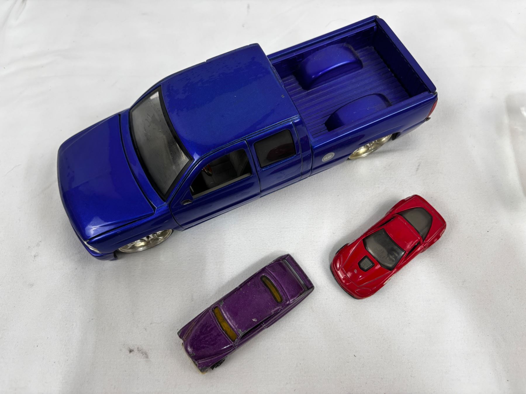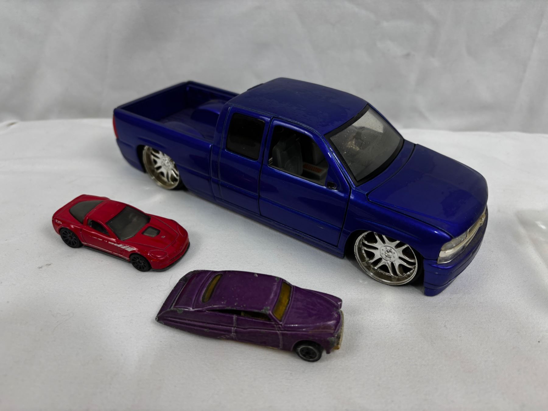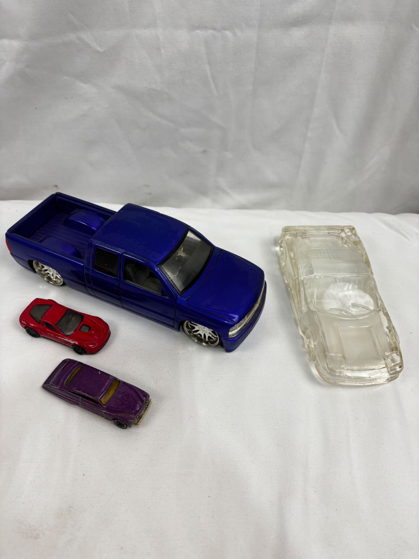 Includes, Glass car, Jada Toys 1/24 Scale 2002 Chevrolet Silverado, Hot Wheels and Mattel