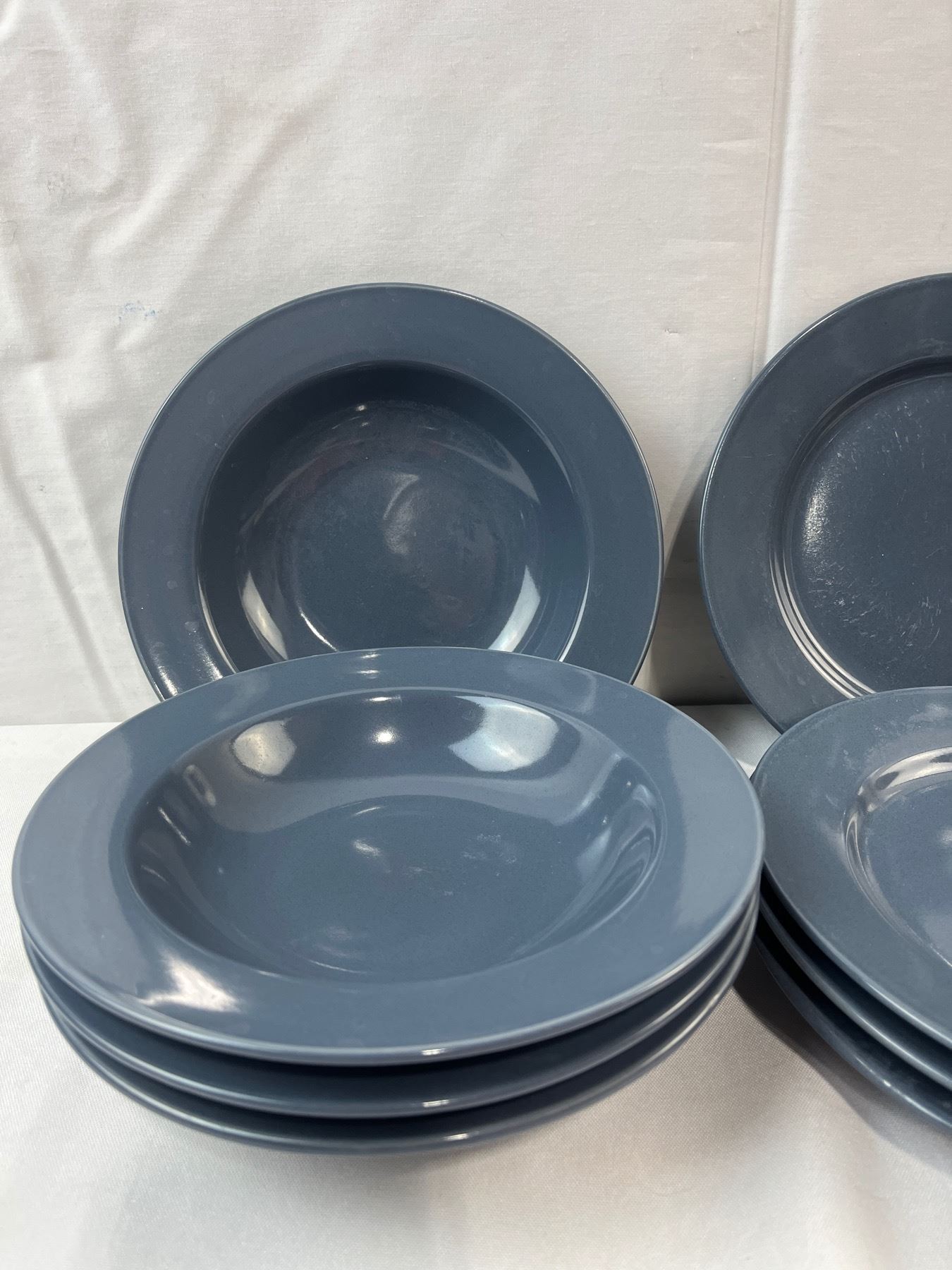 Set of 12 ceramic dishes total, in used condition with minimal ware