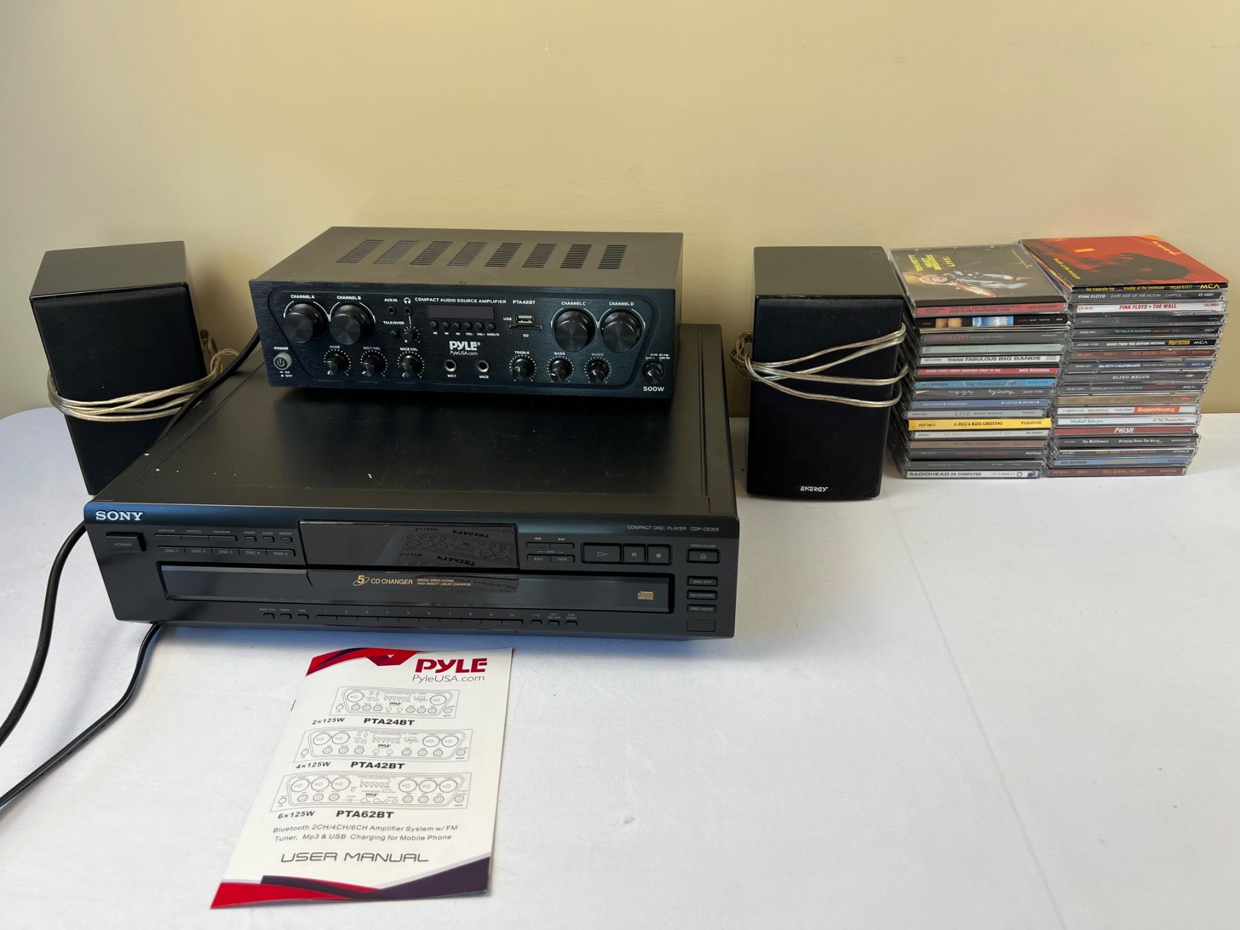Includes a Sony Compact Disc-Player, Pyle Compact Audio Source Amplifier, Assortment of CD's and more