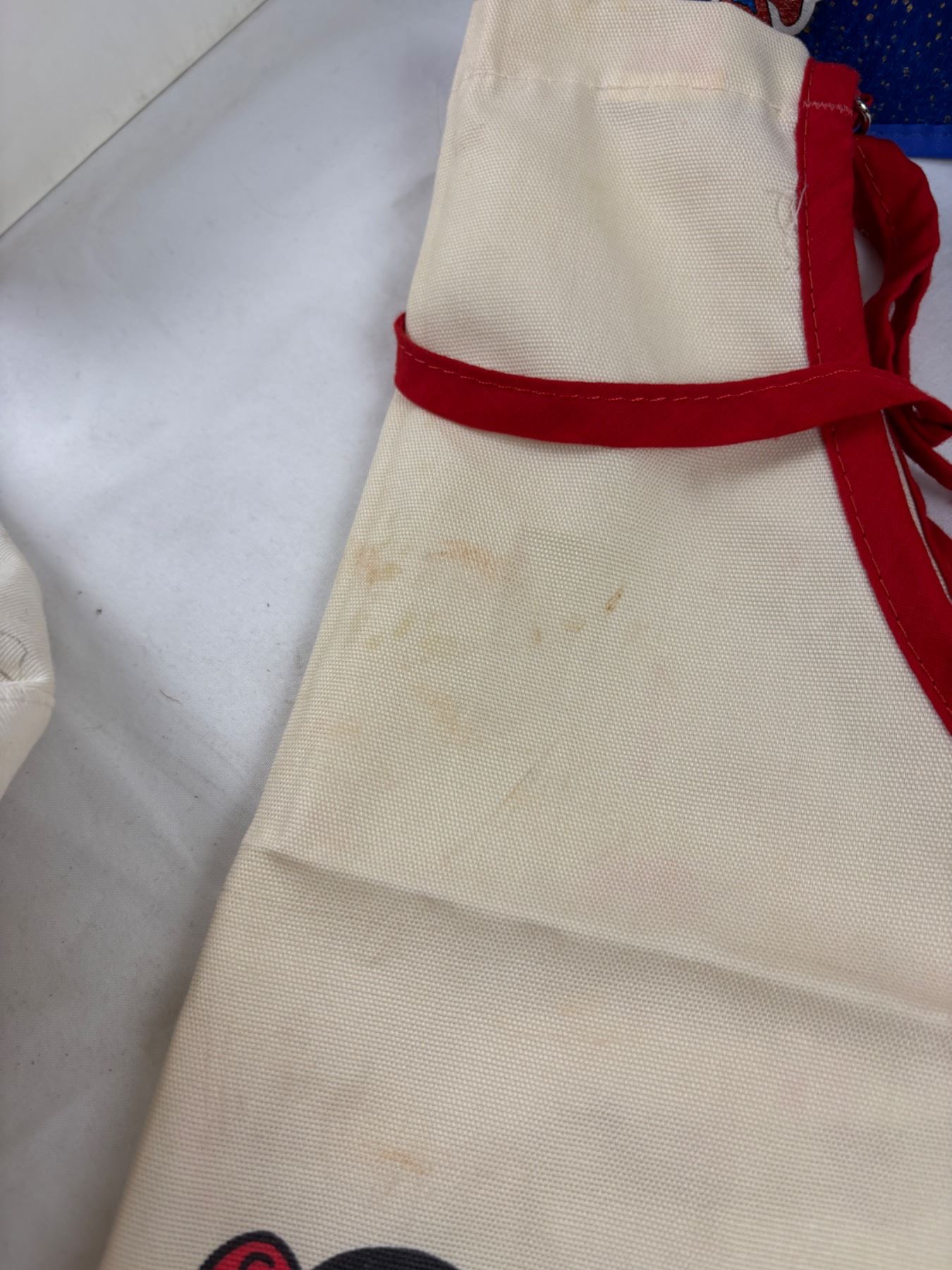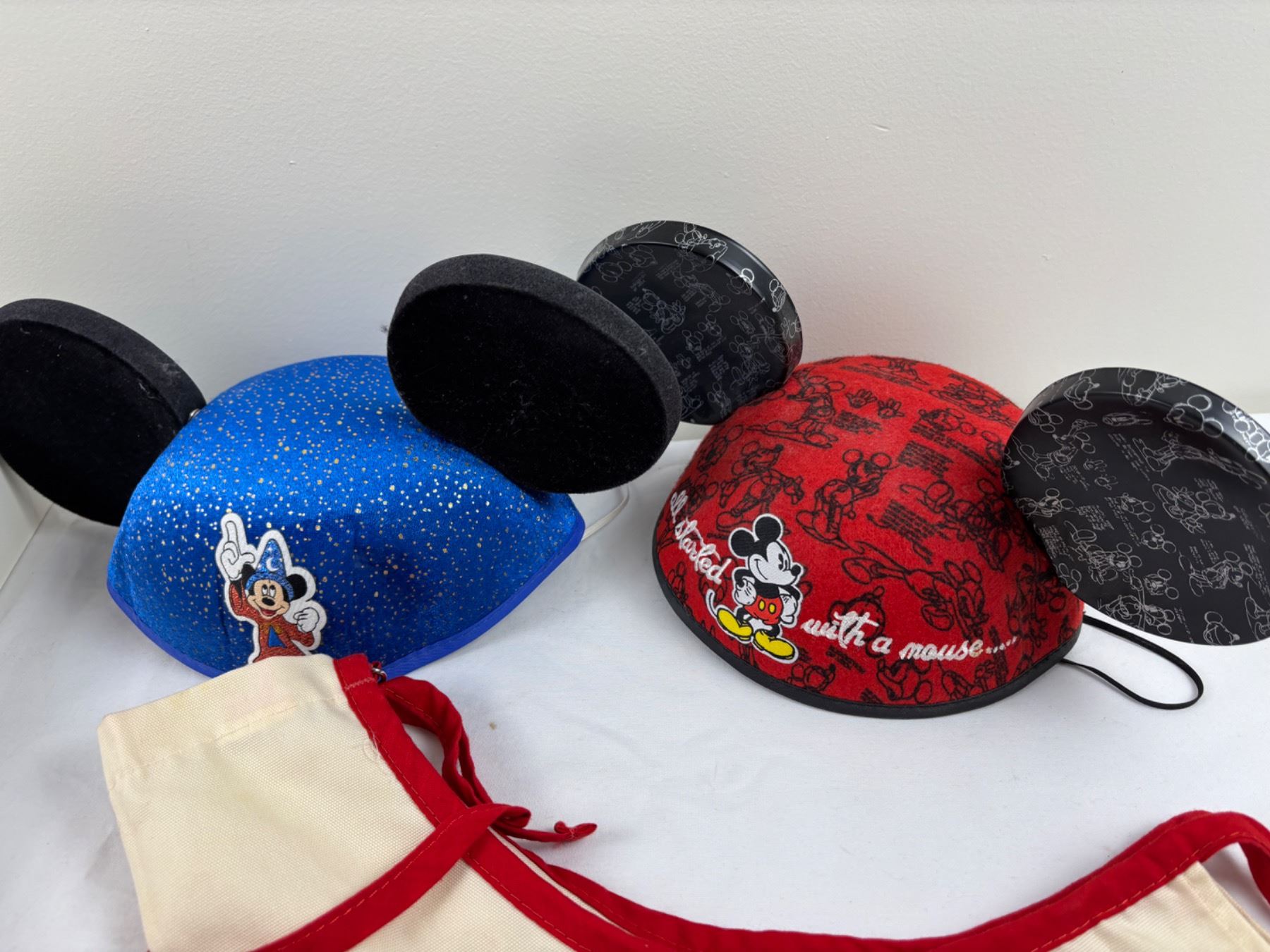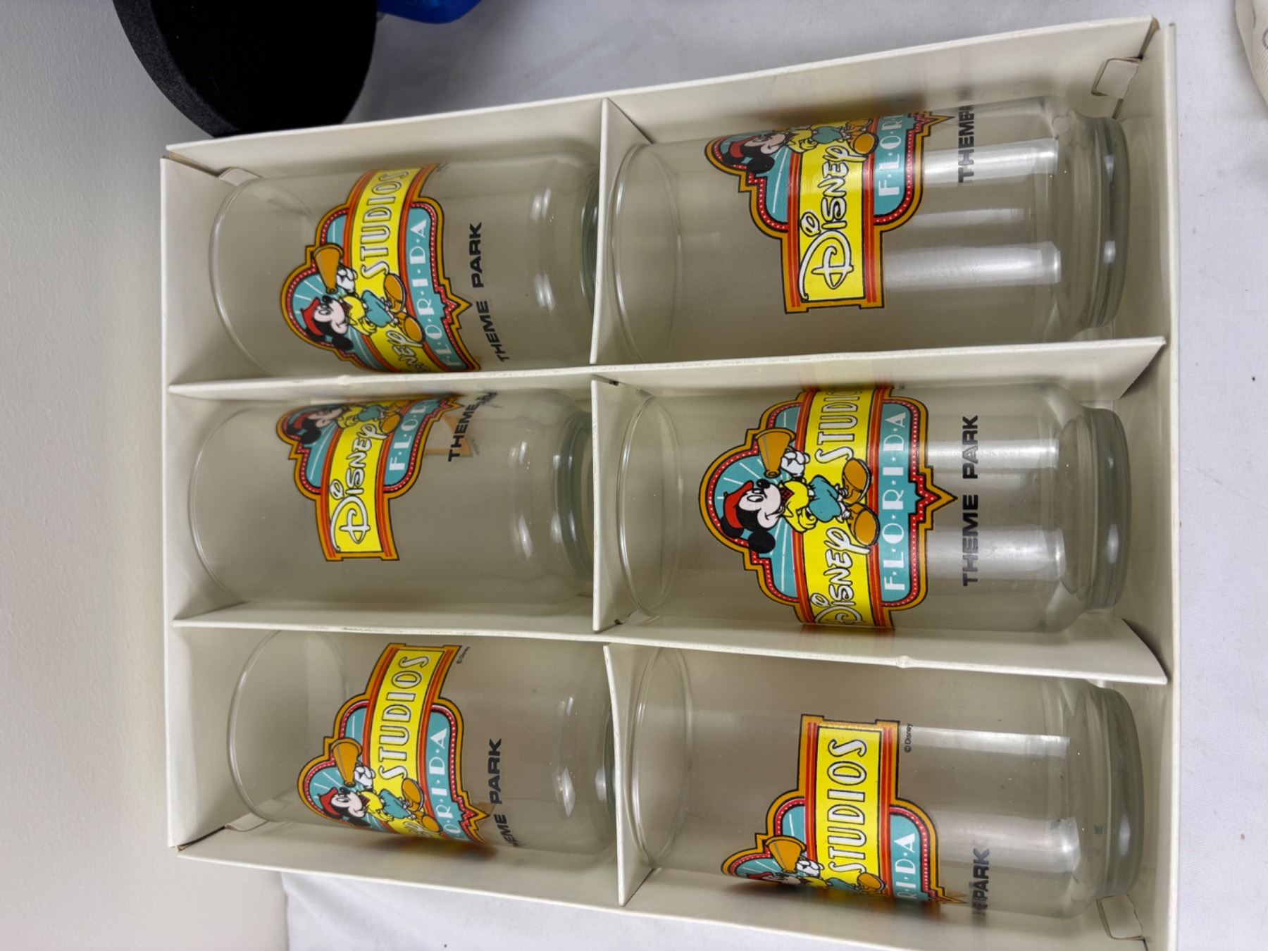 Includes, Mickey & Minnie Apron (some sm stains), various pins, set of six Theme Park Glasses, and more