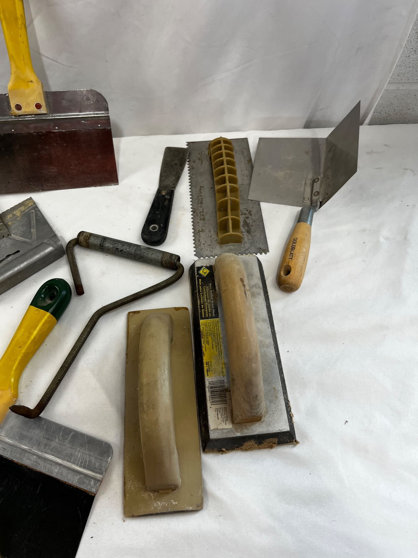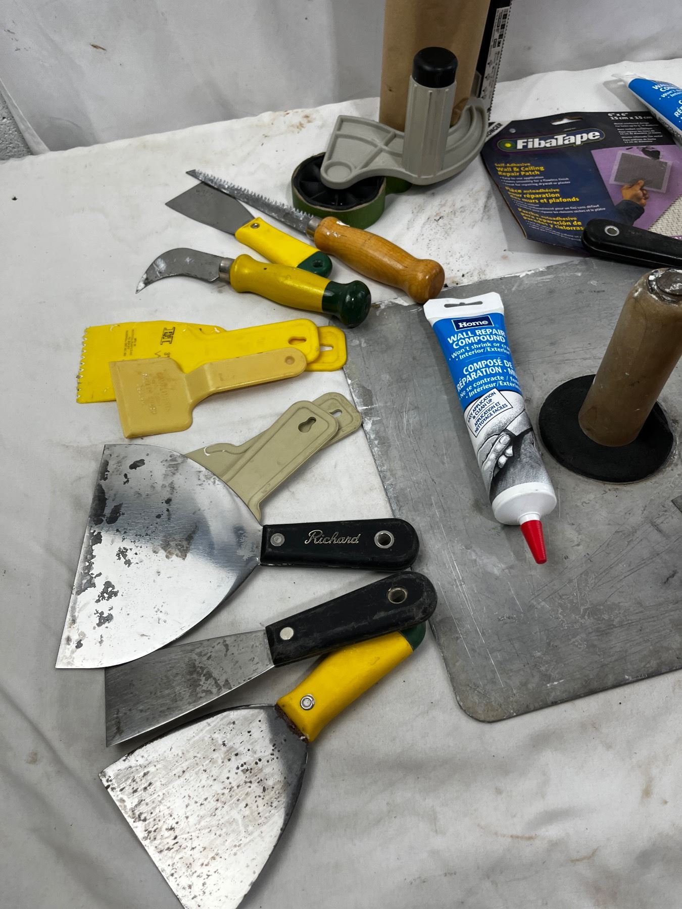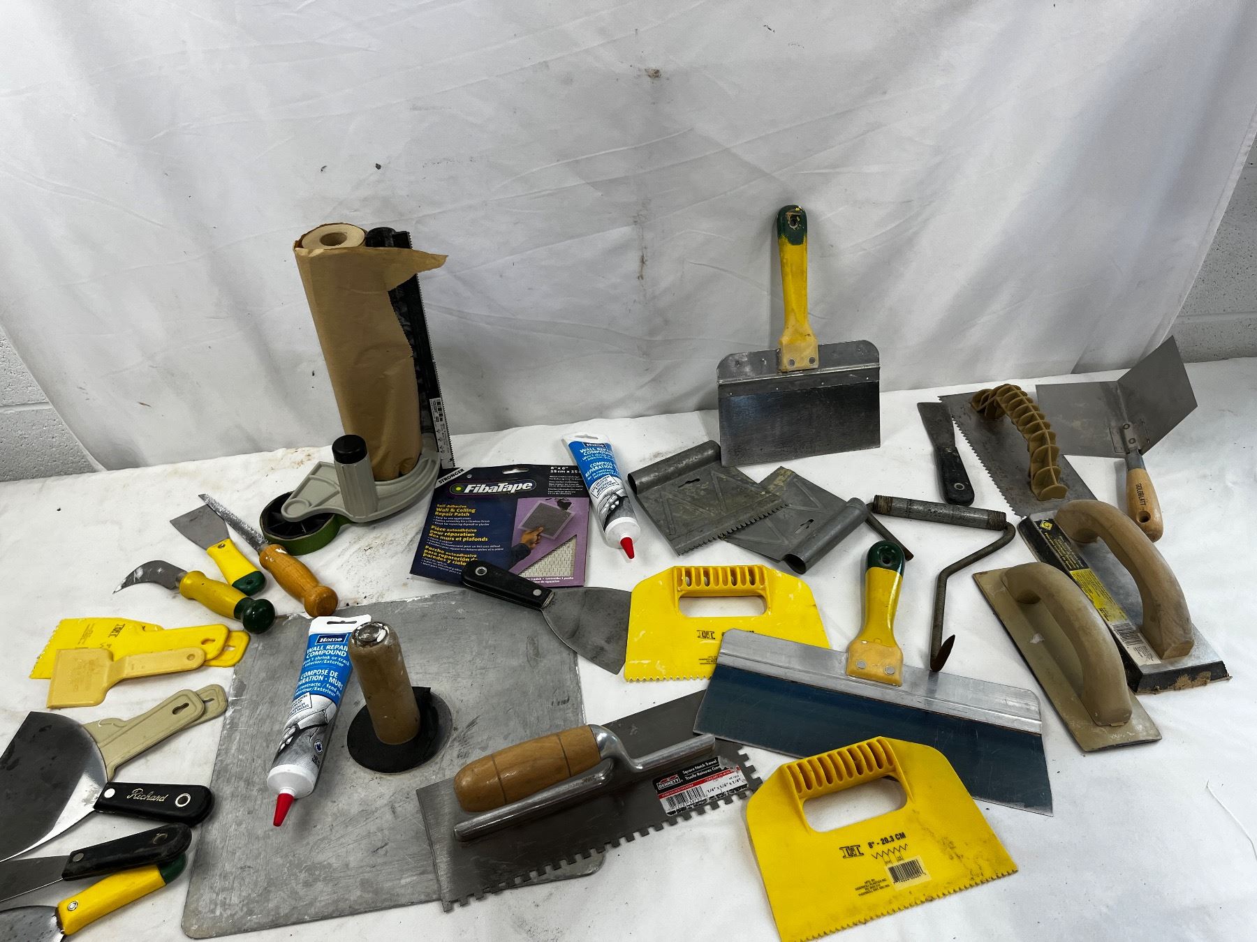 Includes various trowels, grout float, repair patch and compounds, etc.