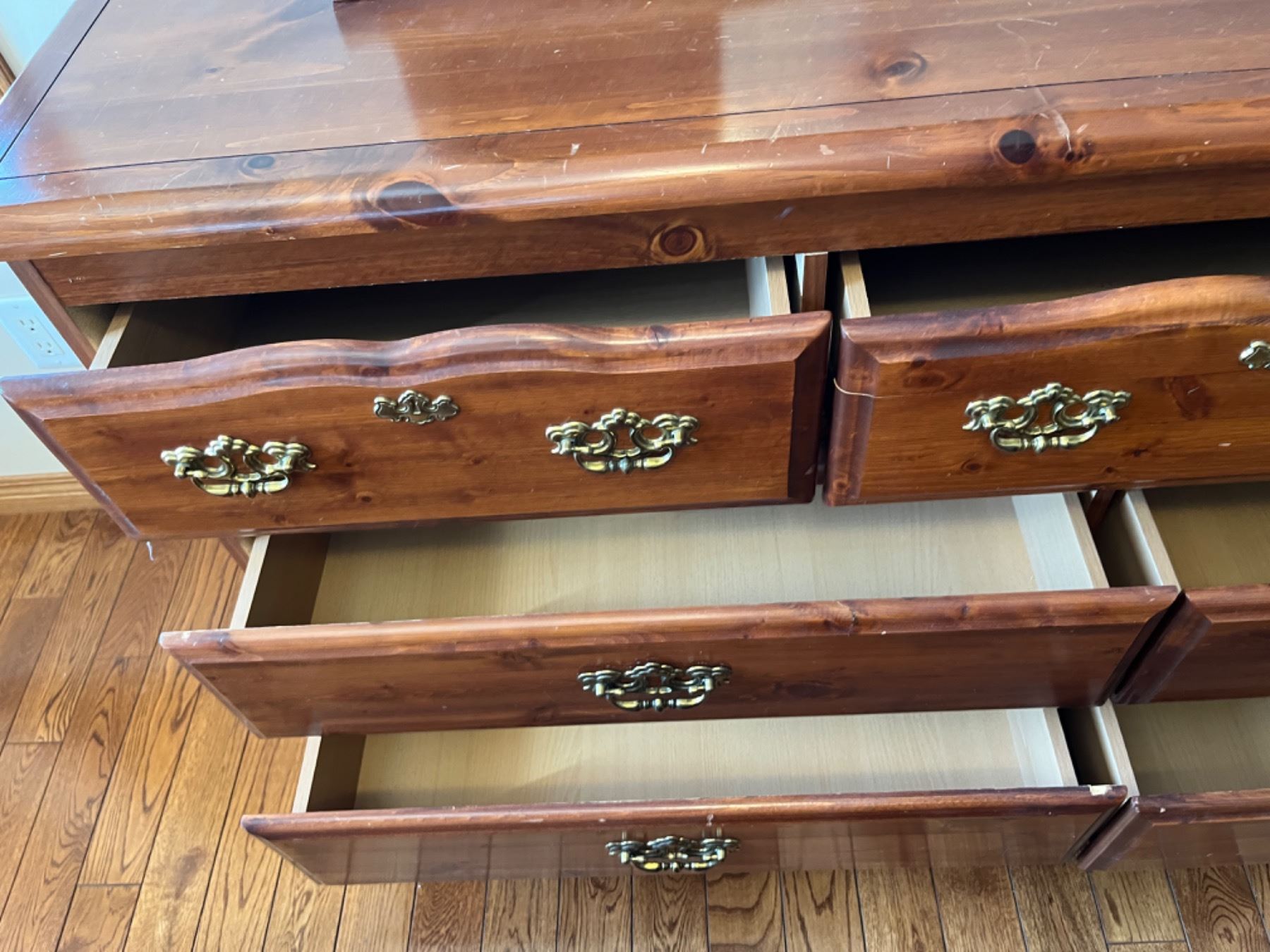 Missing Post & Rail in Front Of Mirror. 2 Drawers have a Crack, 64" Wide x 17" Deep x 6' Tall With Mirror