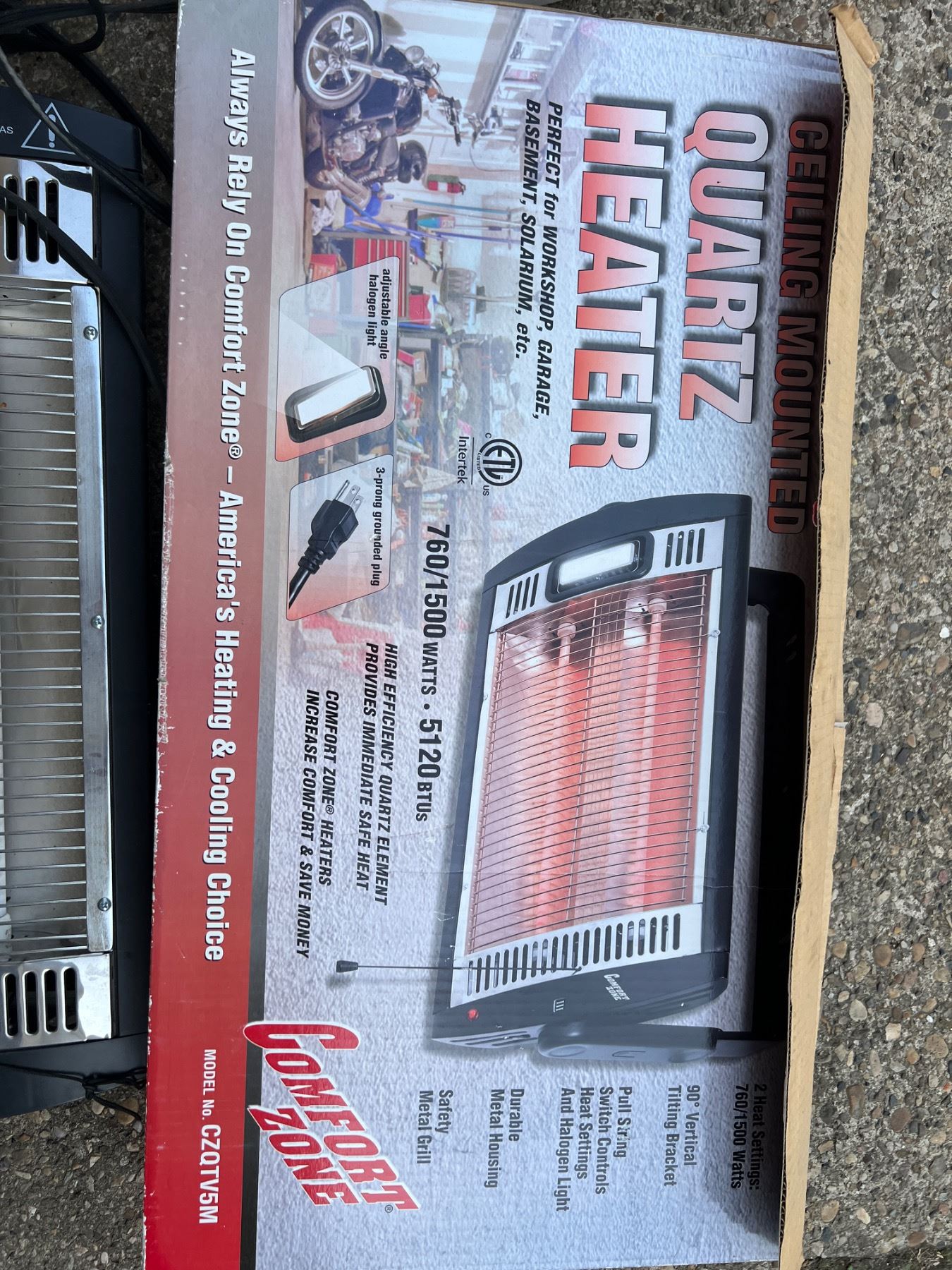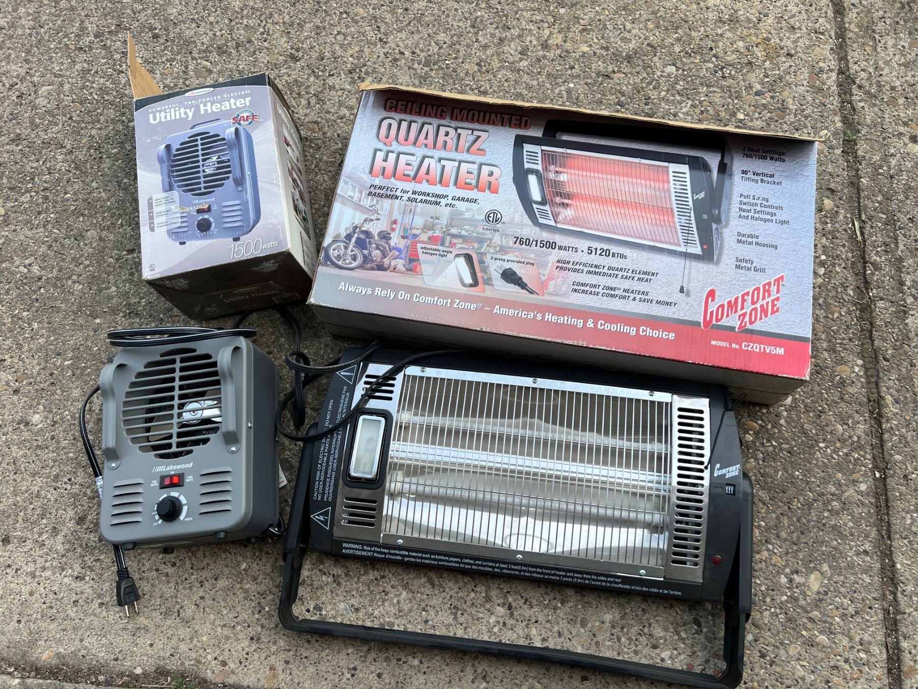 Includes, Ceiling Mounted Quartz Heater, Utility Heater, both turn on