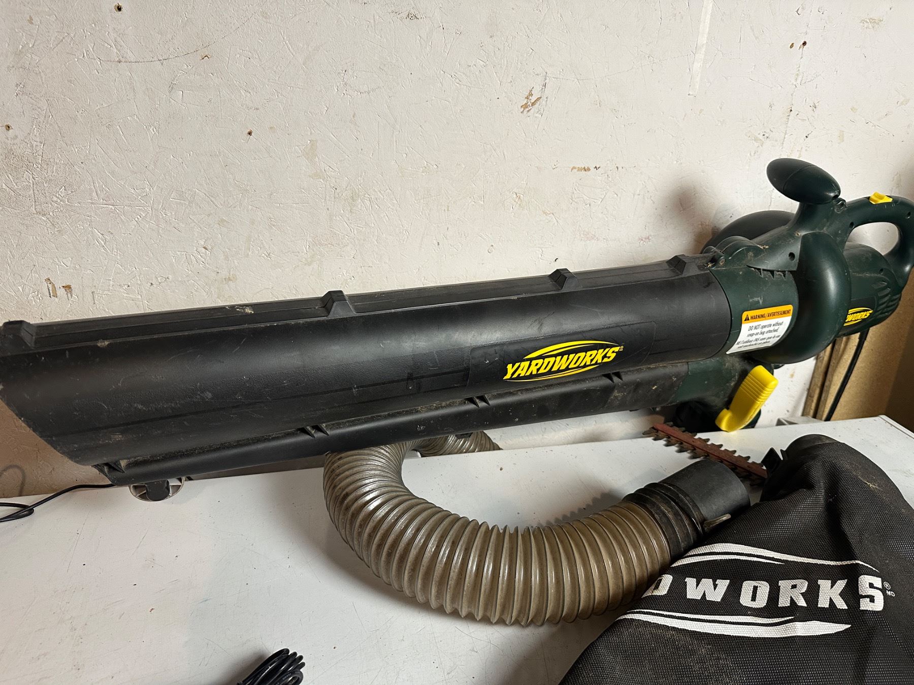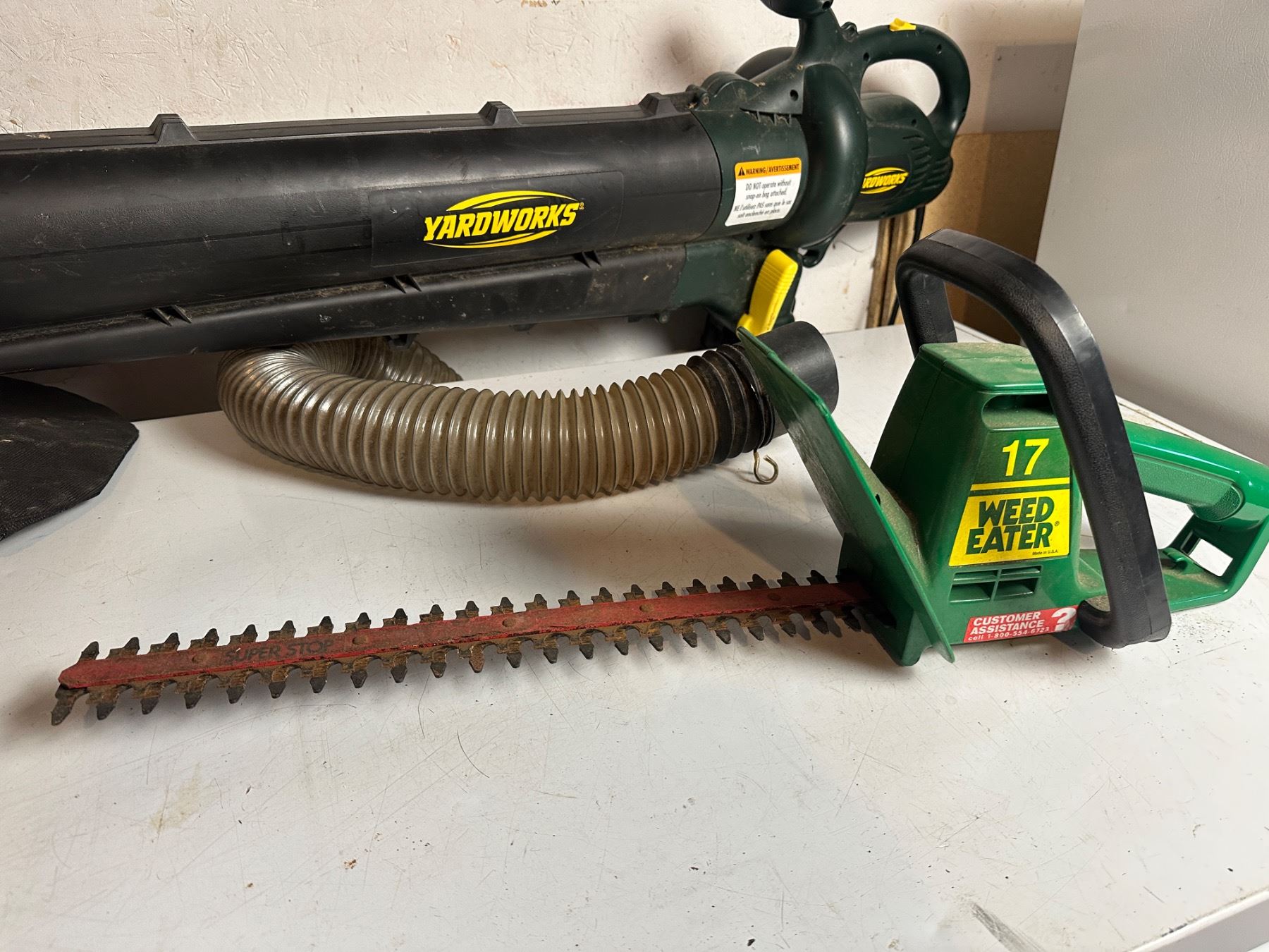 Includes Craftsman 13" battery operated trimmer with charger and battery - 17" weed eater and Yard Works electric Blower/Vac with bag - all work