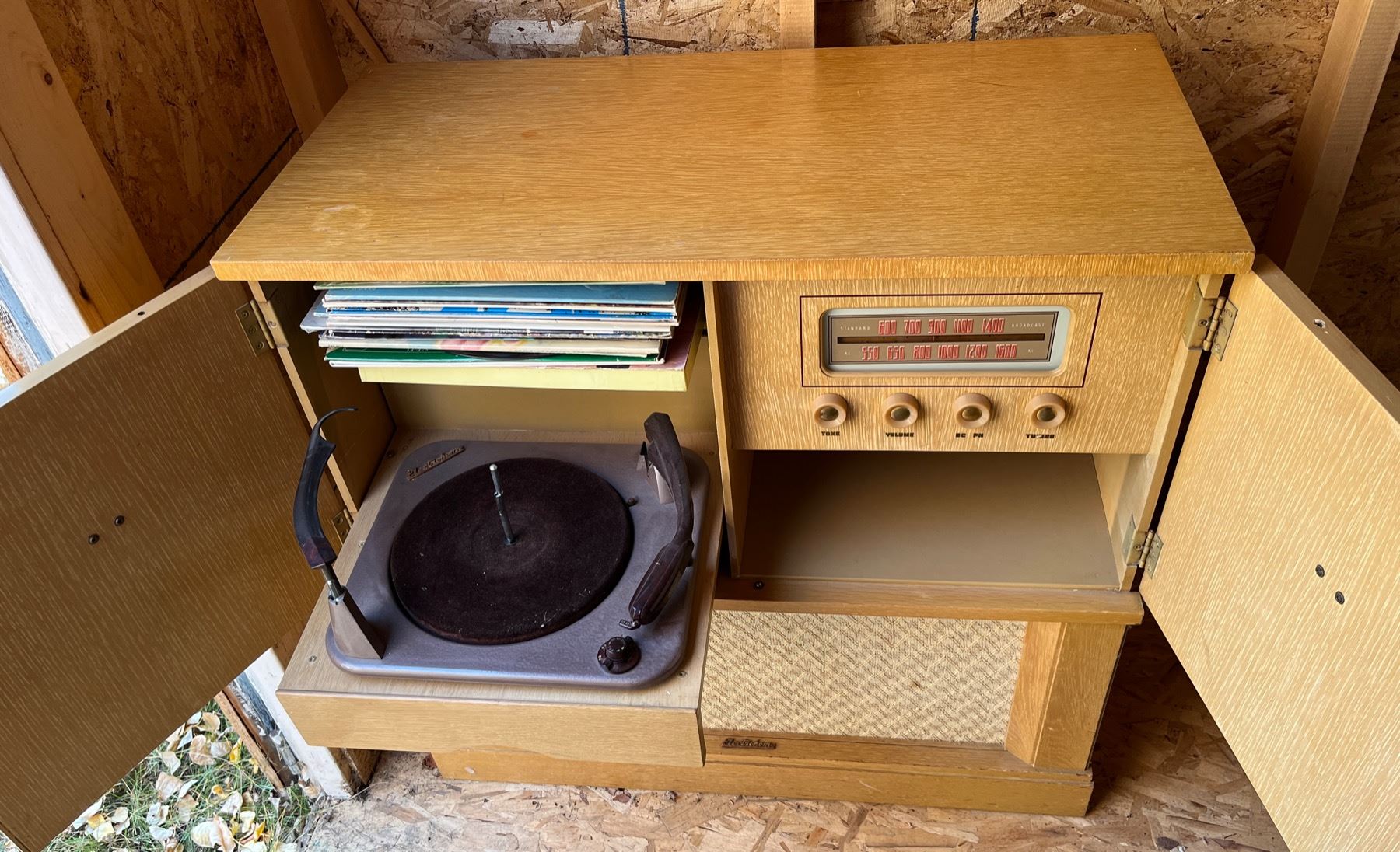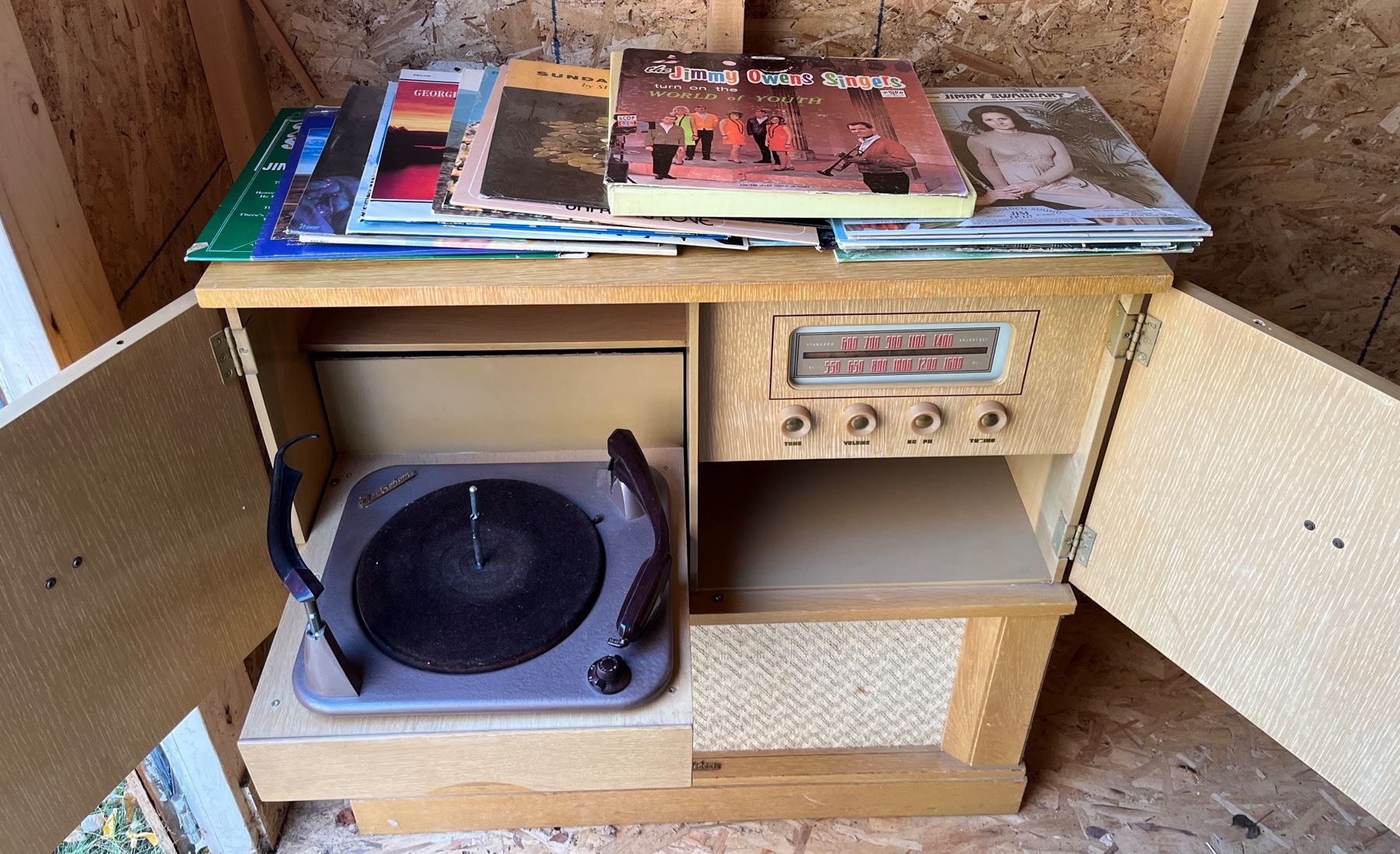 Including various records - 32" long x 16" wide x 32" tall