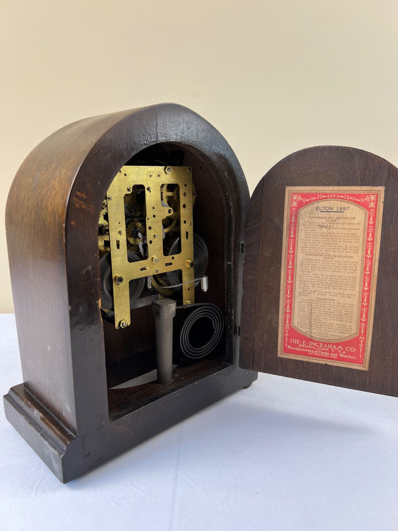 Includes one winding key, 9"L x 5"W x 11"H
