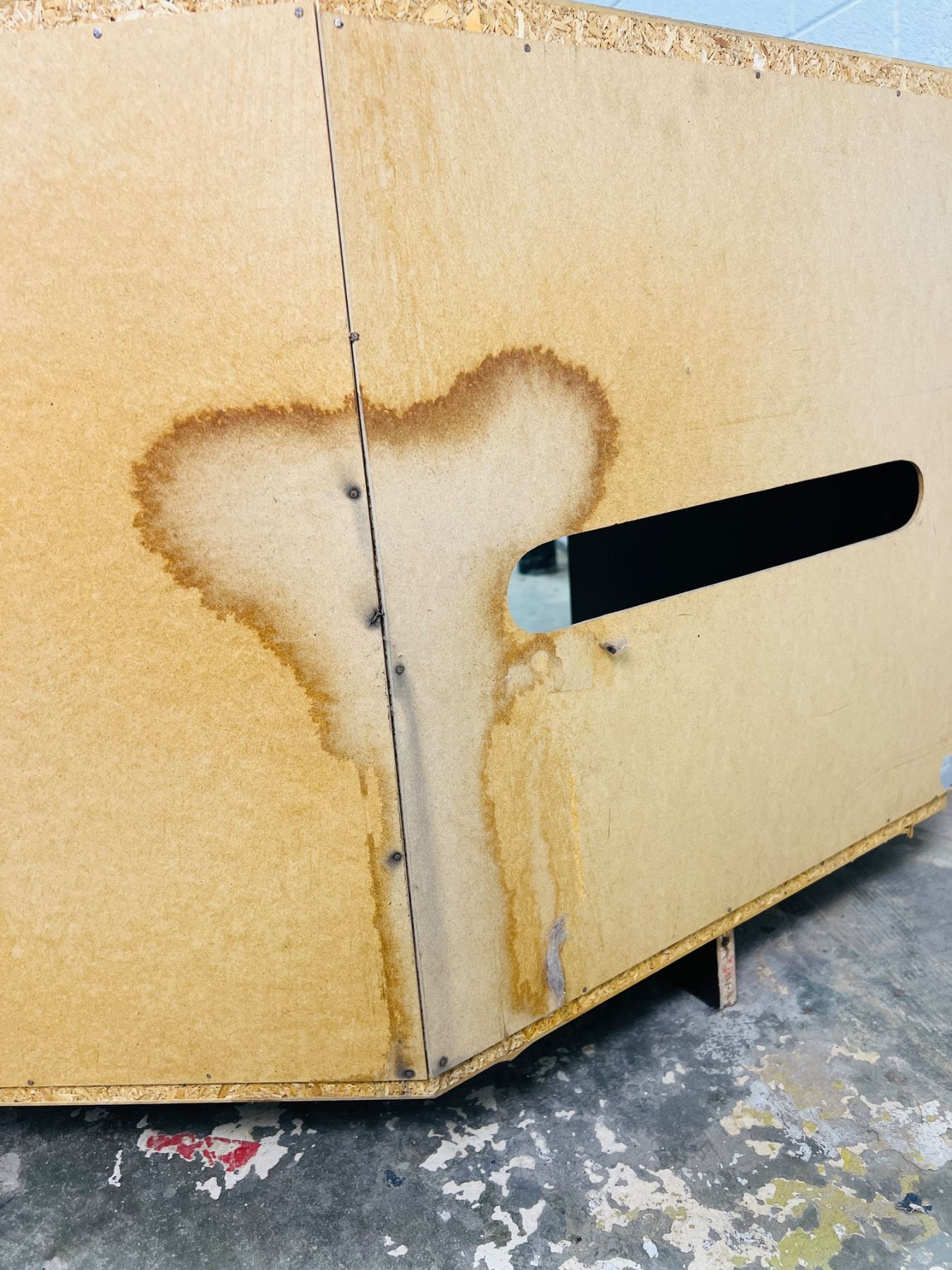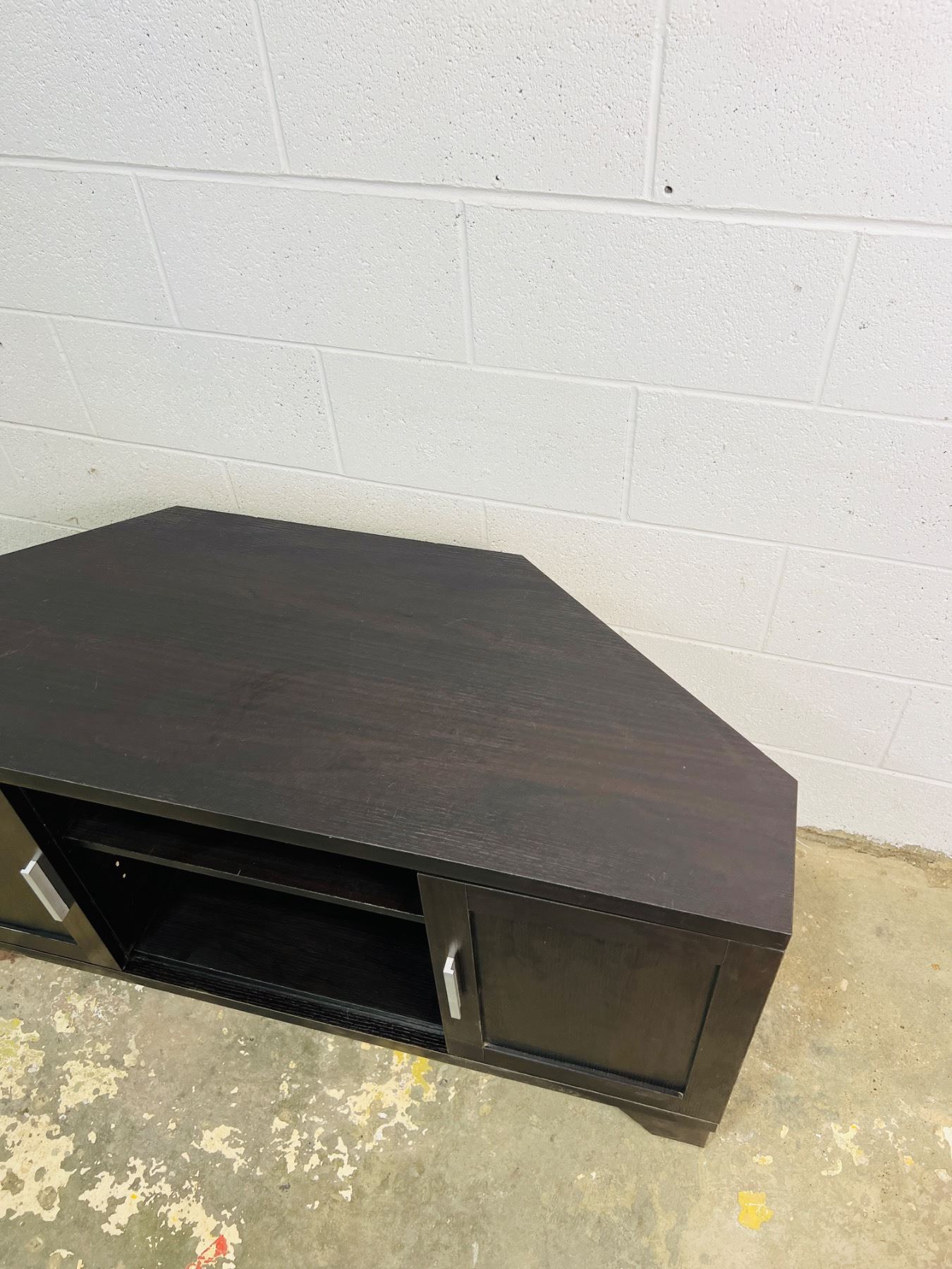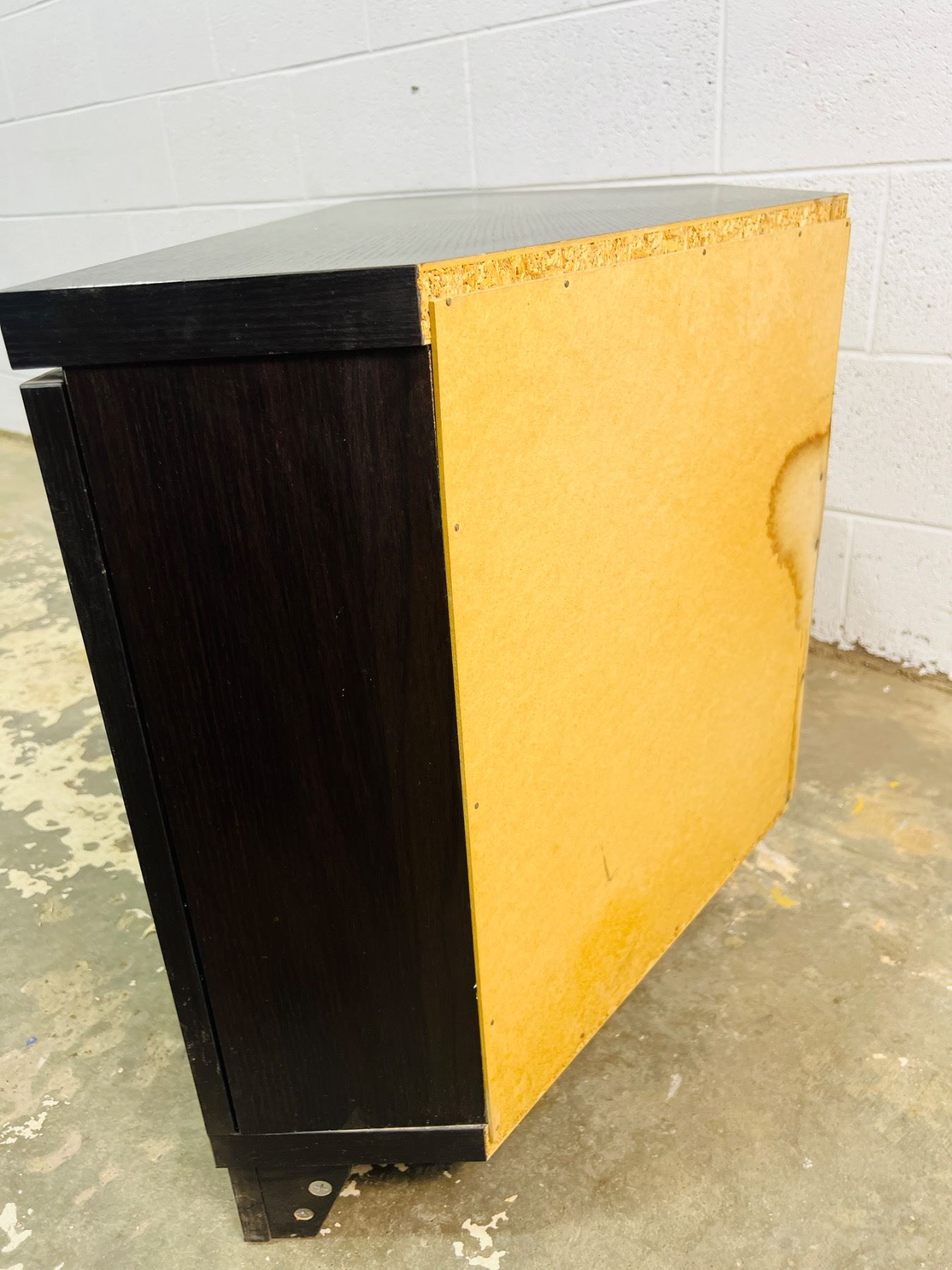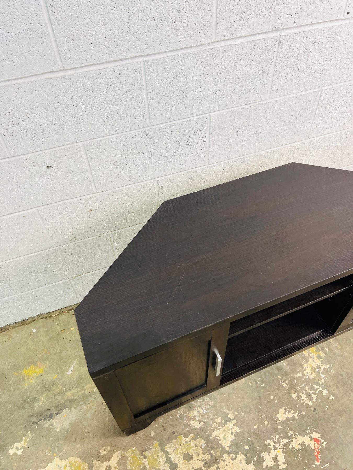Missing two self pegs, has a water stain on the back panel, measures 24" H by 47" wide and 18" deep