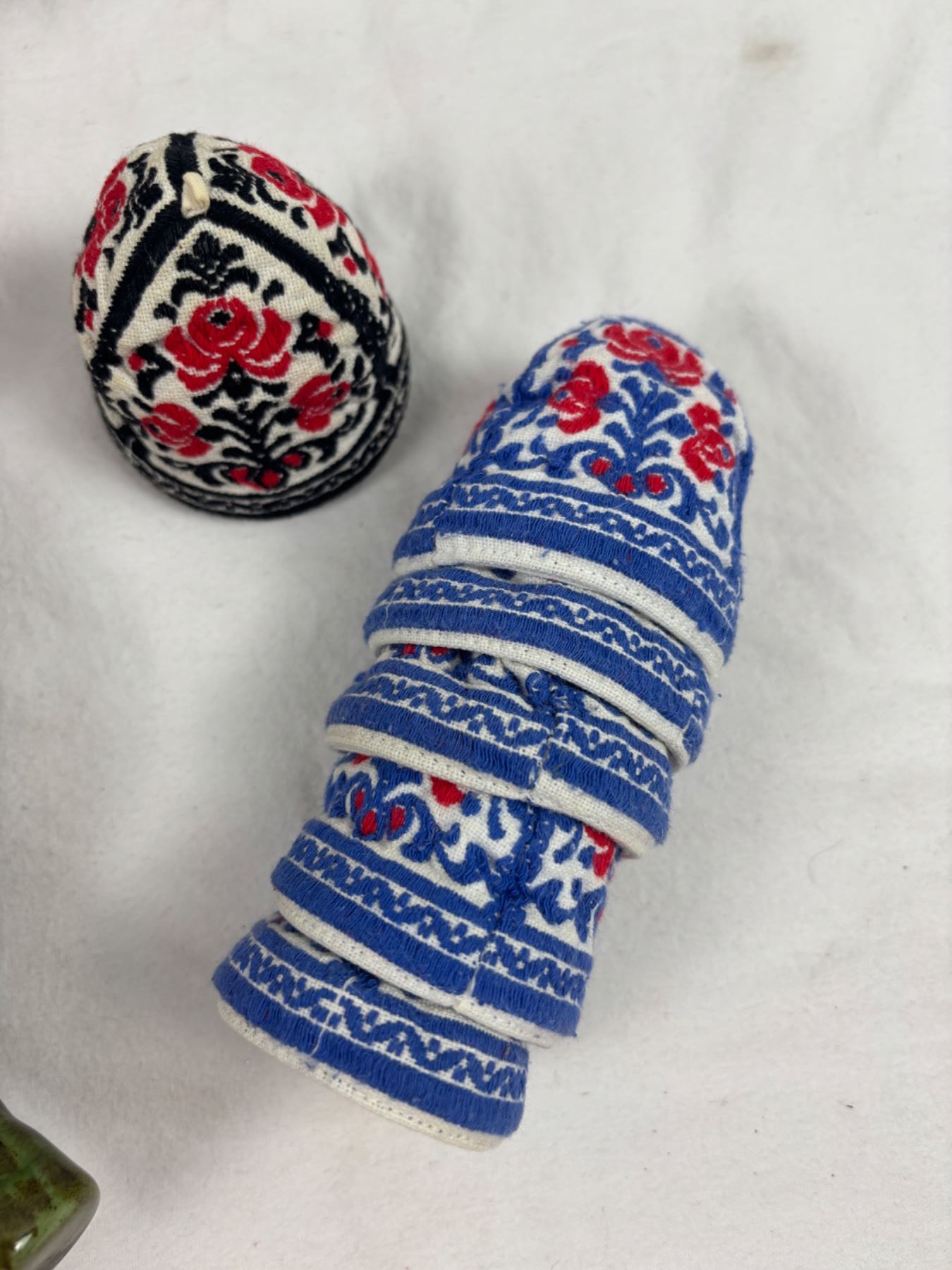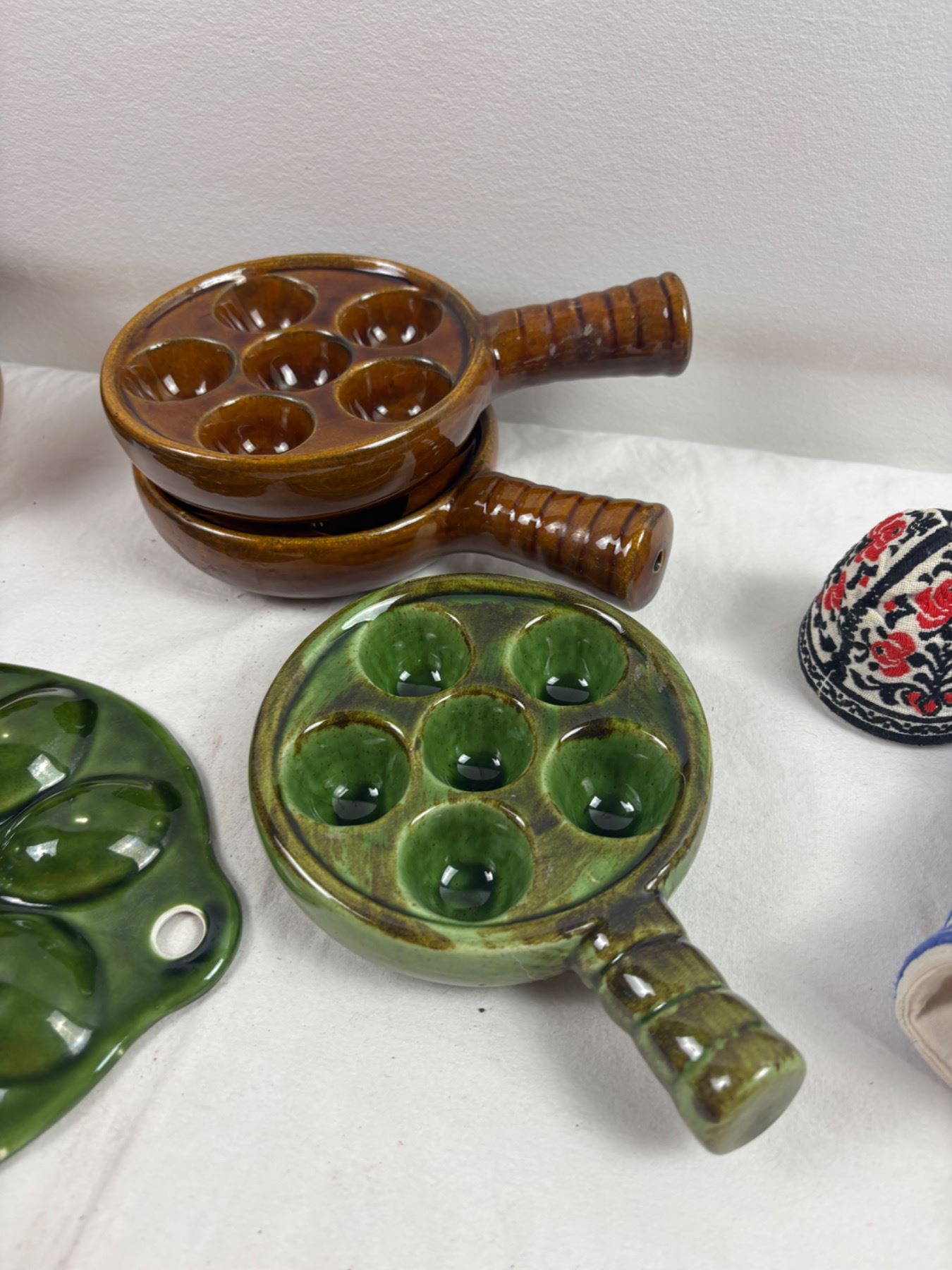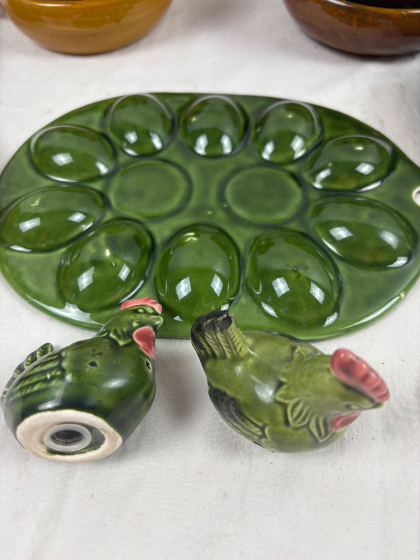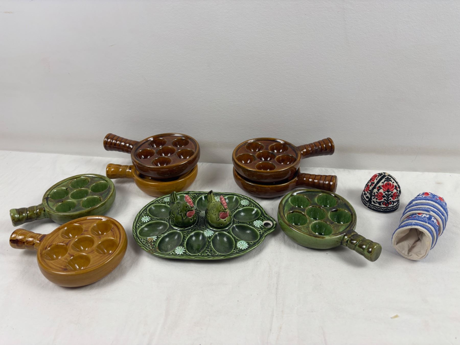 Includes six egg warmers, the devilled egg dish is 10x7"
