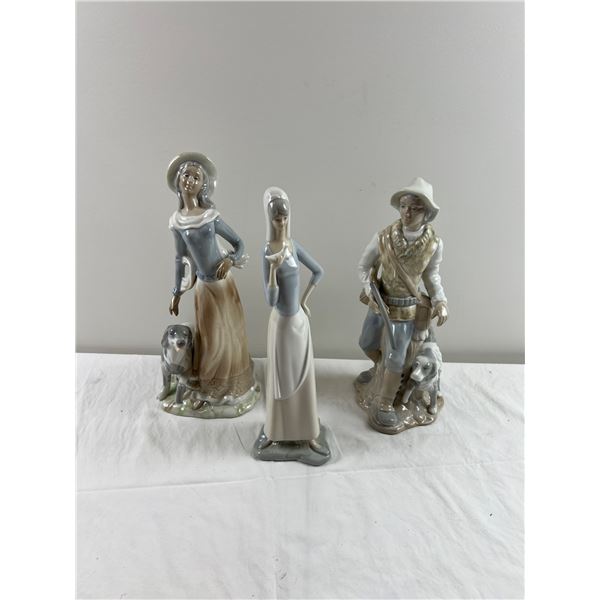 Tallest figure is 14". Both figures with dogs are hand made.