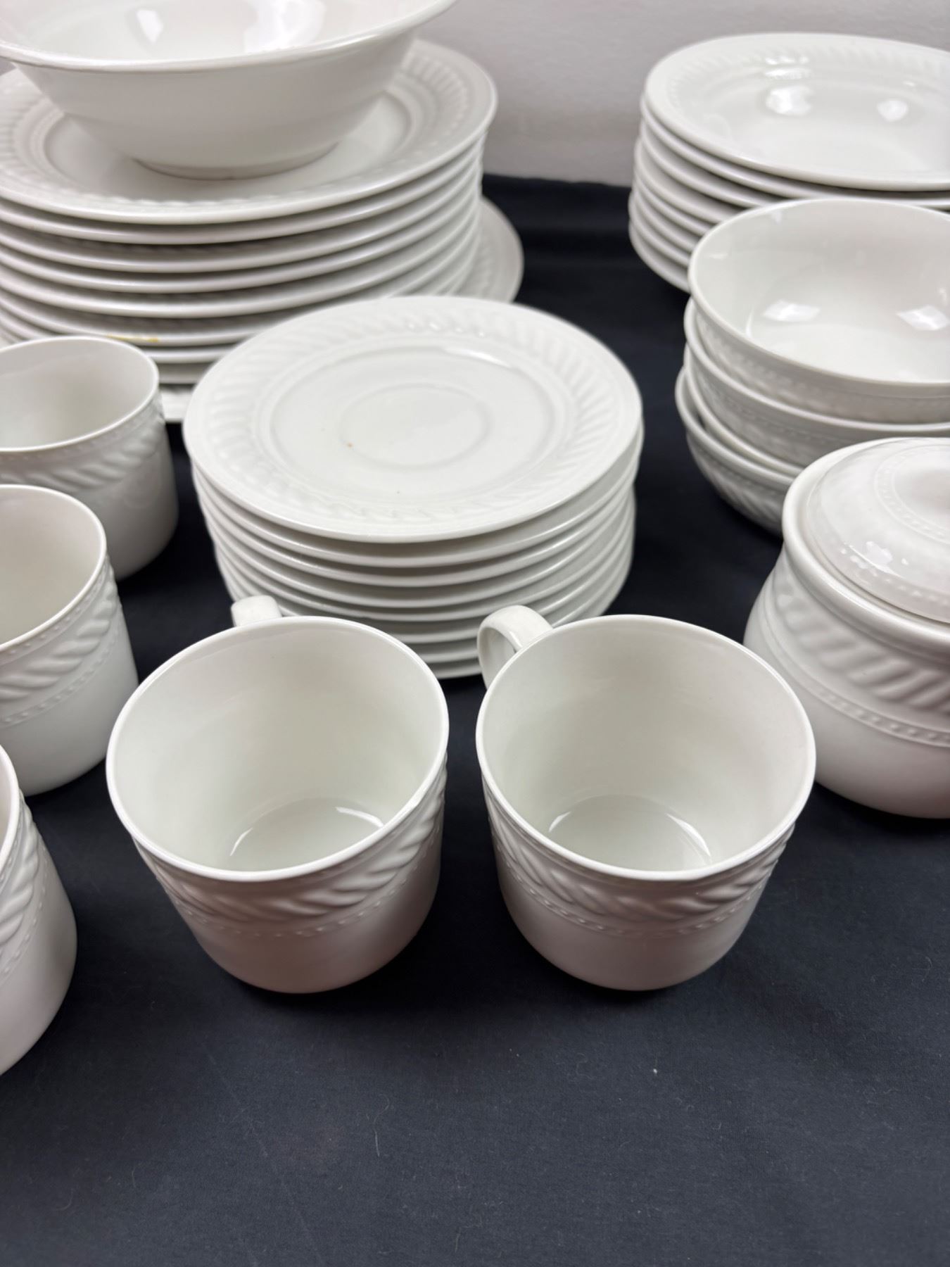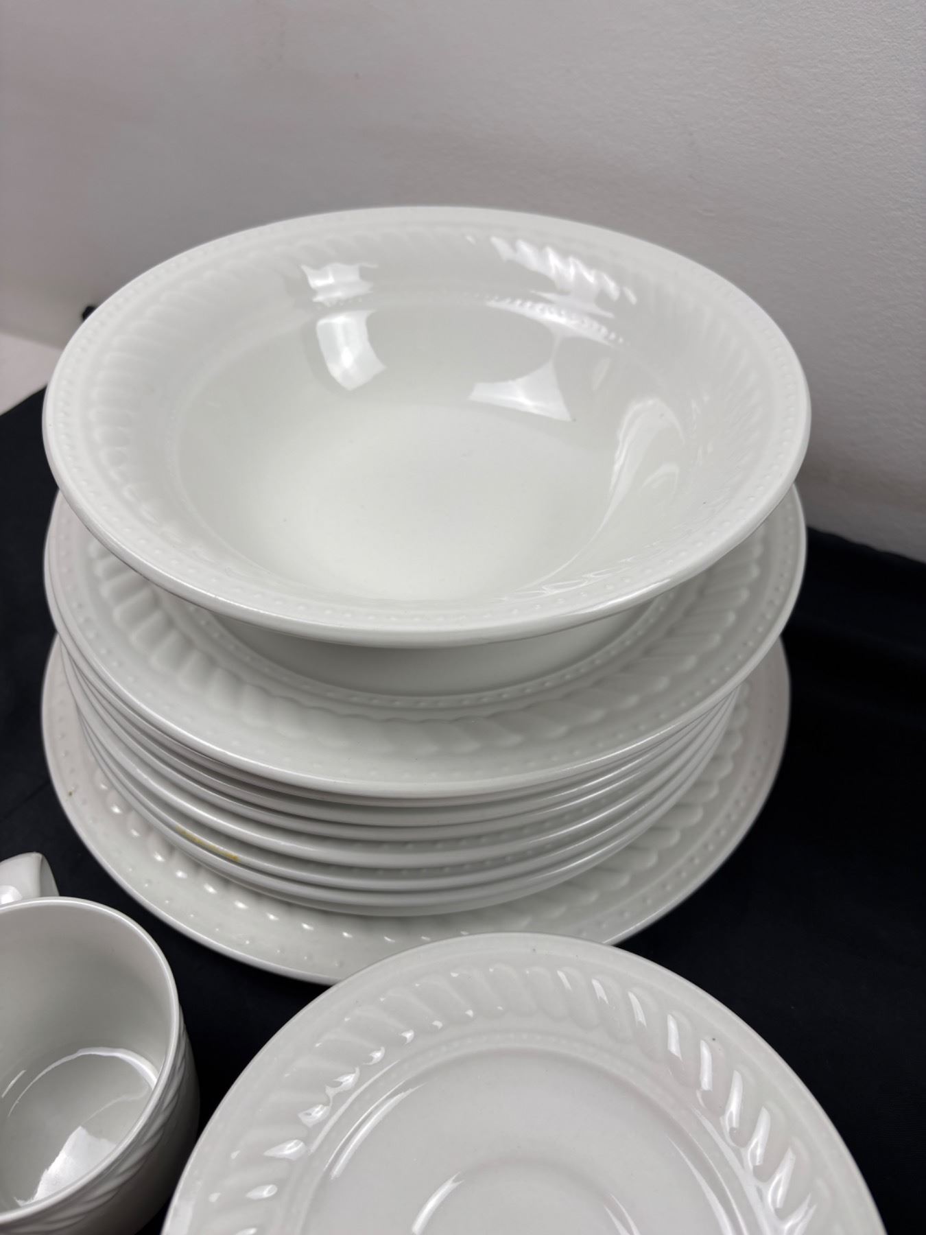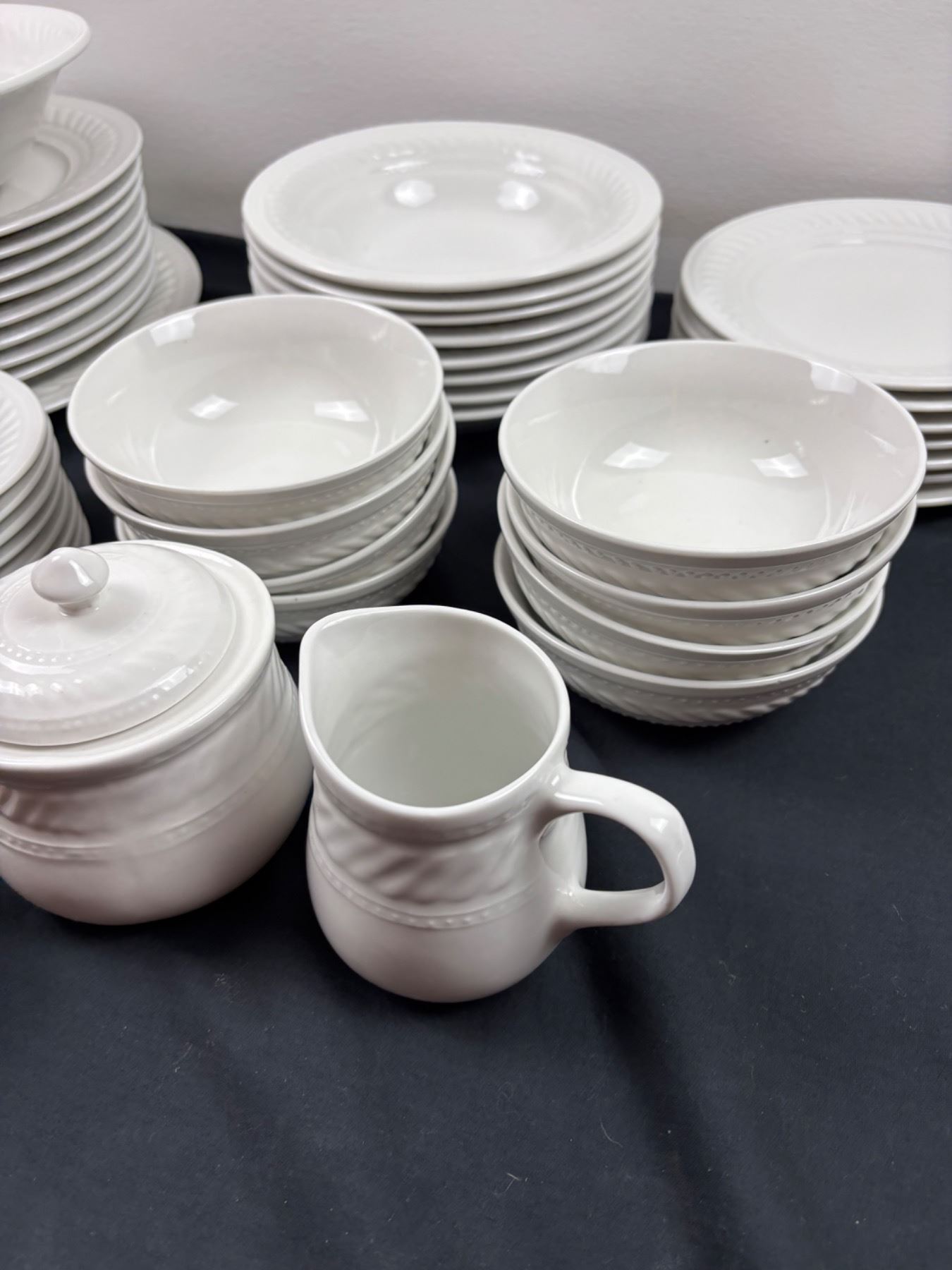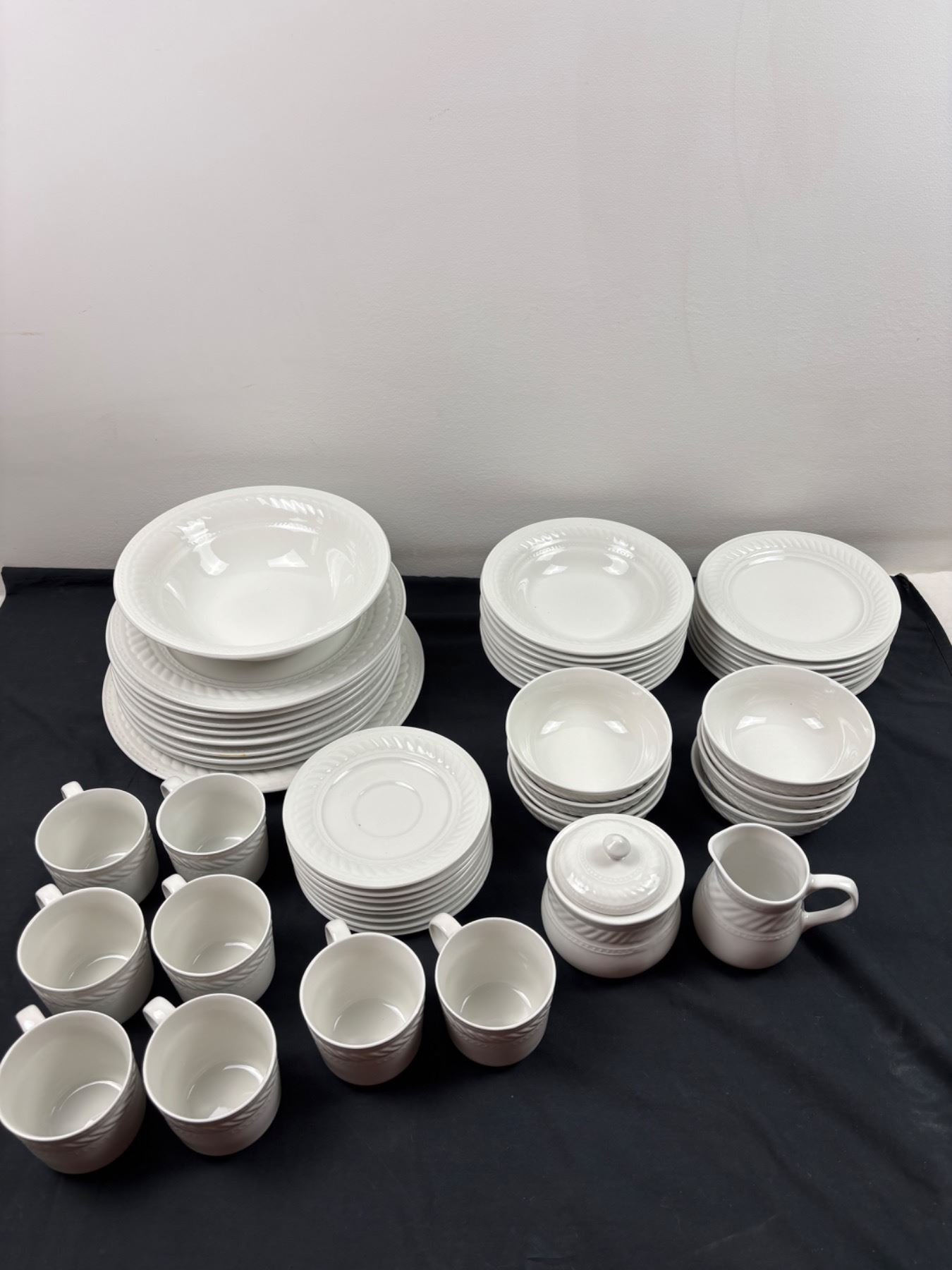 Some small wear marks, chip on the rim of one side plate, approximately 51 pieces