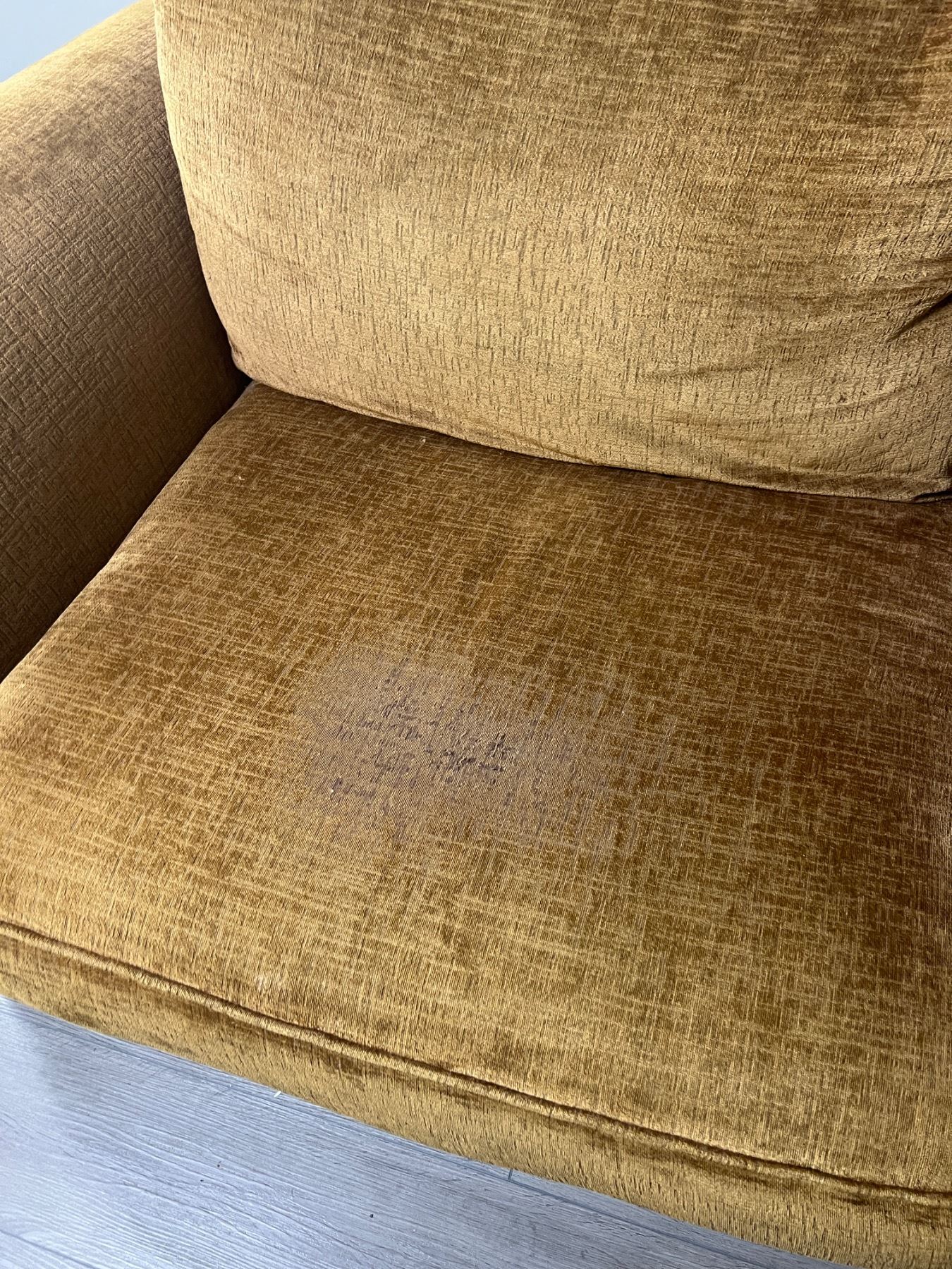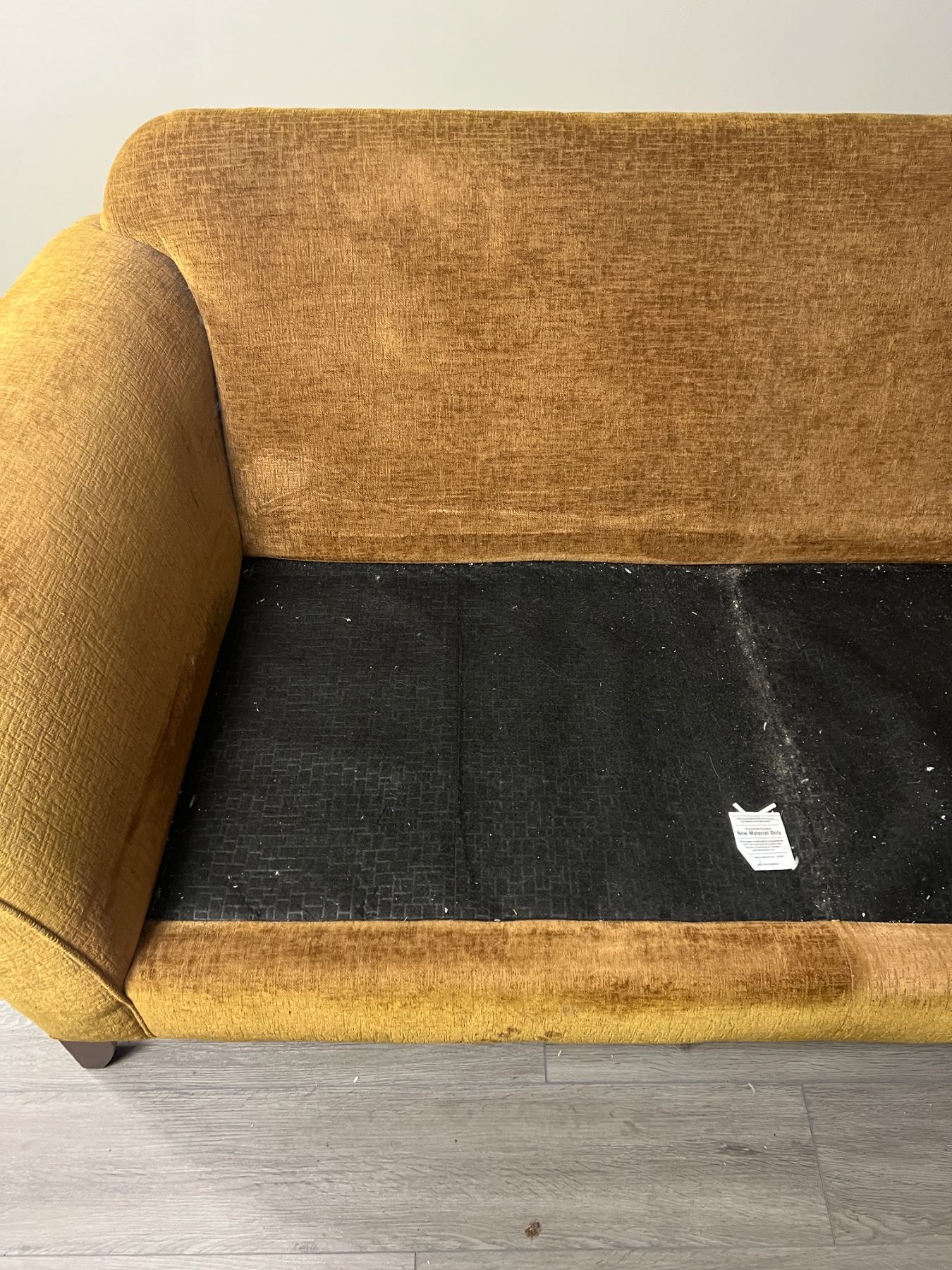 Some marks to seat area. Measures 32" tall by 38" by 84"