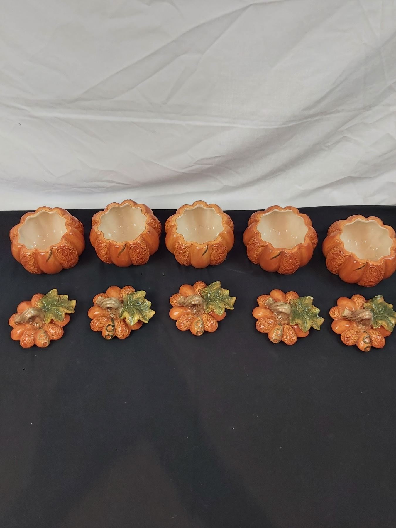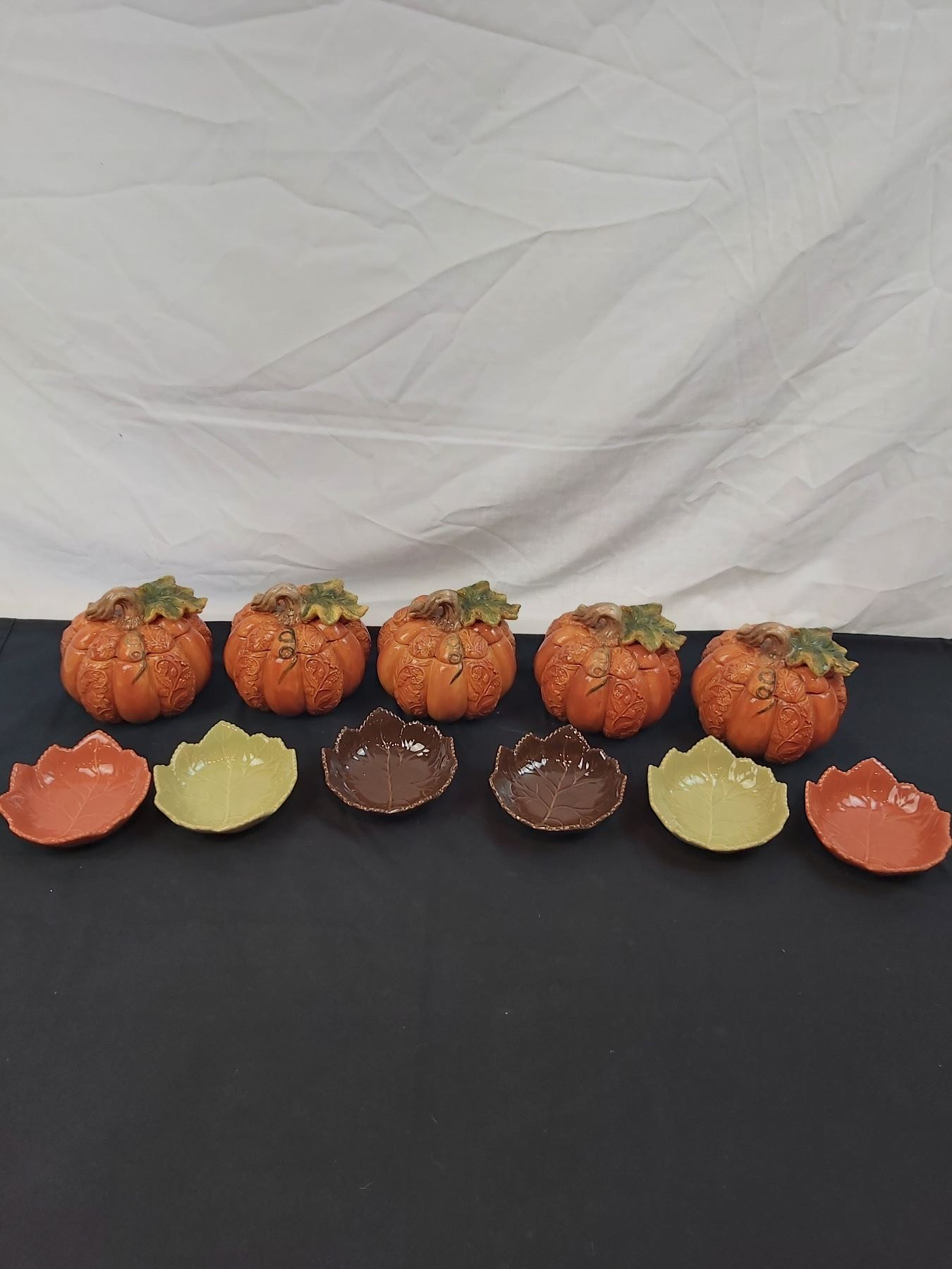 Includes "Tag" leaf plates, 5 "Kaldun & Bogle" pumpkin dishes