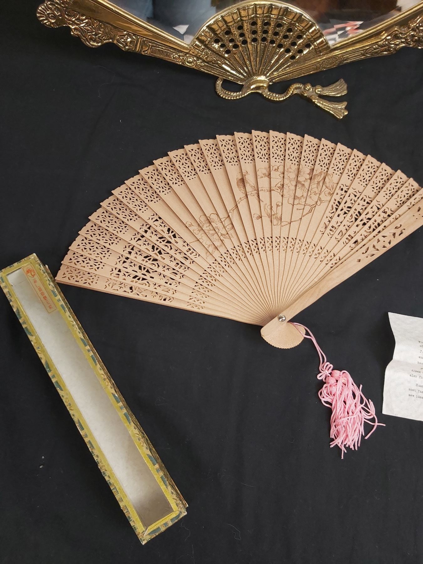 Includes a Brass like fan mirror (15"L x 8.5"H)