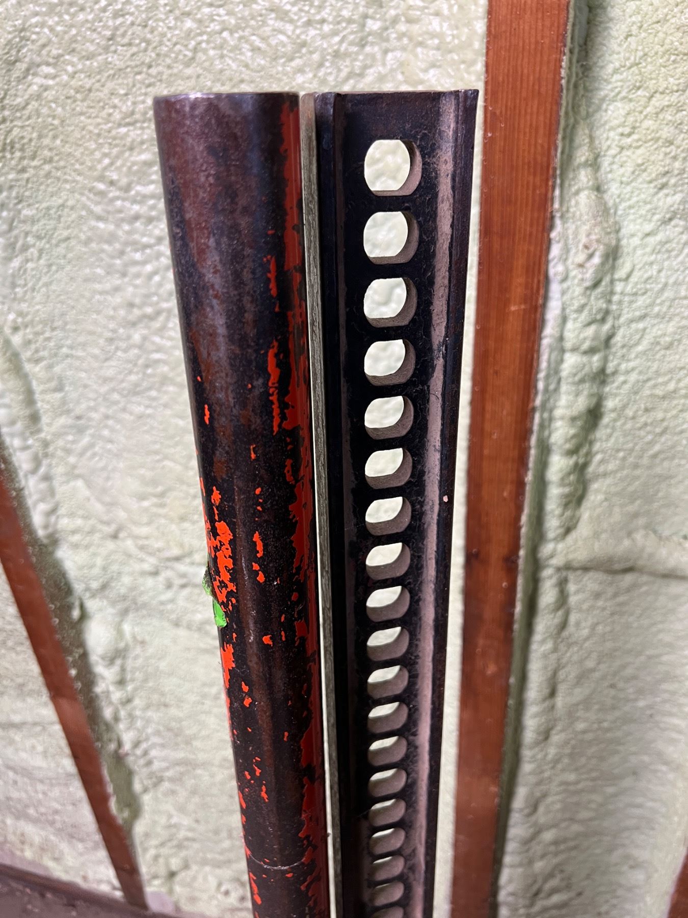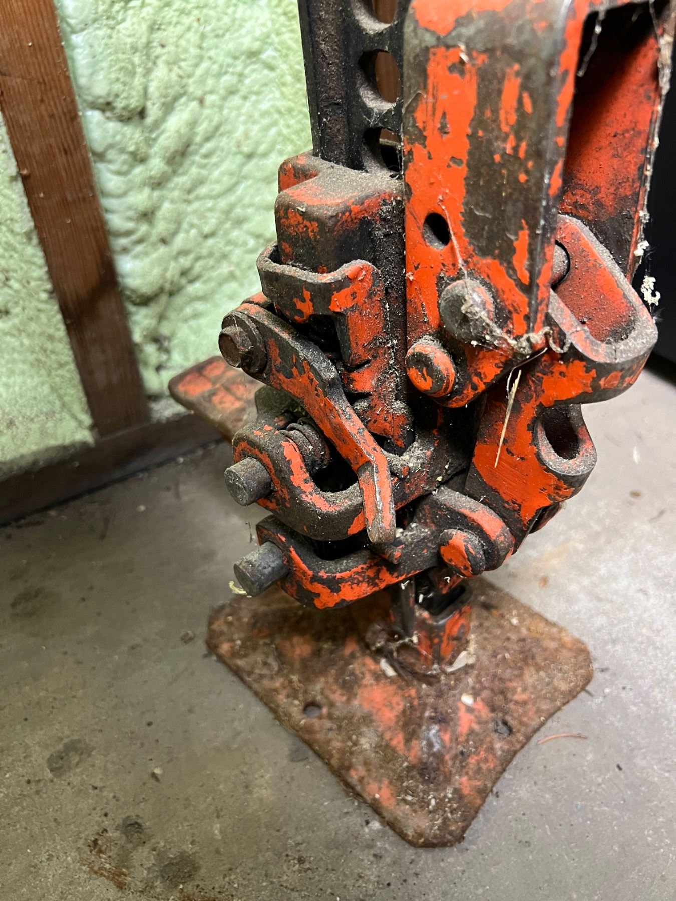 Heavy paint wear and some rust. Capacity unknown, labels have been rubbed off. 37" tall