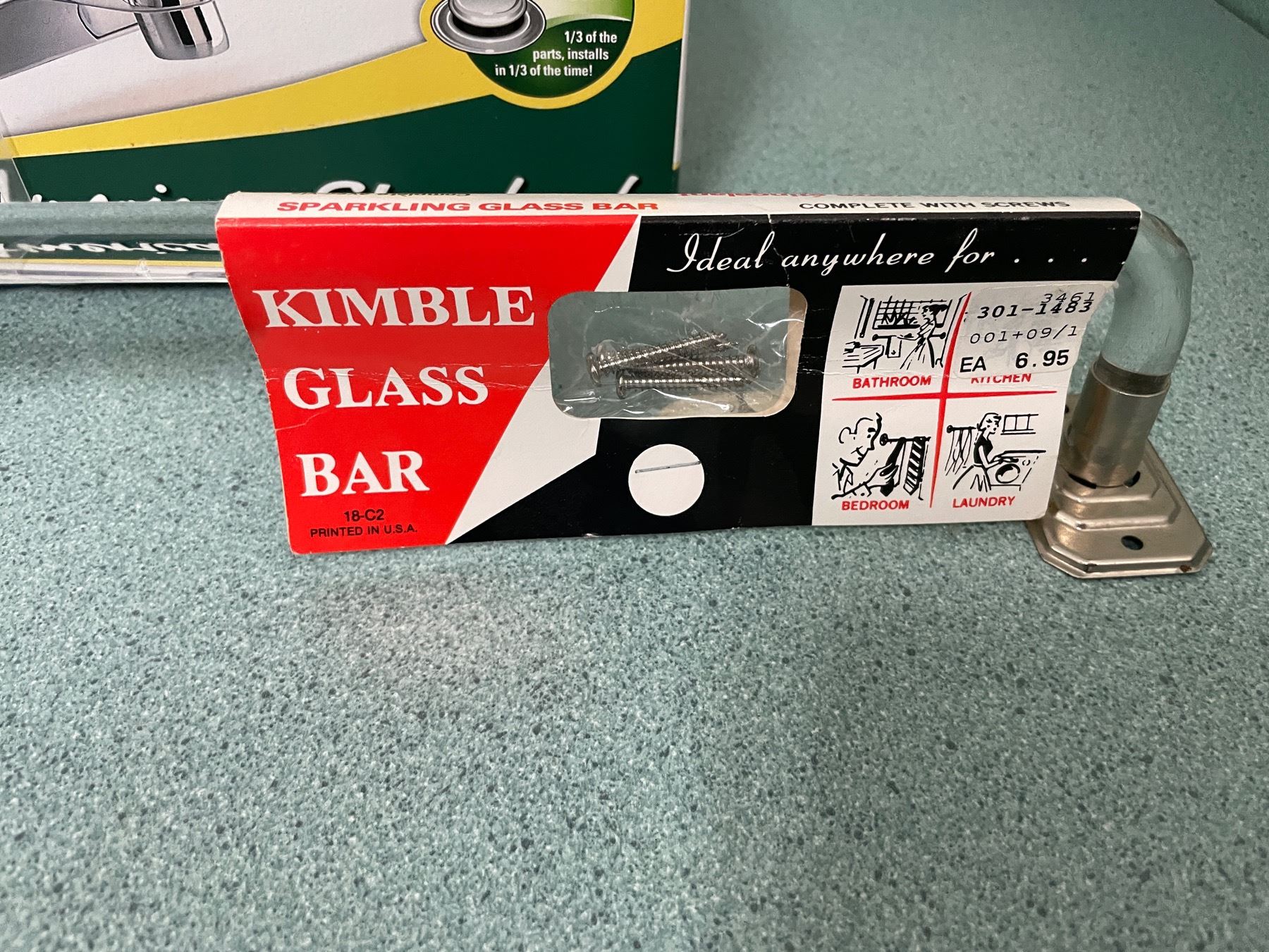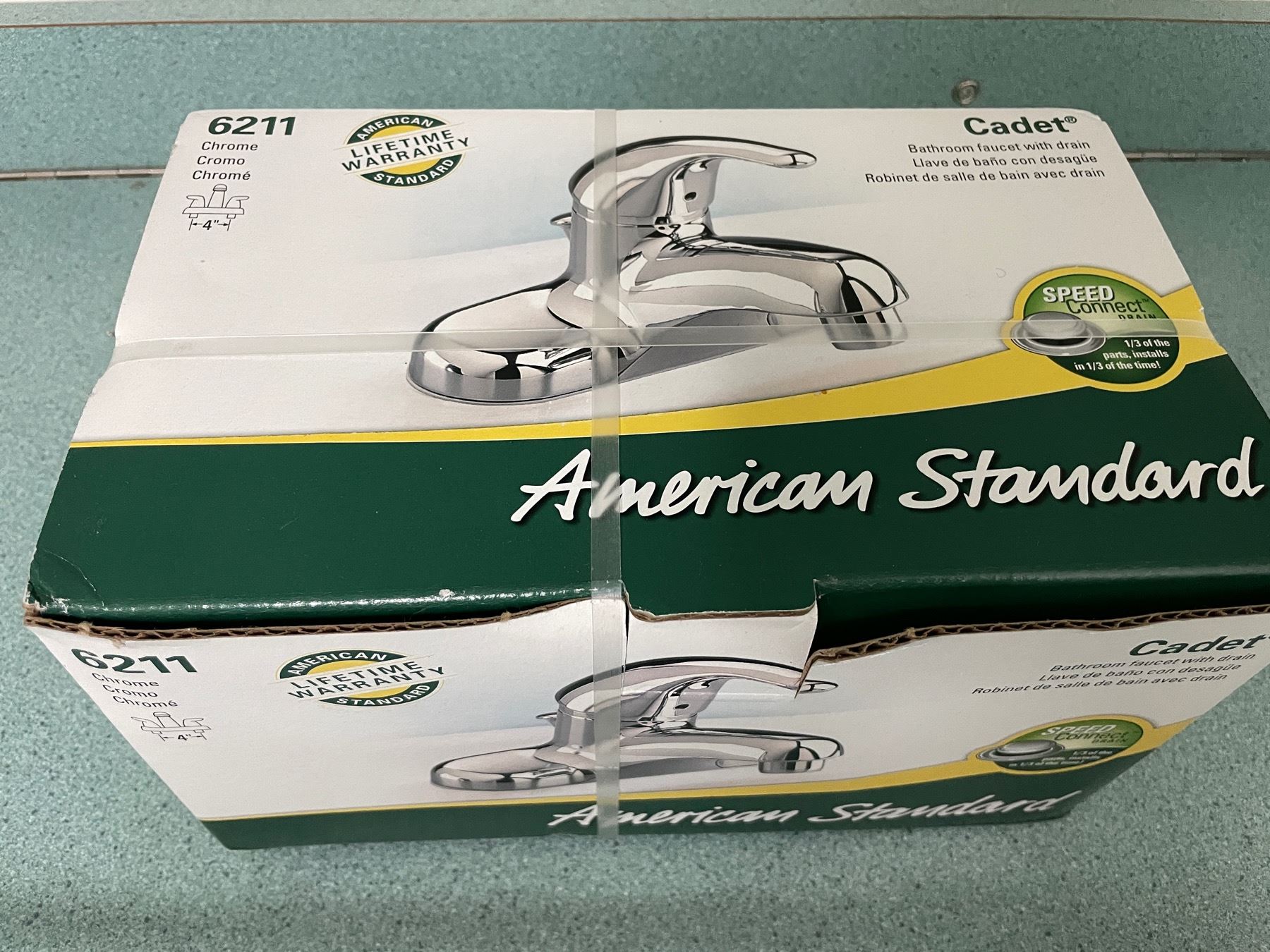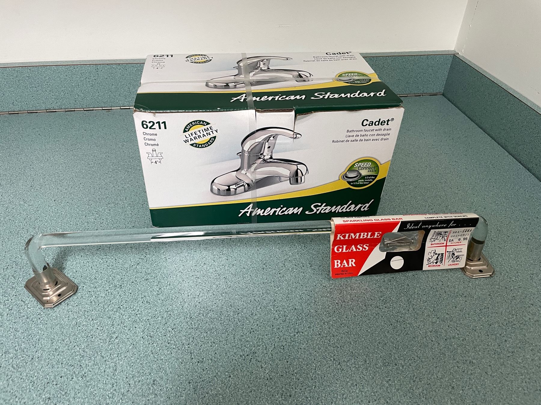 American Standard Cadet Chrome Bathroom Faucet with drain & Kimble Glass Bar