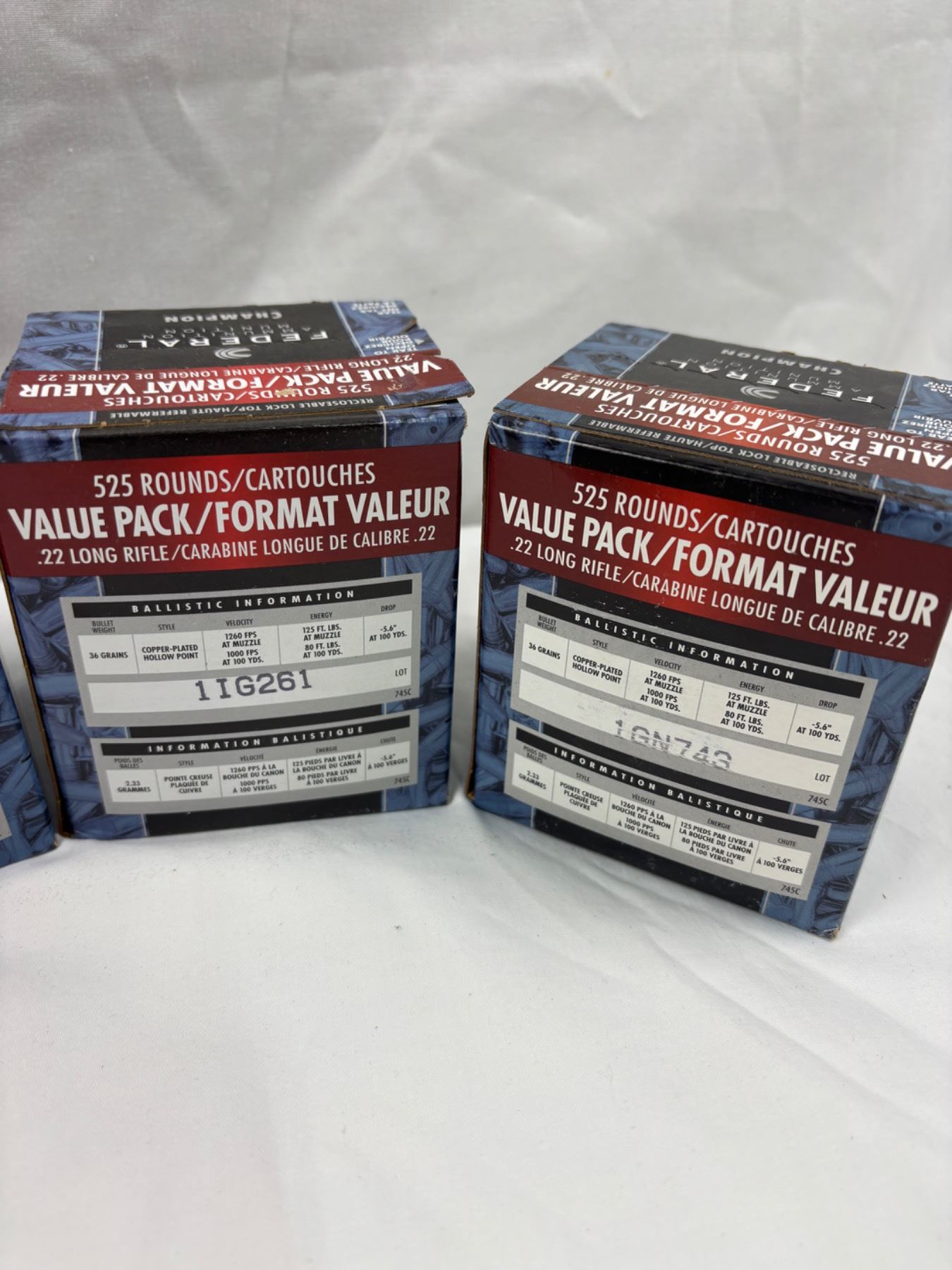 .22 Long Rifle Rimfire Cartridges, Includes four new boxes of 525 Rounds each