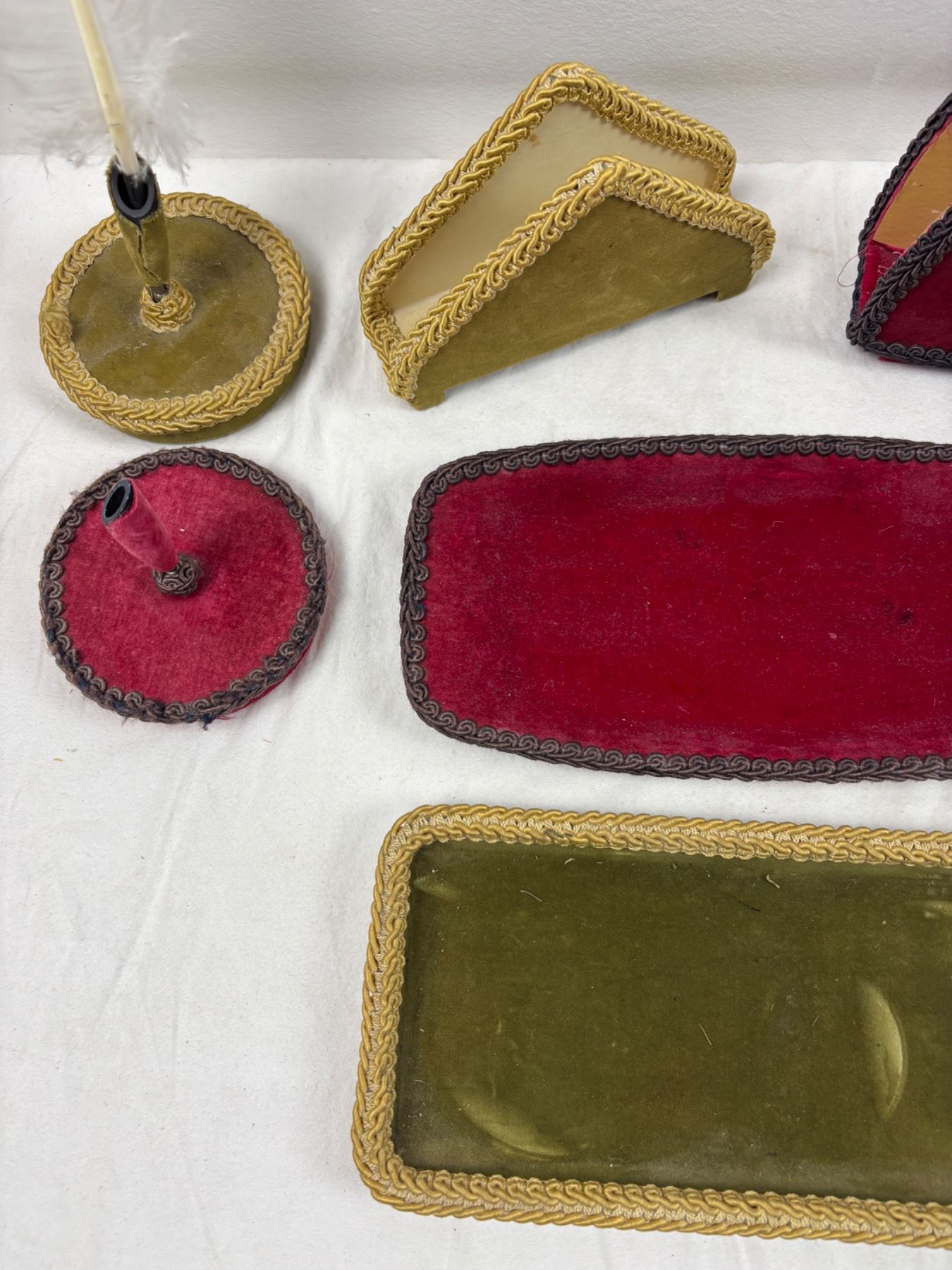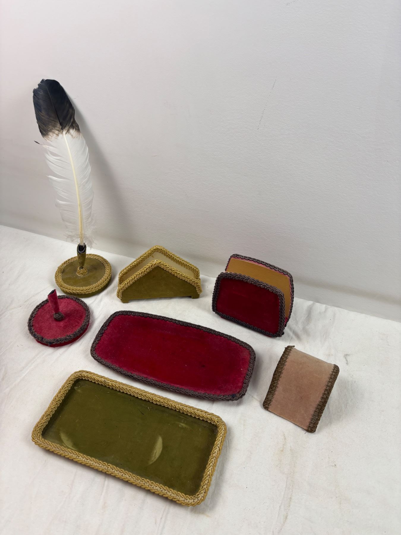 Some wear to the trims and fabric, The green tray is 10"L x 5"W