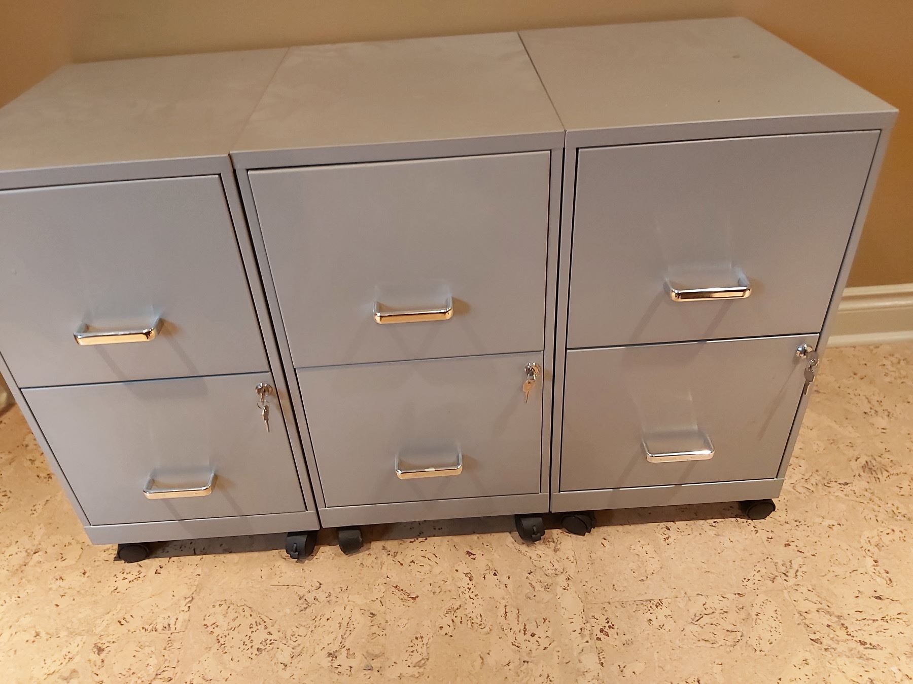 3 total, all have 2 keys, file folders included, 14.5"W x 18"L x 27"H