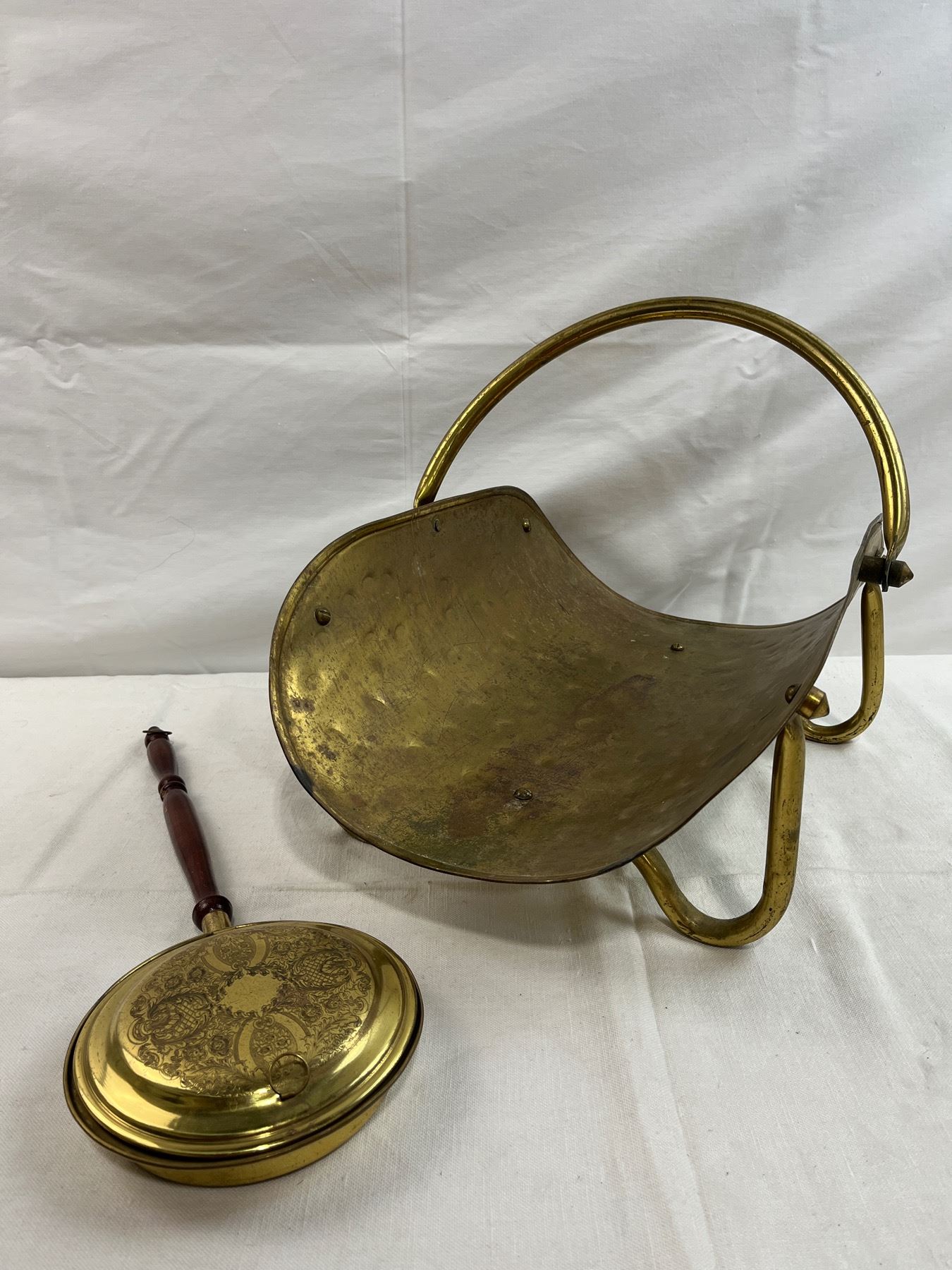 Vintage Bed Warmer & Brass Firewood Holder 2 pieces - has some wear.