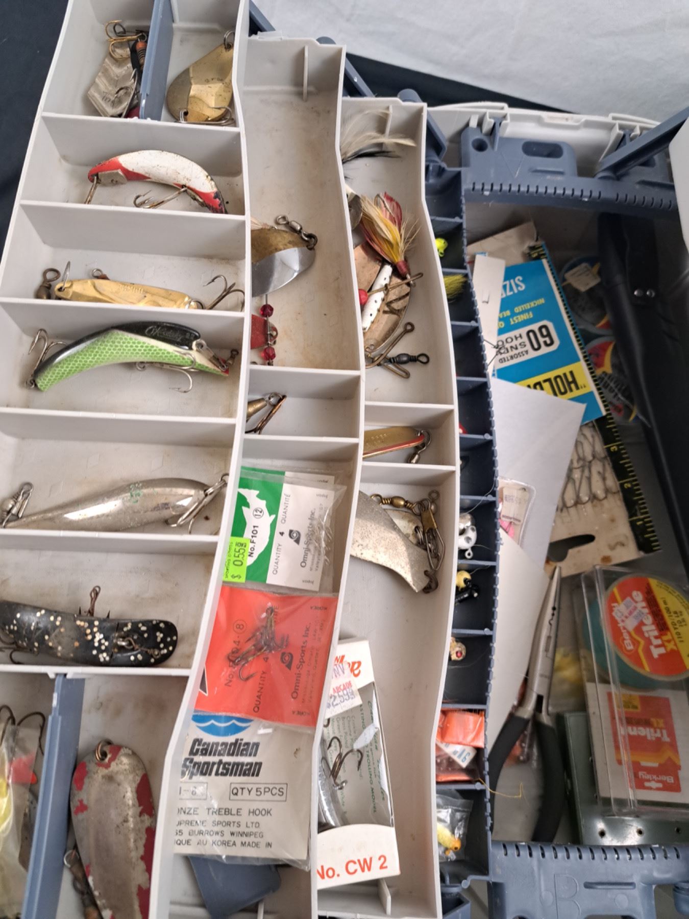 Includes, Plano tackle box, Flambeau tackle box, fishing net, 3 rods, 2 reels, etc.