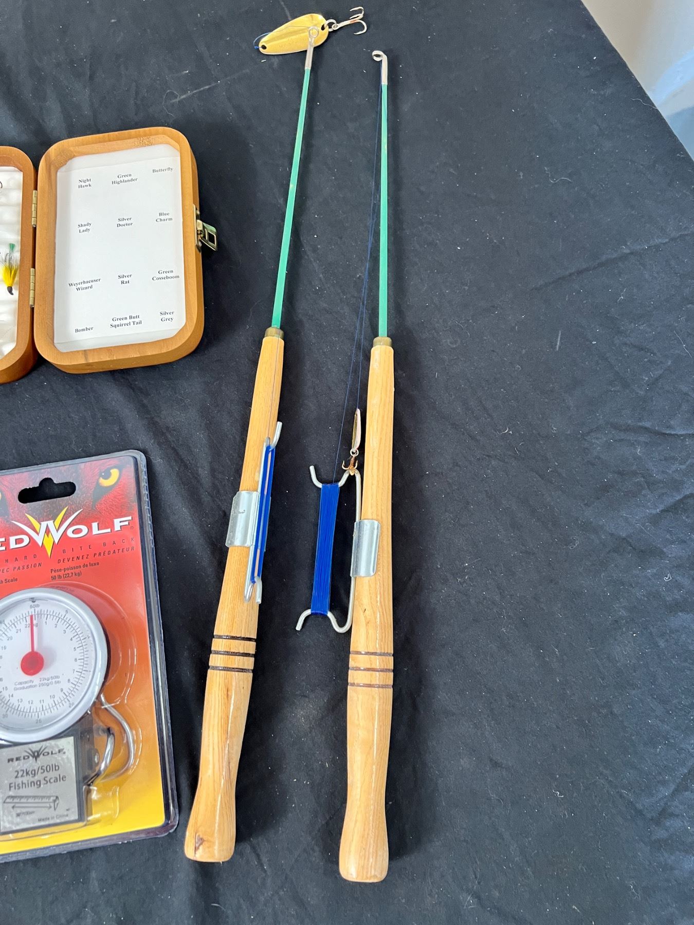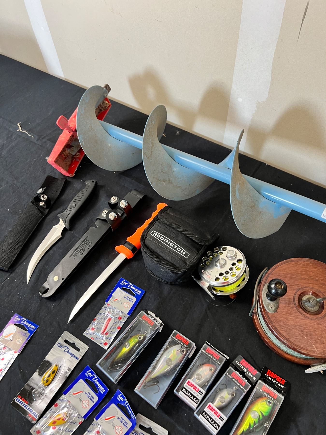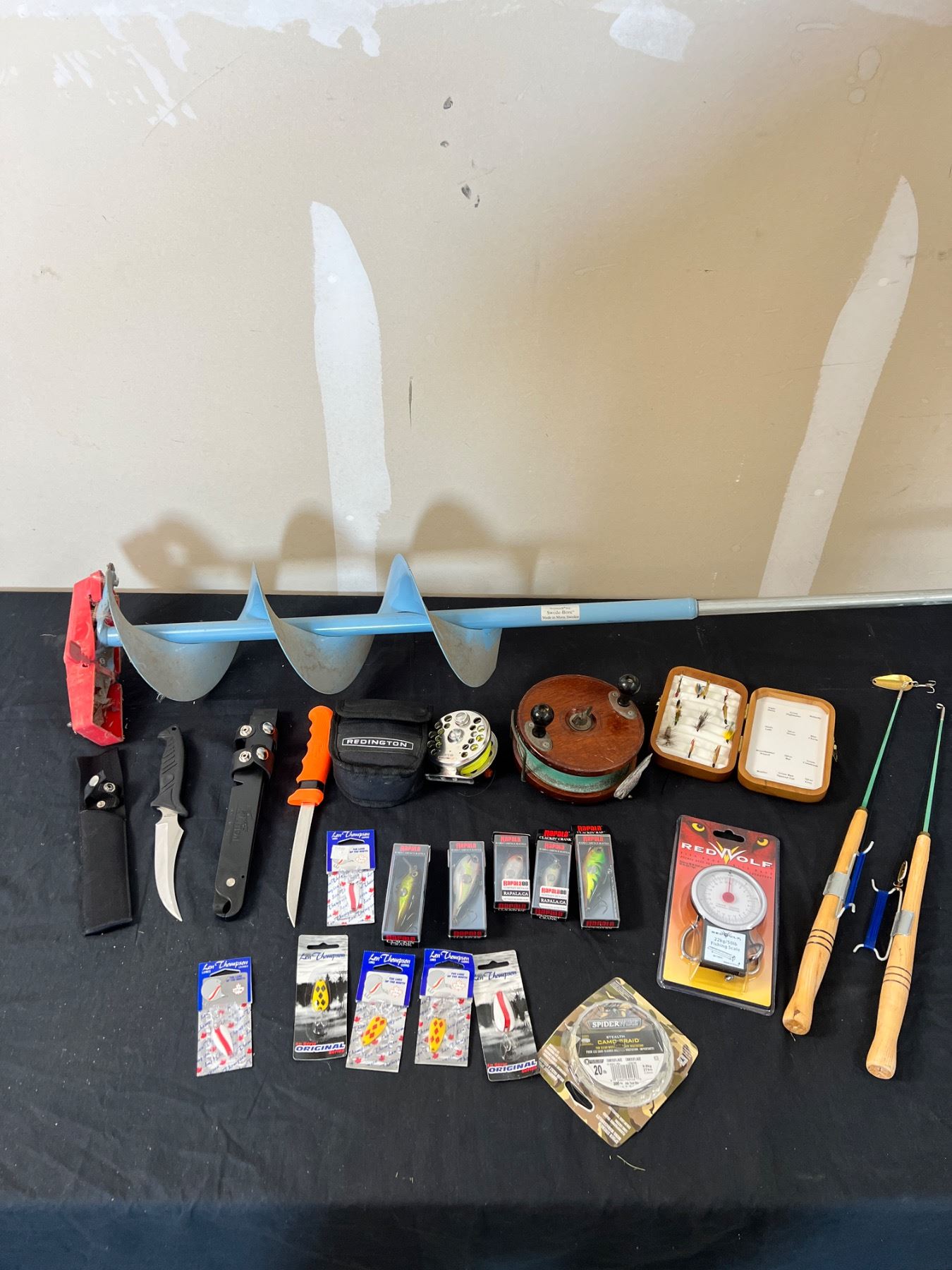 Includes Swede-Bore Ice Auger, Knives, Lures, Reels & More