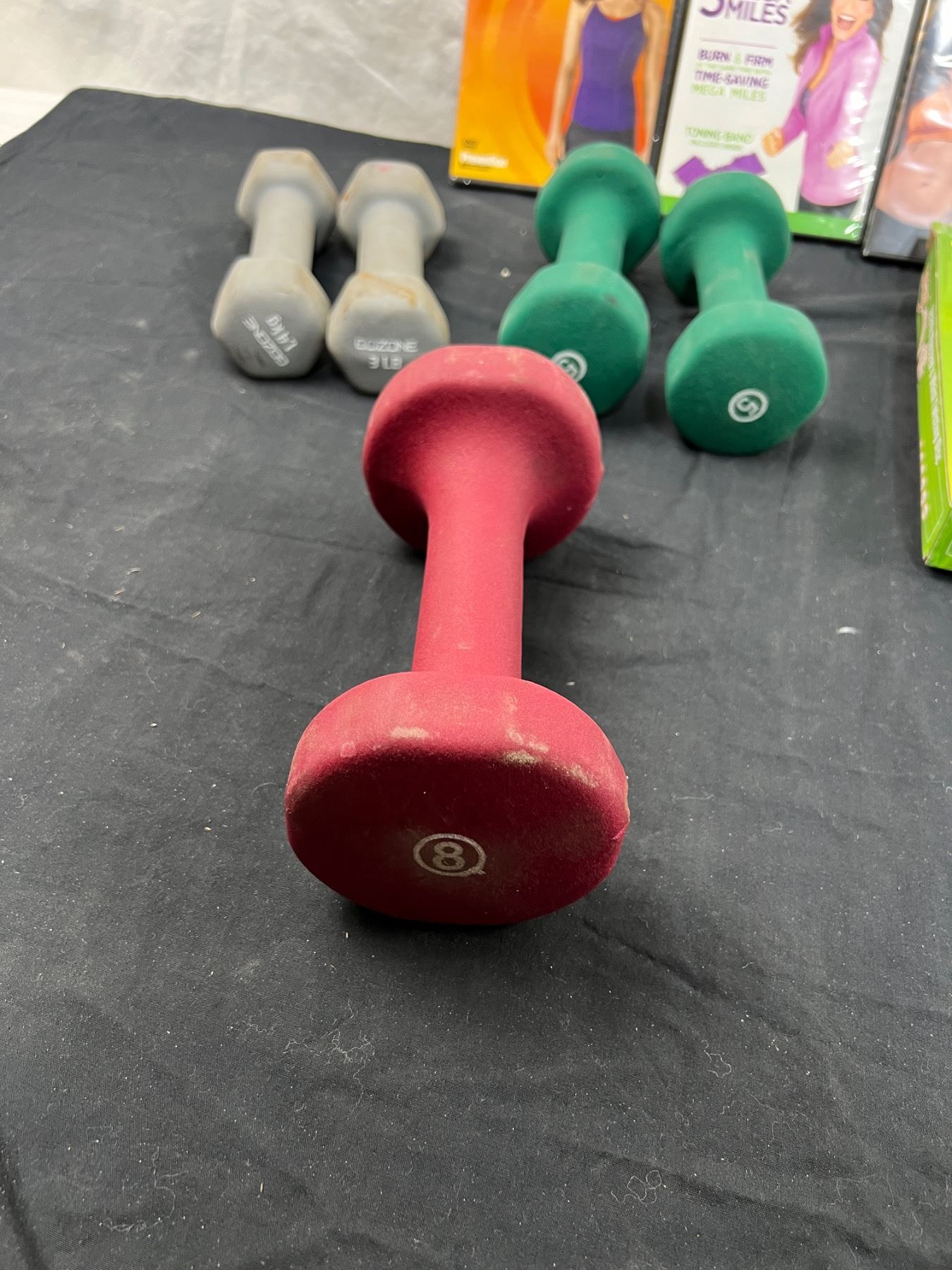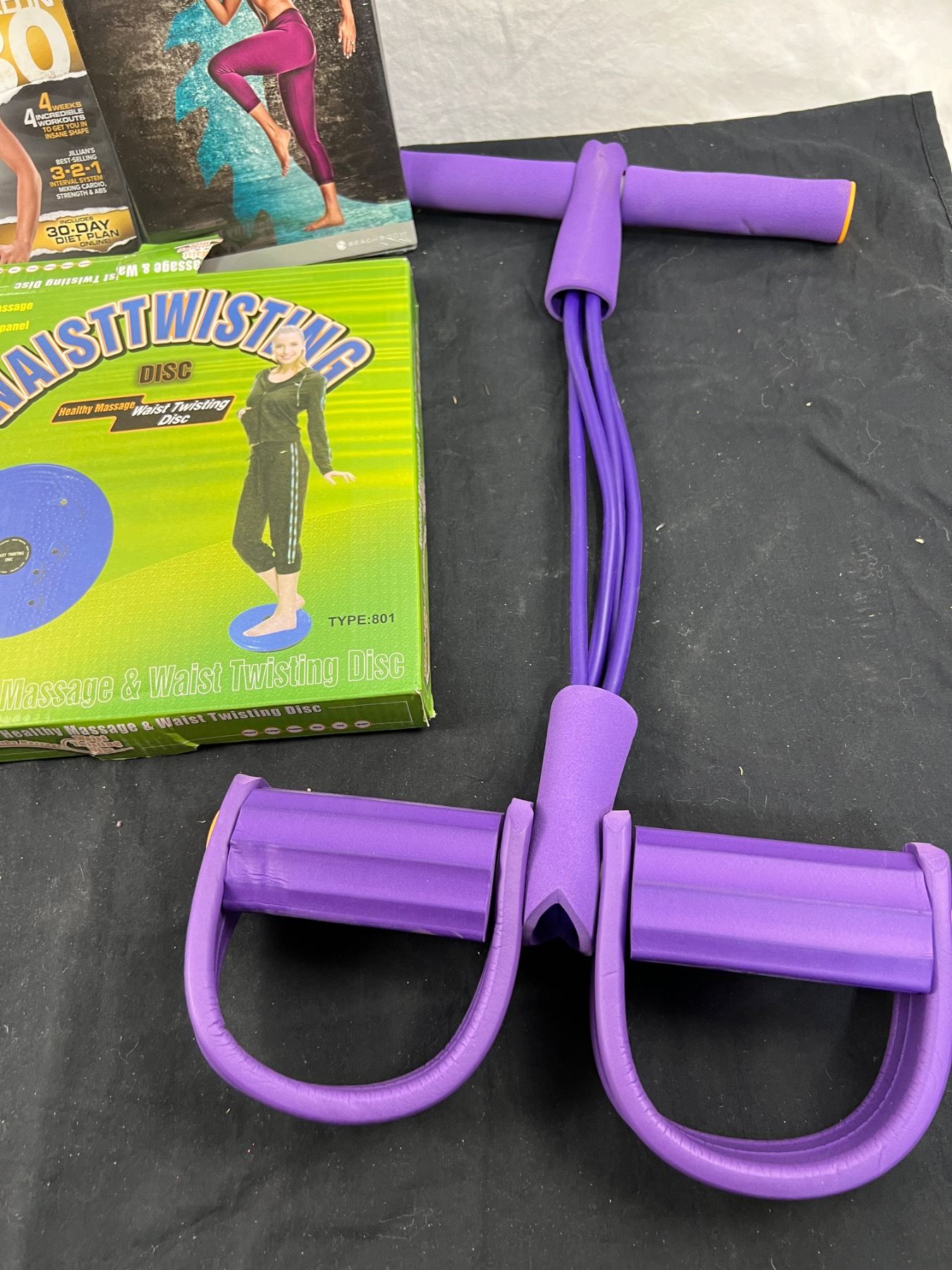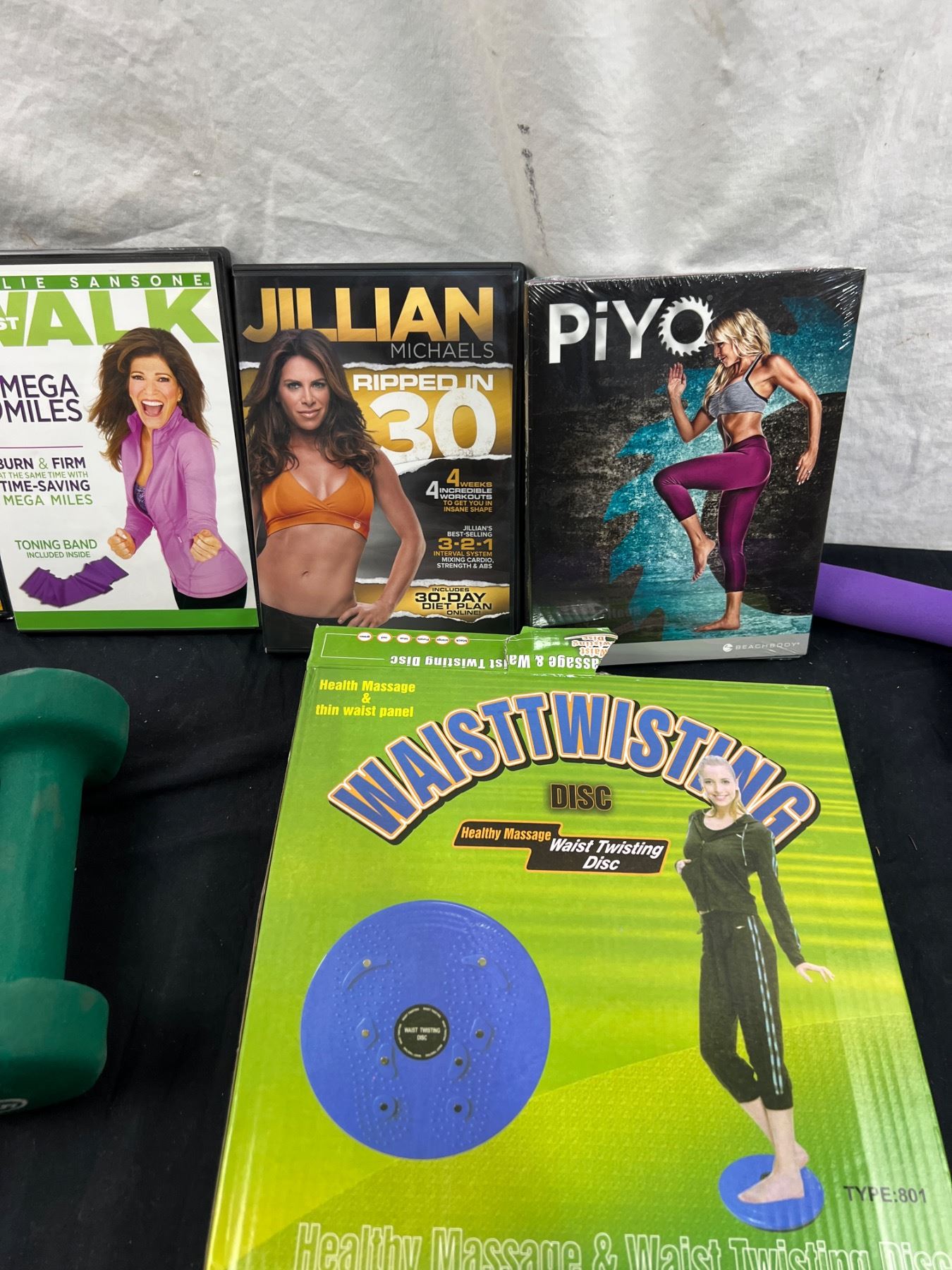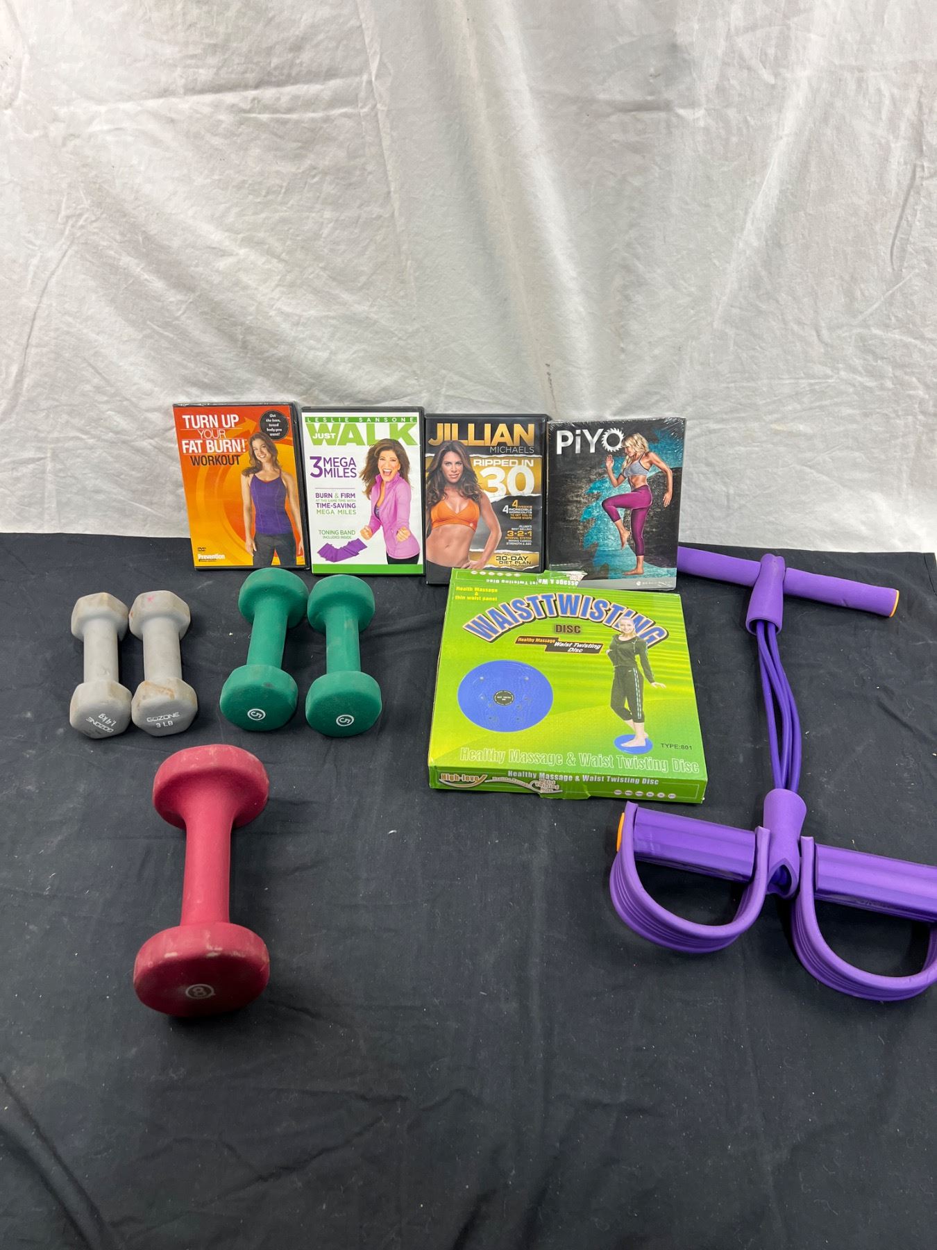 Includes DVD's, Waistwisting Disc, Hand Weigts (2-3lb, 2-5lb & 1-8 lb) & More