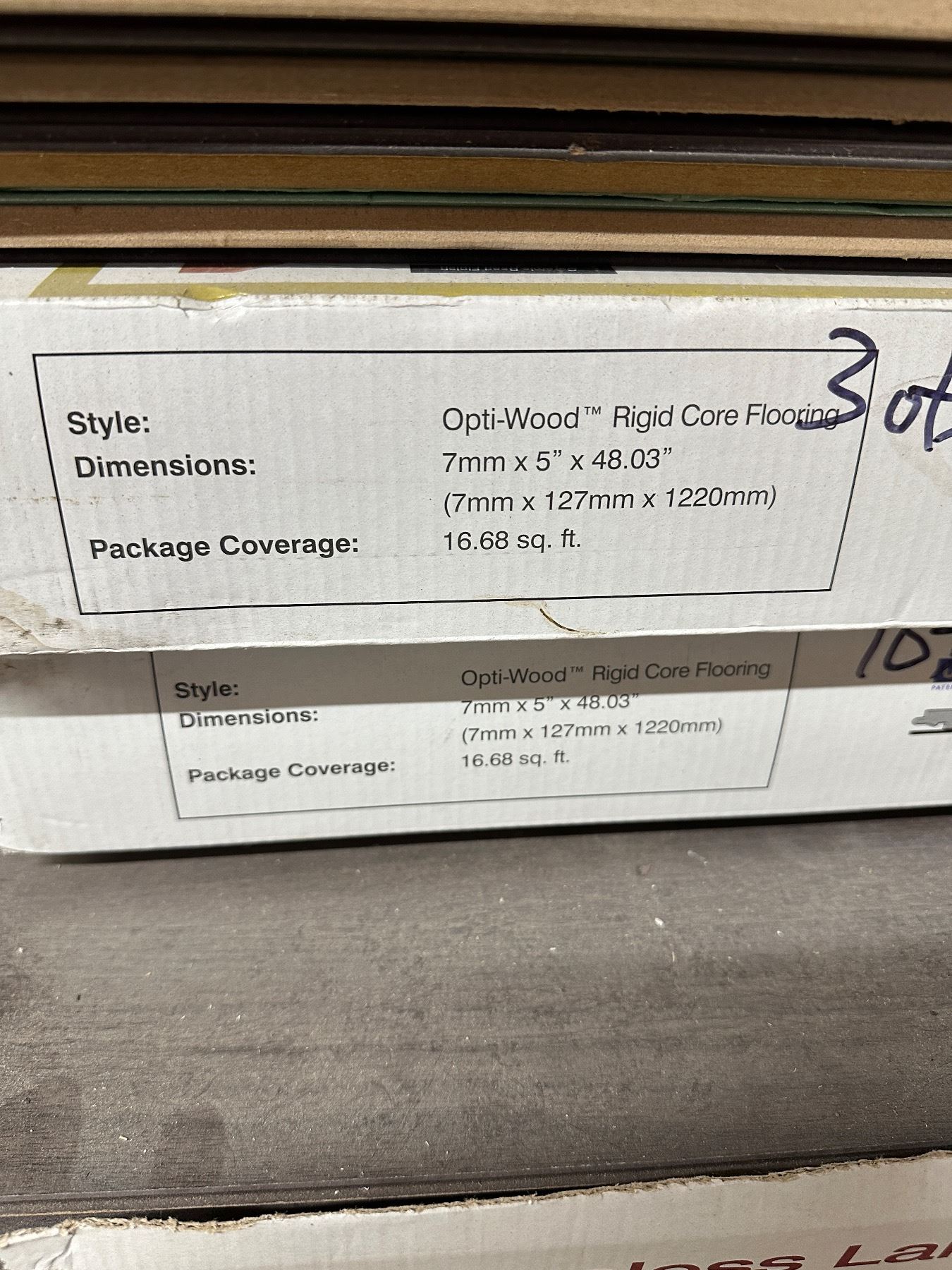 Includes 6 boxes optiwood Banff each box covers 16.68 sq ft.