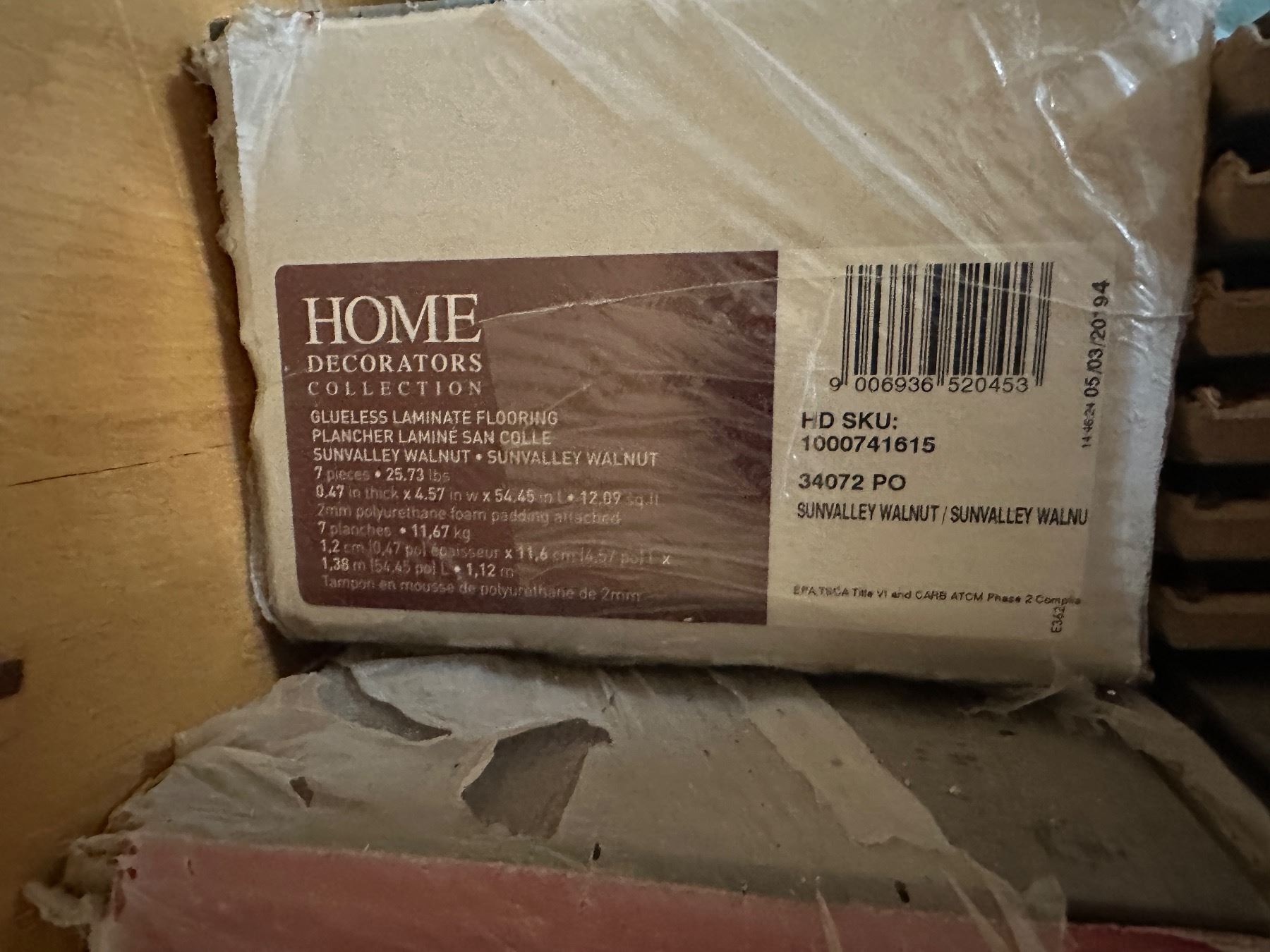 7 boxes Home Decorators Collection - Sunvalley Walnut - each box covers 12.09 sq ft.