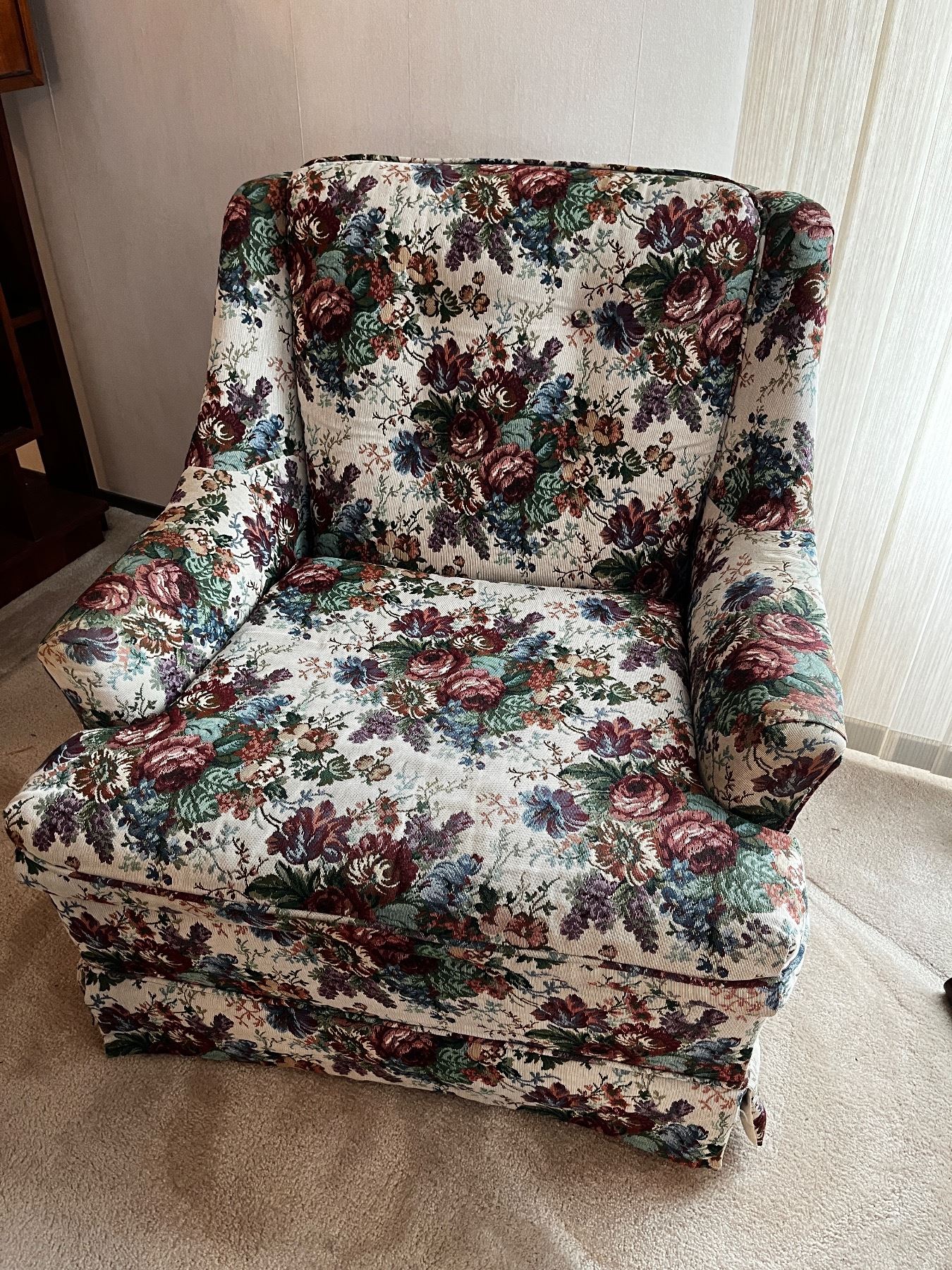 Upholstry is in good condition, custom tailored by Continental Upholstering, 29 x 29 x 32"H