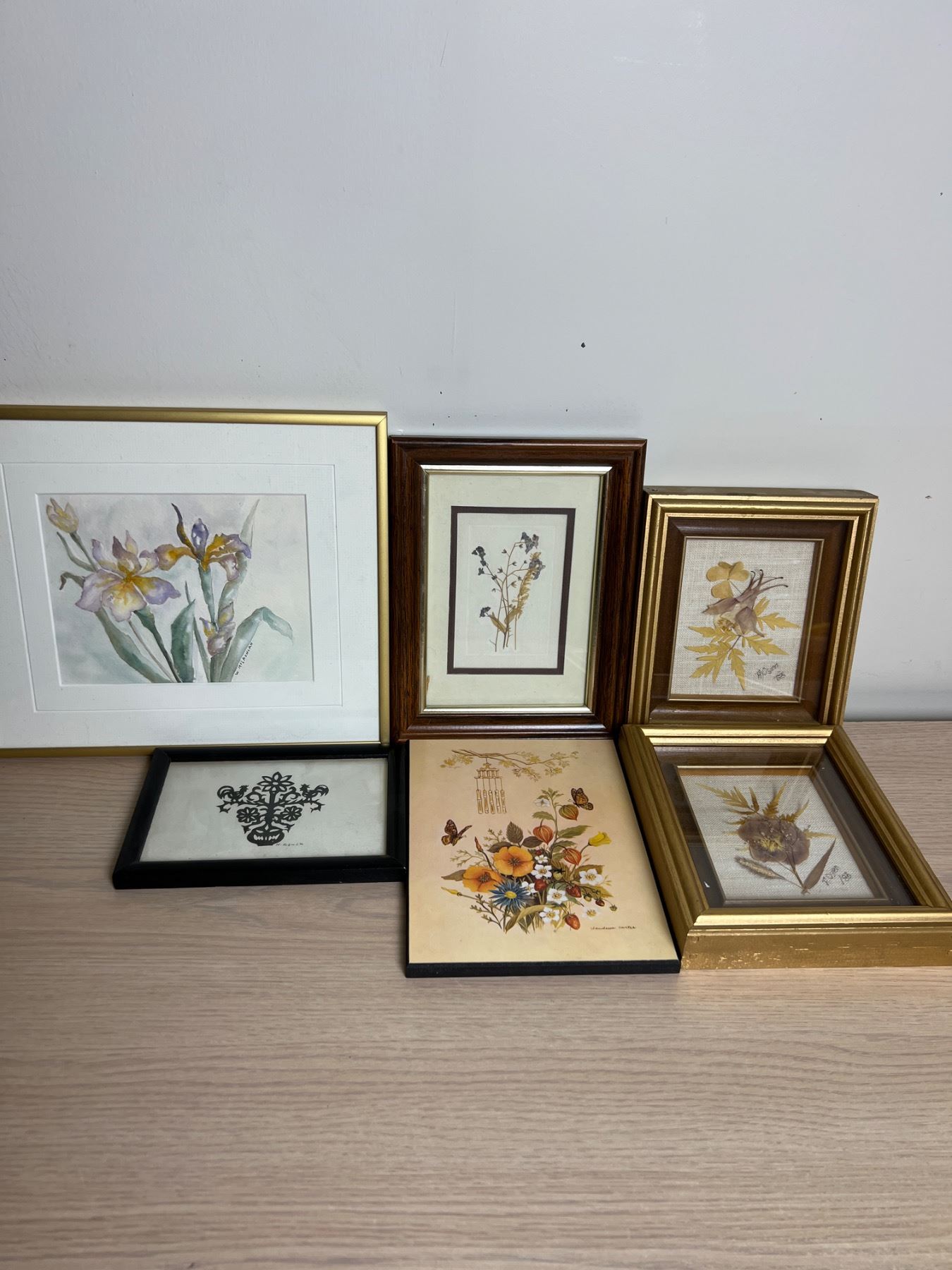 Includes three pressed flower pieces, Watercolour print signed by artist, and more
